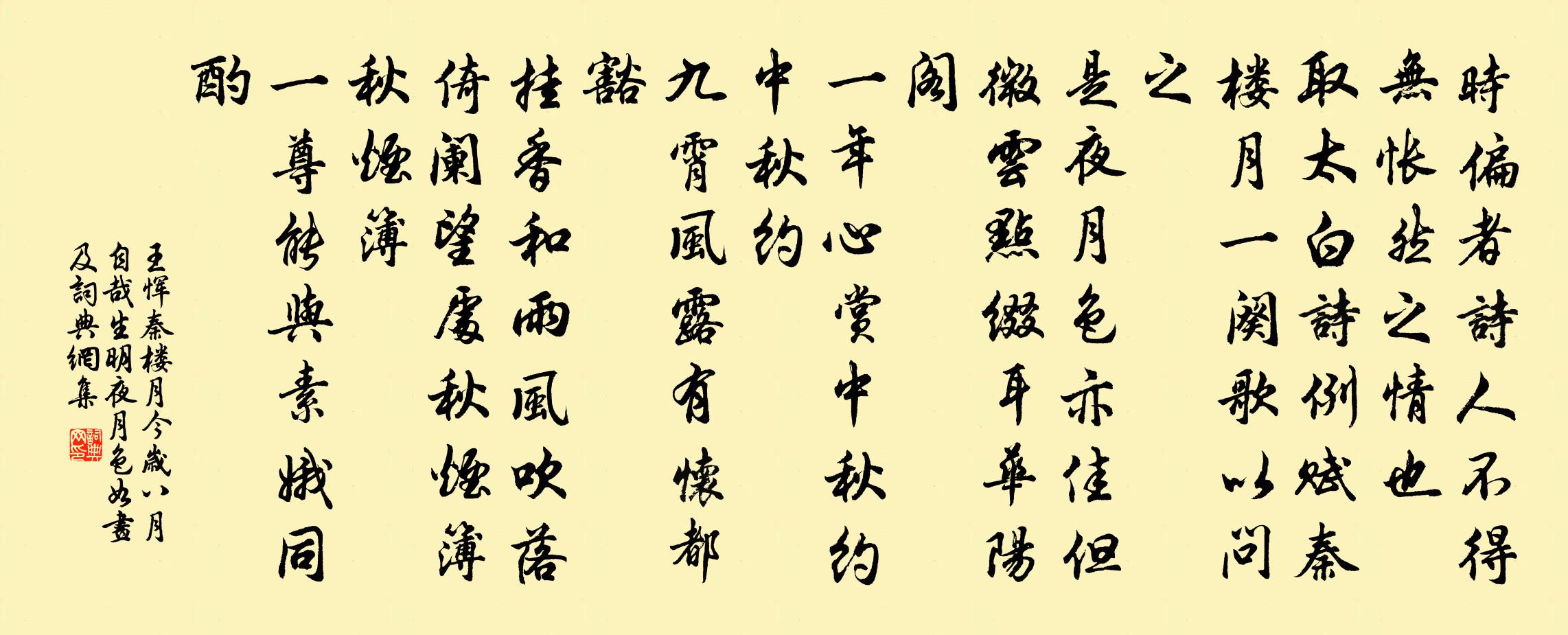 詩詞名句歷史字典書法欣賞書法字典國語詞典說文解字康熙字典古漢語字典標 題 作 者 詩 句 秦樓月 今歲八月自哉生明夜,月色如畫,及作者:王惲 朝代:元代原文時偏者,詩人不得無悵然之情也。取太白詩例,賦秦樓月一闋,歌以問之。是夜月色亦佳,但微雲點綴耳華陽閣。一年心賞中秋約。中秋約。九霄風露,有懷都豁。掛香和雨風吹落。倚闌望處秋煙簿。秋煙簿。一尊能與,素娥同酌。詩詞問答問:《秦樓月 今歲八月自哉生明夜,月色如畫,及》的作者是誰?答:王惲問:該詩寫於哪個朝代?答:元代問:該詩是什麼體裁?答:詞書法欣賞秦樓月 今歲八月自哉生明夜,月色如畫,及書法作品詩詞推薦【南呂】一枝花 行樂趙顯宏〔元代〕十年將黃卷習,半世把紅妝贍。向鶯花場上走,將風月擔兒拈。本性謙謙,到處乾風欠,人將名姓店。道麗春園頌古十首釋行鞏〔宋代〕王殿苔生正不居,四臣無路納嘉謨。老農如是承誰力,風暖歌聲落野鋤。浣沙溪(黃鐘·第三)周邦彥〔宋代〕不為蕭娘舊約寒。何因容易別長安。預愁衣上粉痕乾。幽閣深沈燈焰喜,小爐鄰近酒杯寬。為君門外脫歸鞍。和劉對與顧龍山探梅四首劉宰〔宋代〕費盡鉛華總失真,色香清絕兩無鄰。待渠經始和羹了,乞與無邊草木春。句張頡〔宋代〕持節淮堧劇駿奔,扈扶文母入天閽。秦樓月/憶秦娥陳三聘〔宋代〕雲衣薄。春晴自有東風掠。東風掠。試聽枝上,幾聲乾鵲。曲屏心事新題卻。離愁何用堆眉角。堆眉角。今朝莫是圓書記之錢唐釋智愚〔宋代〕誰管點魚上竹竿,拚身捱得髑髏乾。者回歸去西湖上,犢草鷗波不亂看。夜坐陸游〔宋代〕白首仍多病,青燈獨掩扉。雲低聞雁過,雨急待兒歸。將至徽川道中花李彌遜〔宋代〕平生愛山老山間,行山怕盡去復還。茲游深入眾山囿,一日看盡平生山。頗聞黃山最奇秀,紫翠六六堆孱顏。端如依韻和烏程子著作四首其二霅上二首梅堯臣〔宋代〕共愛霅溪風物美,春來清可監鬚眉。苹生楚客將歸日,花暖吳蠶始浴時。臨水竹樓通市陌,跨橋雲屋接川湄。畫船荊溪詠/漁家傲賀鑄〔宋代〕南嶽去天才尺五。荊溪笠澤相吞吐。十日一風仍再雨。宜禾黍。秋成處處宜禾黍。坊市萬家連島嶼。長楊□□□□寄賡匡圖兄弟齊己〔唐代〕僧外閒吟樂最清,年登八十喪南荊。風騷作者為商確,道去碧雲爭幾程。春季開無畏靈塔祈雨至夏初霶洽宋庠〔宋代〕春晦西峰雁塔開,香雲清梵徹昭回。初疑咒缽降龍出,終似軍持注水來。百穀根莖流慧潤。四郊氛祲卷暘災。守臣水調歌頭周權〔元代〕亭小可容膝,真似寄鷯枝。客來休訝迫窄,老子只隨宜。鳧鶴短長莫問,鵬*逍遙自適,何暇論成虧。萬事一尊酒四月初四日聞績溪凡十五都賊焚欲盡傍出焚歙方回〔宋代〕昔日初聞寇,諸人早出師。焚燒寧太廣,收勦已無遺。斧鉞何曾鈍,雷霆豈肯心。遷延非決策,那得更狐疑。朱柏岩約南歸張至龍〔宋代〕忍聞秋管悲,猶未定歸期。吟詠窮邊長,艱難老後知。水寒魚上少,月閏雁來遲。不作膏粱夢,長令一劍隨。守歲詩蘇軾〔宋代〕兒童強不食,相守應歡嘩。晨雞旦勿鳴,更鼓畏添過。癸亥日泊舟吳會亭范成大〔宋代〕去年春盤浙江驛,湛湛清波動浮石。今年春盤吳會亭,冥冥細雨濕高城。天邊作客風沙里,今年去年成老矣!客心青羊宮小飲贈道士陸游〔宋代〕青羊道士竹為家,也種玄都觀里花。微雨晴時看鶴舞,小窗幽處聽蜂衙。藥罏宿火熒熒暖,醉袖迎風獵獵斜。老我春望二首楊萬里〔宋代〕掠削嬌雲放嫩晴,三朝五日即清明。垂楊幸自風流殺,莫著啼烏只著鸚。名句推薦鹿車何日駕,歸去潁東田。歐陽修《秋懷》 君自故鄉來,應知故鄉事。王維《雜詩三首·其二》 慷慨十年長劍在,登樓一笑暮山橫。崔允《花馬池詠》 煙塵犯雪嶺,鼓角動江城。杜甫《歲暮》 五月雖熱麥風清,檐頭索索繰車鳴。王建《田家行》 函車之獸,離山必斃;絕波之鱗,宕流則枯。沈約《宋書·列傳·卷七十》 桃花三十六陂,鮫宮睡起,嬌雷乍轉。吳文英《瑞龍吟·德清清明競渡》 甚獨抱清高,頓成淒楚。王沂孫《齊天樂·蟬》 道人憔悴春窗底,悶損闌乾愁不倚李清照《玉樓春·紅酥肯放瓊苞碎》 三日柴門擁不開,階平庭滿白皚皚。柳宗元《酬王二十舍人雪中見寄》