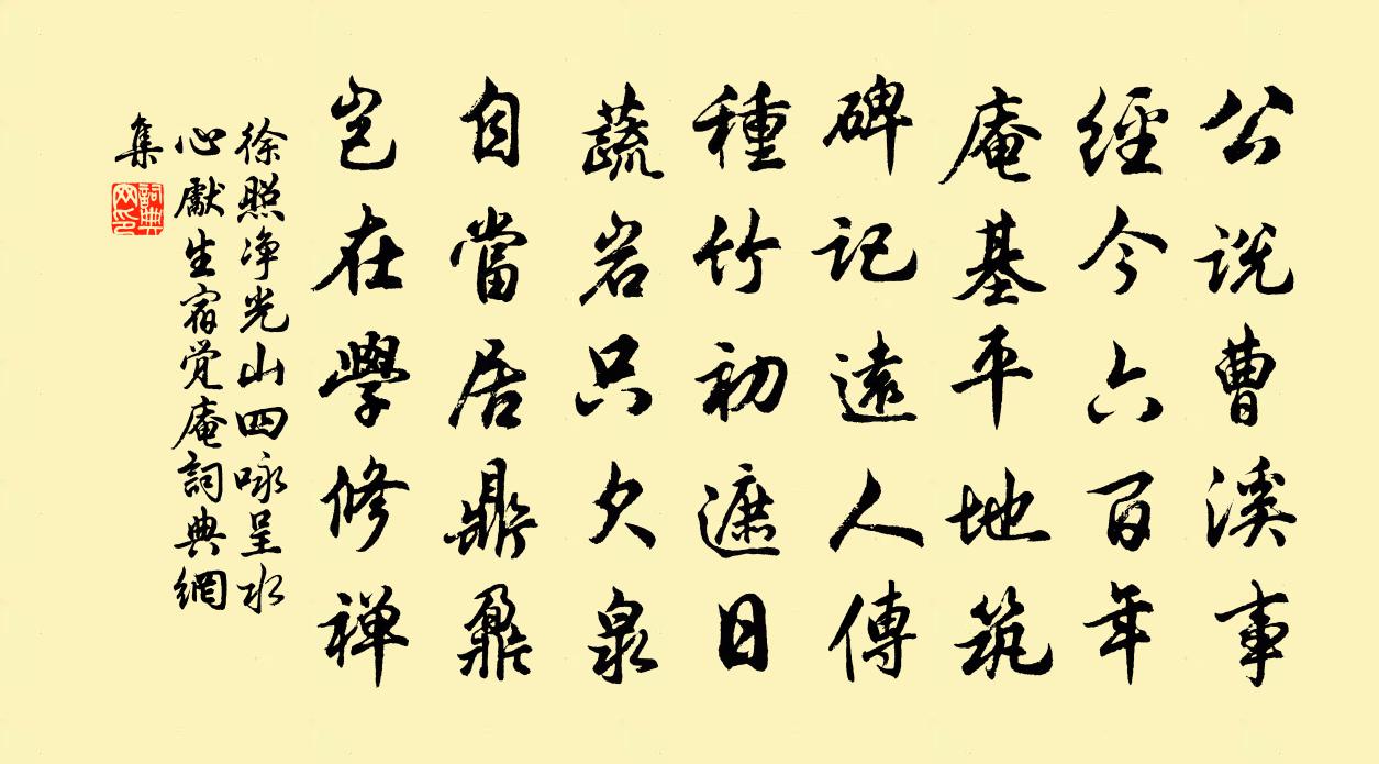 詩詞名句歷史字典書法欣賞書法字典國語詞典說文解字康熙字典古漢語字典標 題 作 者 詩 句 淨光山四詠呈水心先生宿覺庵作者:徐照 朝代:宋代原文公說曹溪事,經今六百年。庵基平地築,碑記遠人傳。種竹初遮日,蔬岩只欠泉。自當居鼎鼐,豈在學修禪。詩詞問答問:《淨光山四詠呈水心先生宿覺庵》的作者是誰?答:徐照問:該詩寫於哪個朝代?答:宋代書法欣賞淨光山四詠呈水心先生宿覺庵書法作品詩詞推薦詠毛女陳摶〔宋代〕曾折松枝為寶櫛,又編栗葉作羅襦。有時問著秦宮事,笑撚仙花望太虛。贈楊戶曹李曾伯〔宋代〕壯年遊戲寶峰傍,夢覺黃粱鬢盡霜。舊俗幾家罹變故,遠人千里嘆清揚。酆南松檟煩君訪,劍北榛蕪動客傷。賴有木蘭花/玉樓春莫將〔宋代〕梅邊曉景清無比。林下詩人呵凍指。玉龍留住麝臍煙,銀漏滴殘龍腦水。晨光漸漸收寒氣。昨夜遺簪猶在地。好生桃花坑山釋鑒〔宋代〕地僻人居少,林深路轉迷。桃花流水細,不異武陵溪。春思張玉孃〔宋代〕玉勒雕鞍燕北春,閒愁空自惜芳塵。楊花入戶還飛去,應笑虛幃翠被新。問卜崔塗〔唐代〕承家望一名,幾欲問君平?自小非無志,何年即有成。豈能長失路,爭忍學歸耕?不擬逢昭代,悠悠過此生。六年春遣懷八首元稹〔唐代〕傷禽我是籠中鶴,沉劍君為泉下龍。重纊猶存孤枕在,春衫無復舊裁縫。檢得舊書三四紙,高低闊狹粗成行。自言西園晚秋見寄宋祁〔宋代〕中園秋物曉,清玩日無窮。暝篠深留翠,寒花淺作紅。鶴鳴殘滴露,蜩咽已涼風。誰伴調絲管,心知憶戴崇。蓬萊客馬鈺〔元代〕熬煎急。熬煎煎逼熬煎客。熬煎客。妻男魔障,妙玄牆隔。遇予便把清涼測。清涼路上難緣溺。難緣溺。氣通和氣征人婦胡仲弓〔宋代〕西風吹老碧桐秋,因念征夫事遠遊。獨倚小樓重回首,飛來一葉是何舟。聽航船歌十首方回〔宋代〕 * 輸了阿儂哥,黃草單衫破孔多。相趁縮砂紅豆客,霜風九月上淮河。送僧東歸釋文珦〔宋代〕今朝送君處,草色如許新。後會既難定,別愁那易陳。分手限吳越,煙波渺無津。雲山更重疊,歸與何峰鄰。憑人次韻莘老初至湯泉秦觀〔宋代〕來路山重複,參天樹老蒼。一區成小市,數埒引溫湯。洗沐同幽客,餔餐就梵坊。未輸朝市子,斗酒得西涼。偈公六十五首釋鹹傑〔宋代〕雲開千嶂出,木落一枝分。相見又無事,不來還憶君。和王禹玉相公三月十八日皇子侍宴長句三首蘇頌〔宋代〕紫雲樓外擁天香,初見前星帝座旁。庭樂聲長歌燕翼,朝簪色喜動明光。仙巾縹緲尊三弁,環帶玲瓏襲九章。遙聽與前人對酌醉中陳著〔宋代〕天寬地闊無拘嫌,日往月來無留淹。有興一日是一日,賞心樂事古難兼。我貧到底君不問,君自與我相嬉恬。安知和中函晏尚書憶譙渦二首宋庠〔宋代〕縠浪如煙曲里深,使旗齋舫此幽尋。不知魚鳥思人否,曾費東山擁鼻吟。感皇恩 漫興王寂〔元代〕天地一浮萍,人生如寄。畫餅功名竟何益。百年渾醉,三萬六千而已。過了一日也、無一日。韶顏暗改,良辰易失第一百六十五文天祥〔宋代〕風煙渺吳蜀,雲帆轉遼海。喪亂紛嗷嗷,尚愧微軀在。西江月辛棄疾〔宋代〕八萬四千偈後,更誰妙語披襟。紉蘭結佩有同心。喚取詩翁來飲。鏤玉栽冰著句,高山流水知音。胸中不受一塵侵名句推薦法莫如顯,而術不欲見韓非及後人《韓非子·難三》 至今窺牧馬,不敢過臨洮。西鄙人《哥舒歌》 素娥惟與月,青女不饒霜。李商隱《十一月中旬至扶風界見梅花》 但怪得、當年夢緣能短。吳文英《三姝媚·過都城舊居有感》 沉憂能傷人,綠鬢成霜蓬。李白《怨歌行》 一別都門三改火,天涯踏盡紅塵。蘇軾《臨江仙·送錢穆父》 小舟從此逝,江海寄餘生。蘇軾《臨江仙·夜飲東坡醒復醉》 調角斷清秋,征人倚戍樓。張喬《書邊事》 故人西辭黃鶴樓,煙花三月下揚州。李白《黃鶴樓送孟浩然之廣陵》 無人調護,自去經心。沈復《浮生六記·閨房記樂》