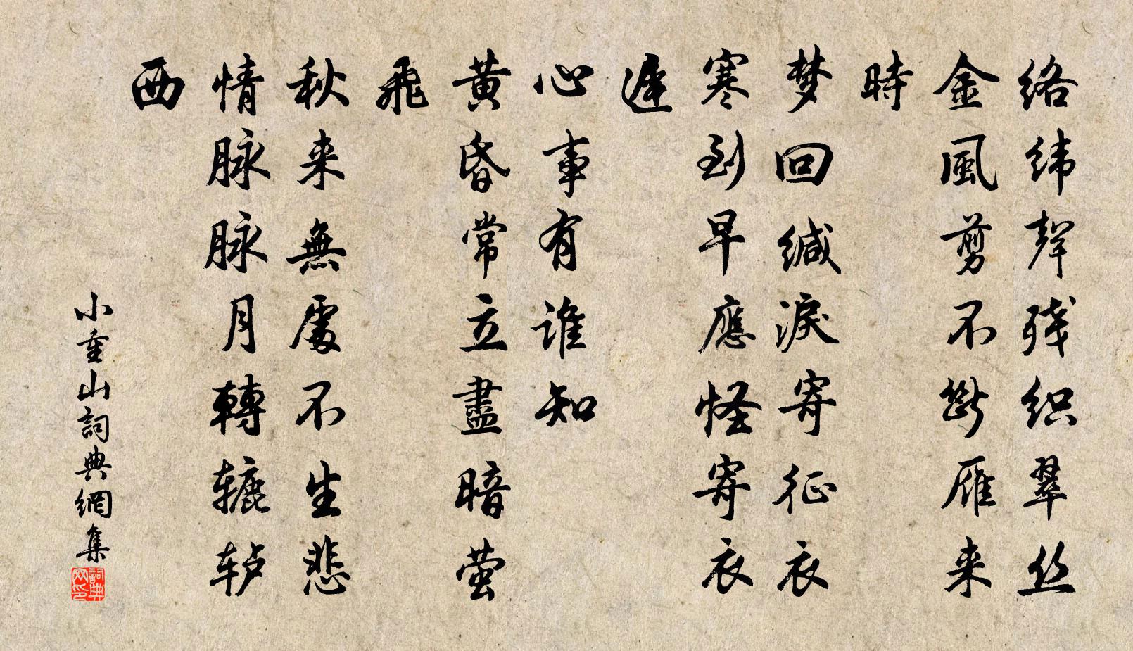 絡緯聲殘織翠絲。金風剪不斷、雁來時。