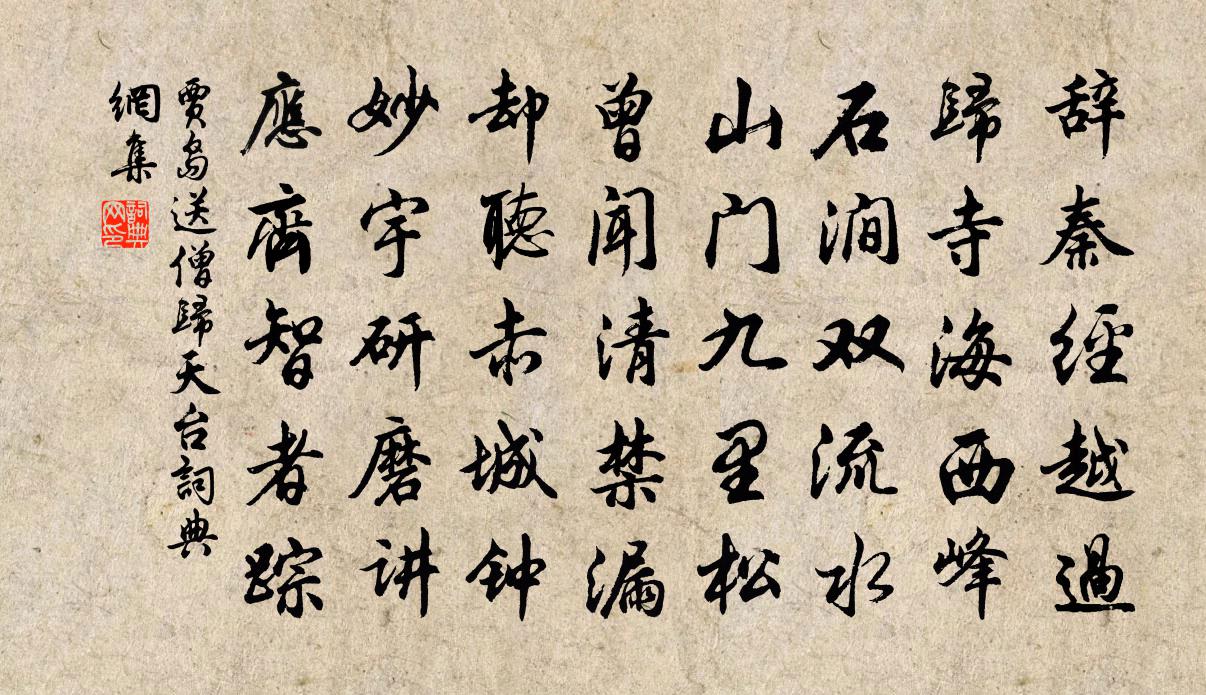 辭秦經越過,歸寺海西峰。石澗雙流水,山門九里松。