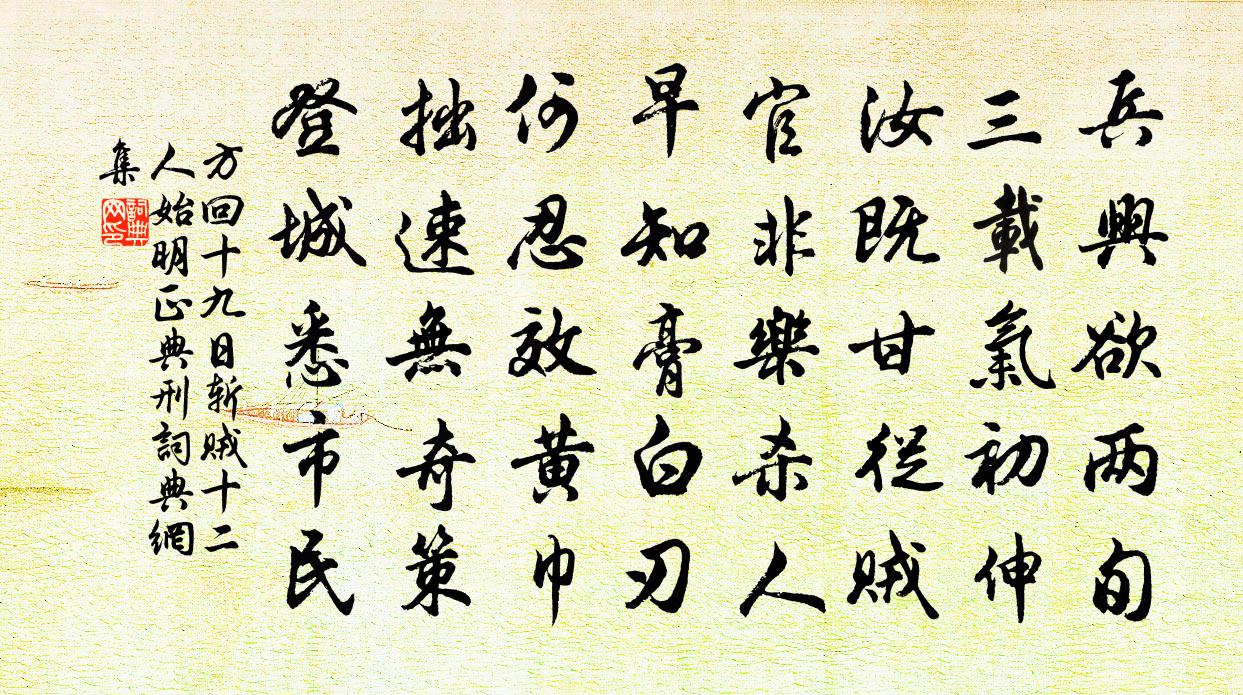 詩詞名句歷史字典書法欣賞書法字典國語詞典說文解字康熙字典古漢語字典標 題 作 者 詩 句 十九日斬賊十二人始明正典刑作者:方回 朝代:宋代原文兵興欲兩旬,三載氣初伸。汝既甘從賊,官非樂殺1/1人。早知膏白1-1刃,何忍效黃巾。拙速無奇策,登城悉市民。詩詞問答問:《十九日斬賊十二人始明正典刑》的作者是誰?答:方回問:該詩寫於哪個朝代?答:宋代書法欣賞十九日斬賊十二人始明正典刑書法作品詩詞推薦春盡日戴復古〔宋代〕撚指過三月,又當春夏交。花殘蜂課蜜,林茂鳥安巢。芳草生青靄,新篁展綠稍。風騷將斷絕,誰有續弦膠。張公洞楊維楨〔元代〕正月八日記遊仙,三十六天洞靈洞。洞中窗戶夜不扃,地底風雷日相哄。巉巉靈骨誰手鑿,納納虛谺曷時澒。龍巔始平公以光得免使北以詩謹依韻酬和司馬光〔宋代〕皇華將命得入難,專對非才輒自言。倖免驅車涉沙漠,尚容載筆待宣溫。不惟羞屈穹廬膝,無奈常游魏闕魂。袞職三瑞堂黃公度〔宋代〕機雲二子才孤標,妙齡馳聲典午朝。今見遠孫來海嶠,儒雅雍容飾漢條。德化醇醲春有腳,天姿粹美玉不彫。無復宣差曾思丁得替歸詩以贈之何文季〔宋代〕田家不放淚痕乾,日日深山吏打門。憶昔宣差提調日,關征不到杏花村。臨江仙曹勛〔宋代〕解。少間,月出雲靜,瞻天容如鑒。上喜,以詩句書扇,臥謹以臨江仙歌之連夜陰雲開曉景,中秋勝事偏饒。十分居室姜特立〔宋代〕居室要須存野意,不求輪奐炳丹青。王侯第宅他崇貴,麋鹿山林我性靈。偈頌一百零四首釋紹曇〔宋代〕靈山話月,曹溪指月。 * 峰前,相呼看月。縱饒光透十虛,未句成第二月。諸人要見真月麽,非暗非明,非圓非和韓侍郎苦雨白居易〔唐代〕潤氣凝柱礎,繁聲注瓦溝。暗留窗不曉,涼引簟先秋。葉濕蠶應病,泥稀燕亦愁。仍聞放朝夜,誤出到街頭。訓蒙二首劉克莊〔宋代〕少喜浮名謬激昂,晚溫故讀稍精詳。易全何患乾坤毀,騷在堪爭日月光。漆簡字更經學誤,玉台體出選詩亡。殘年頌證道歌證道歌釋印肅〔宋代〕後人得道何窮數,萬別千差同此路。成人者少敗人多,達理契經無作做。贈觀菴主白玉蟾〔宋代〕蹲鴟味美還師獨,榾柮煙青喜我同。拄杖出門誰會得,松梢浩浩嘯天風。水龍吟(庚寅寄遠)劉鎮〔宋代〕老來慣與春相識,長記傷春如故。去年今日,舊愁新恨,送將風絮。粉淚羞紅,黛眉顰翠,推愁不去。任瑣窗深閉壽張京尹十首彭龜年〔宋代〕天府何為屈我公,謾將煩處壓才雄。若兼二輔亦可人,萬化斡旋猶有功。贈吳氏兄弟三首陳師道〔宋代〕才隨年盡不重奇,每愧諸郎索近詩。旋作七言供一笑,自痴那得使人痴。初入四川境喜晴曾國藩〔清代〕萬里關山睡夢中,今朝始洗眼朦朧。雲頭齊擁劍門上,峰勢欲隨江水東。楚客初來詢物俗,蜀人從古足英雄。臥龍奉和立春遊苑迎春應制盧藏用〔唐代〕天游龍輦駐城闉,上苑遲光晚更新。瑤台半入黃山路,玉檻傍臨玄霸津。梅香欲待歌前落,蘭氣先過酒上春。幸預站疲姆魅疽魯盡6籃薏撞攏錮幢鴯嗜恕戴叔倫〔唐代〕邦君採菊地,近接旅人居。一命招衰疾,清光照里閭。去官慚比謝,下榻貴同徐。莫怪沙邊倒,偏沾杯酌餘。夜雨張九成〔宋代〕春陰正愁絕,夜雨復淋漓。楚客南冠日,湘纍去國時。千山花盡落,萬壑水東之。脈脈燈前意,夫君知不知。木蘭花慢 穀雨日,王君德昂約牡丹之會,某王惲〔元代〕問東城春色,正*雨,牡丹期。想前日芳苞,近來絳*,紅爛燈枝。劉郎為花情重,約柳邊、娃館醉吳姬。羅襪凌名句推薦移舟去。未成新句。一硯梨花雨。周晉《點絳唇·訪牟存叟南漪釣隱》 依舊桃花面,頻低柳葉眉。韋莊《女冠子·昨夜夜半》 愁煩中具瀟灑襟懷,滿抱皆春風和氣;暗昧處見光明世界,此心即白日青天。王永彬《圍爐夜話·第七八則》 詩言志,歌永言佚名《尚書·虞書·舜典》 紅樓隔雨相望冷,珠箔飄燈獨自歸。李商隱《春雨》 天平山上白雲泉,雲自無心水自閒。白居易《白雲泉》 含煙御柳拂旌旗,帶露宮花迎劍戟。施耐庵《水滸傳·第一回》 天長地久有時盡,此恨綿綿無絕期。白居易《長恨歌》 惟有河邊雁,秋來南向飛。庾信《重別周尚書》 萬壑樹參天,千山響杜鵑。王維《送梓州李使君》