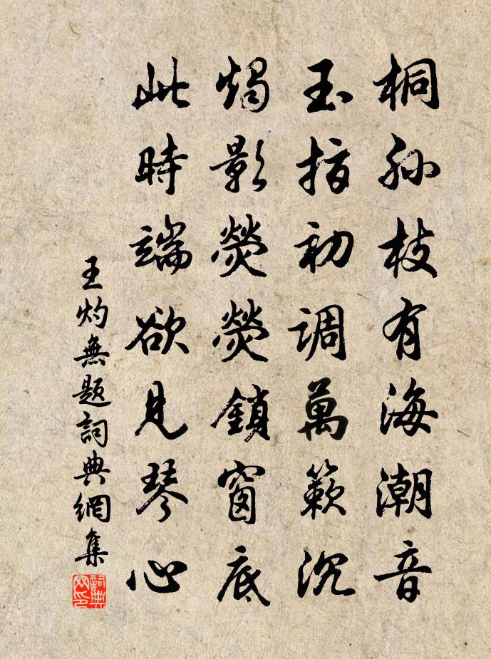 詩詞名句歷史字典書法欣賞書法字典國語詞典說文解字康熙字典古漢語字典標 題 作 者 詩 句 無題作者:王灼 朝代:宋代無題原文桐孫枝有海潮音,玉指初調萬簌沉。燭影熒熒鎖窗底,此時端欲見琴心。詩詞問答問:無題的作者是誰?答:王灼問:無題寫於哪個朝代?答:宋代王灼無題書法欣賞無題書法作品詩詞推薦平等寺員興宗〔宋代〕萬籟久已息,幽鳴竟天和。川靈如有知,野鳥時驚柯。明月照我衣,我起聊自歌。無酒今可觴,如此良夜何。西園宋祁〔宋代〕日涉中園路,昌昌春意深。鳥新無罷囀,雲暖不常陰。秀色平連野,芳姿細著林。歡言挈齋酒,值興即徐斟。江村散步曹彥約〔宋代〕已落無邊木,猶誅不盡茅。沙逃迎遠景,風力鬧寒稍。牧處高低路,漁時遠近郊。竹籬茅舍外,門閉可推敲。臨江仙張伯壽〔宋代〕天上姮娥元不老,人間紫府長春。朱顏鶴髮更清新。觀音常自在,水月淨無塵。有子飄飄麟閣像,有孫庭下詵詵。贛學鄉飲禮成二首李昴英〔宋代〕風化之原出泮芹,飲循豆籩陳。國中推擇爵齒德,堂上獻酬介僎賓。主一敬存容自肅,歌三樂備意相親。粲然應接賀新郎 賦琵琶辛棄疾〔宋代〕鳳尾龍香撥,自開元《霓裳》曲罷,幾番風月?最苦潯陽江頭客,畫舸亭亭待發。記出塞、黃雲堆雪。馬上離愁三減字木蘭花佚名〔宋代〕園林衰槁。一品梅花開太早。紫蕊檀心。獨占中央色似金。幽香清遠。對景開尊同賞玩。雅稱仙姿。莫是多情染相春行方岳〔宋代〕蘚石闌乾一欠伸,垂楊無力不禁顰。清明此去幾何日,燕子未來誰可人。病起不知雙鬢雪,雨中老卻一分春。西山次韻張提刑送行六絕洪咨夔〔宋代〕了無薏苡可囊珠,解事家人氣甚都。日試西川煎茗法,半投白堊半雞蘇。歸剡五首釋行海〔宋代〕此生書劍學無成,癖愛林泉夢亦清。甘苦已知浮世味,親疎盡見舊交情。五湖風月隨閒客,十載冰霜對短檠。歸得偈頌一百五十首釋心月〔宋代〕有句無句,如藤倚樹。樹倒藤枯,毒蛇橫路。咄咄咄,縮頭去。歸州留別傅君寇準〔宋代〕楊柳如絲拂畫橋,此中留語欲魂銷。還愁別後巴東館,獨聽空江半夜潮。抑佚名〔先秦〕抑抑威儀,維德之隅。人亦有言:靡哲不愚,庶人之愚,亦職維疾。哲人之愚,亦維斯戾。無競維人,四方其訓之生查子·秋來愁更深楊無咎〔宋代〕秋來愁更深,黛拂雙蛾淺。翠袖 * ,修竹蕭蕭晚。此意有誰知,恨與孤鴻遠。小立背西風,又是重門掩。漁家黃庶〔宋代〕插屋數竿網,穿籬幾尺船。水鄉菱芡足,不著免租錢。祭龍陳造〔宋代〕廣殿羅籩豆,修廓振佩環。帝觴初拜手,仙馭不違顏。瑞霧浮空下,靈風拂袂還。定知龍宛宛,千禮拱南山。久雨一首劉克莊〔宋代〕春來能得幾朝晴,病叟深藏似凍蠅。獨夜山房惟燭影,暮年家樂只檐聲。墊巾此老猶標緻,裹飯何人訪死生。村北和龐丞相宋祁〔宋代〕顧我支離甚,惟公念不才。朱顏為列郡,白髮入中台。閣道通天祿,宮門拂斗魁。論班元後鄭,作賦或延枚。病肘小立釋圓悟〔宋代〕小立當清曉,一筇吟影孤。蘭香和霧濕,竹老帶藤枯。野水流將合,春山淡欲無。雨晴猶未卜,勞爾鵓鳩呼。正仲復有倒和春愁曲之作依次奉答戴表元〔宋代〕漸老之日來垂垂,已去之日不可追。傷春畏老兩作惡,世事嘗與愁人隨。忽得君家遣愁具,行歌日日春溪路。不知名句推薦山河風景元無異,城郭人民半已非。文天祥《金陵驛二首·其一》 君家玉女從小見,聞道如今畫不成。黃庭堅《謝張仲謀端午送巧作》 為其所難者,必得其所欲焉;未聞為其所欲,而免其所惡者也。墨子《墨子·01章 親士》 怯於邑斗,而勇於寇戰。商鞅《商君書·戰法》 明日近長安,客心愁未闌。納蘭性德《菩薩蠻·白日驚飈冬已半》 日星隱曜,山嶽潛形;范仲淹《岳陽樓記》 漠漠秋雲起,稍稍夜寒生。白居易《微雨夜行》 少年聽雨歌樓上。紅燭昏羅帳。蔣捷《虞美人·聽雨》 登高望蓬流,想像金銀台。李白《游泰山六首》 惱他香閣濃睡,撩亂有啼鶯。晏殊《訴衷情·東風楊柳欲青青》