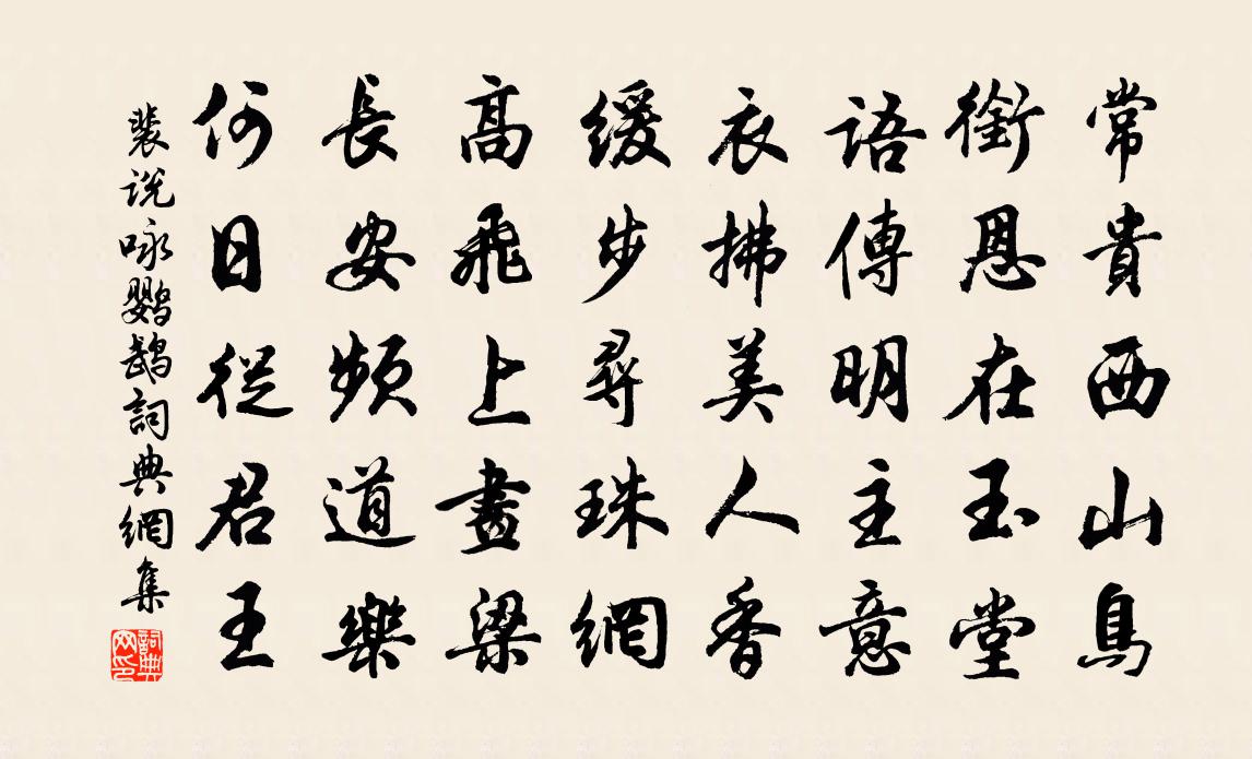 詩詞名句歷史字典書法欣賞書法字典國語詞典說文解字康熙字典古漢語字典標 題 作 者 詩 句 詠鸚鵡作者:裴說 朝代:唐代詠鸚鵡原文常貴西山鳥,銜恩在玉堂。語傳明主意,衣拂美人香。緩步尋珠網,高飛上畫梁。長安頻道樂,何日從君王。詩詞問答問:詠鸚鵡的作者是誰?答:裴說問:詠鸚鵡寫於哪個朝代?答:唐代問:詠鸚鵡是什麼體裁?答:五律裴說詠鸚鵡書法欣賞詠鸚鵡書法作品注釋全唐詩:卷720-41詩詞推薦懷古呂定〔宋代〕我昔游海上,東望三神山。風波幾萬里,蒼茫雲靄間。魚龍自掀舞。天空日月閒。神仙渺無跡,徐福去不還。空餘點絳唇張掄〔宋代〕陽氣初生,萬花潛動根荄暖。暗藏芳艷。未許東君見。恰似溫溫,鉛鼎丹初轉。功猶淺。九回烹煉。日月光華滿。撲蝴蝶邵叔齊〔宋代〕蘭摧蕙折,霜重曉風惡。長安何處,孤根謾自托。水寒斷續溪橋,月破黃昏院落。相逢儼然瘦削。最蕭索。星星蓬新秋以窗里人將老門前樹欲秋為韻作小詩陸游〔宋代〕秋風昨夜來,聲滿梧桐樹。故人渺天末,此夕誰與度?句張鎡〔宋代〕梨花風骨杏花妝。再次韻趙景安四首陳造〔宋代〕酒濃勝得晚天寒,雲氣侵帷水墨翻。蘭蕙香前還判醉,不須投轄鎖重門。孤山釋智愚〔宋代〕黯黯青青一望中,迥然不與眾峰同。白雲散盡江天曉,想見人間無路通。峴山亭易士達〔宋代〕峴山亭是昔人非,忍讀羊公墮淚碑。回首山翁花下處,淒淒芳草晚風悲。水仙子·譏時張鳴善〔元代〕鋪眉苫眼早三公,裸袖揎拳享萬鍾,胡言亂語成時用。大綱來都是哄。說英雄誰是英雄?五眼雞岐山鳴鳳,兩頭蛇夜興陸游〔宋代〕鬢毛飽受雪霜侵,一褐蕭條寄故林。檐雨滴回羈枕夢,城笳喚起塞垣心。平生恥露囊中穎,垂老甘同爨下琴。燈燼錢大參有和用韻謝之七首曹勛〔宋代〕忠教傳家大府開,蒼生久已待鹽梅。我雖潦倒山林下,會聽中天紫詔來。曉出回響山過靜林道中奉寄琳老毛滂〔宋代〕曉色開霜坂,飢烏啄麥畦。山腰余雪瘦,天面冷雲低。寒意梅花北,禪心柏子西。窗前借殘月,照我度前溪。定林寺家之巽〔宋代〕功名良苦賦歸歟,兩鬢霜花百念枯。鐘鼎樓台渾一夢,數間茅屋亦浮屠。失調名佚名〔宋代〕何時一尊酒,重與細論文。長相思 圭塘樂府卷四以上強村叢書店用至正許有壬〔元代〕夢揚州。到揚州。明月長街十二樓。珠簾不上鉤。為誰憂。為誰愁。愁得春風人白頭。見花應自羞。挽所子美侍郎孫應時〔宋代〕萬 * 才息,千年鶴近歸。光榮大所羨,間樂意終違。碧海沉佳氣,空山送落暉。翟公生死冢,雨淚獨沾衣。有贈白玉蟾〔宋代〕我見千家鬧管弦,金瓶玉水養春妍。一朝花落空枝在,爨下焦枯亦可憐。曾聞李白之詩否,以色事人幾長久。斷蕊記萬載風俗三絕祖無擇〔宋代〕官酤米為{左麥右匊},釀出成紅酒。里社醉豐年,便是宣城酎。君復處士棲大師夙有玩月泛湖之約予以臥病致釋智圓〔宋代〕涼風吹眾木,羸病轉加前。伏枕誰相問,中秋月又圓。清光浮遠嶠,冷色混平川。不得同支許,乘舟樂浩然。冬宵引贈司馬承禎宋之問〔唐代〕河有冰兮山有雪,北戶墐兮行人絕。獨坐山中兮對松月,懷美人兮屢盈缺。明月的的寒潭中,青松幽幽吟勁風。此名句推薦方慚不耕者,祿食出閭里。韋應物《觀田家》 去年相送,餘杭門外,飛雪似楊花。蘇軾《少年游·潤州作》 我欲乘槎,直窮銀漢,問津深入。許有壬《水龍吟·過黃河》 斜髻嬌娥夜臥遲,梨花風靜鳥栖枝。唐寅《美人對月》 賈傅松醪酒,秋來美更香。杜牧《送薛種游湖南》 對望中天地,洞然如刷。史達祖《滿江紅·中秋夜潮》 廢一善,則眾善衰。賞一惡,則眾惡歸。黃石公《三略·下略》 遠信入門先有淚,妻驚女哭問何如。元稹《得樂天書》 擇子莫擇父,擇親莫擇鄰。佚名《增廣賢文·下集》 夢裡不知身是客,一晌貪歡。李煜《浪淘沙令·簾外雨潺潺》