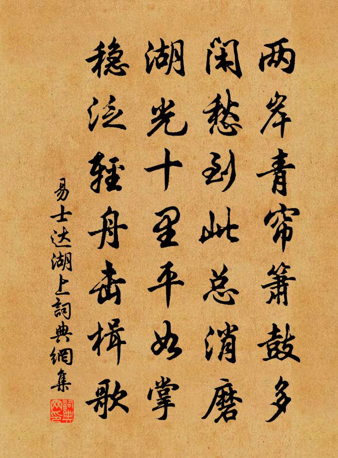 詩詞名句歷史字典書法欣賞書法字典國語詞典說文解字康熙字典古漢語字典標 題 作 者 詩 句 湖上作者:易士達 朝代:宋代湖上原文兩岸青簾簫鼓多,閒愁到此總消磨。湖光十里平如掌,穩泛輕舟擊楫歌。詩詞問答問:湖上的作者是誰?答:易士達問:湖上寫於哪個朝代?答:宋代易士達湖上書法欣賞湖上書法作品詩詞推薦賜陳堯叟謝病歸濟源宋真宗〔宋代〕文苑垂清譽,胡端仰盛才。嘉猷毗萬路,奇遇列三台。勤職興石爽,辭榮奏疏來。疇咨登百揆,異數冠中台。巨屏答趙景猷曹攄〔魏晉〕古人罔極。今我不爽。願言所欽。唯子靡兩。情存口詠。心憶目想。形游神還。身去意往。佇立不見。瞻望佛仿。女貧苦難妍洪邁〔宋代〕女貧苦難妍,士貧苦難高。了知論此者,不識一切豪。此身百斛鼎,流俗欲手操。寧當舍其中,侷促計所遭。頗疑病中雜興五言十首劉克莊〔宋代〕蒙叟雲聃死,當時有吊賓。始知關尹子,迂誕誑愚人。古艷歌佚名〔兩漢〕煢煢白兔,東走西顧。衣不如新,人不如故。張堯夫寺丞改葬輓詞梅堯臣〔宋代〕舊墳為潤齧,新冢得山深。斬木來荒路,移松出近岑。黃鸝啼棗上,玉女問泉音。強作挽人唱,儻知哀感心。梅花滕岑〔宋代〕色香其實無與比,摹寫百端良可嗟。我今與下語一則,此是梅花非別花。題周恭帝陵李淑〔宋代〕弄楯牽車挽鼓催,不知門外倒戈回。荒墳斷隴才三尺,猶認房陵半仗來。暑不雜興方岳〔宋代〕是非不到野溪邊,只就梧桐聽雨眠。睡熟不知溪水長,鷺鷥飛上釣魚船。五言述德抒情詩一首四十韻,獻上杜七兄僕射李商隱〔唐代〕帝作槍黃金闕,仙開白玉京。有人扶太極,惟岳降元精。耿賈官勛大,荀陳地望清。旂常懸祖德,甲令著嘉聲。經水龍吟(己亥壽史督相)李曾伯〔宋代〕明堂一柱擎天,眼看黃閣空諸老。平生方寸、班班四字,誠心公道。玉帳雲旗,金城露布,尚勤征討。向淮頭蜀口次韻弟觀送牡丹陳著〔宋代〕極目風沙姚魏家,耳邊忍聽後庭花。誰能把家前黃醉,添得臨風感歲華。挽趙飛卿陽枋〔宋代〕萬翠亭邊山郁蔥,書聲散出五雲重。紅萱色改宦情薄,綠酒杯深客話濃。雁起秋空從整整,鷗間野水自溶溶。誰人寄張昭度馮時行〔宋代〕知君多暇豫,山縣少追胥。日晏未鳴鼓,夜分猶誦書。相思千里外,一見二年余。錦水連三峽。時通雙鯉魚。送邵安石及第(一作選輦歸連州覲省)曹松〔唐代〕及第兼歸覲,宜忘涉驛勞。青雲重慶少,白日一飛高。轉楚聞啼狖,臨湘見疊濤。海陽沈飲罷,何地佐旌旄。蘭亭陸游〔宋代〕蘭亭絕境擅吾州,病起身閒得縱游。曲水流觴千古勝,小山叢桂一年秋。酒酣起舞風前袖,興盡回橈月下舟。江左寶慶院陳舜俞〔宋代〕小招提在白雲層,古殿深龕鎖晝燈。山北遠公曾結社,至今猶有種蓮僧。挽東萊先生邵度〔宋代〕雨化三吳士,風行萬古書。石渠功不細,鳳閣位方虛。梁木何摧地,泉台欲駕輿。來觀自燕者,頑懦亦欷噓。和白樂天(時以太子賓客分司東都)佚名〔唐代〕病餘歸到洛陽頭,拭目開眉見白侯。鳳詔恐君今歲去,龍門欠我舊時游。幾人樽下同歌詠,數盞燈前共獻酬。相對興善寺貝多樹張喬〔唐代〕還應毫末長,始見拂丹霄。得子從西國,成陰見昔朝。勢隨雙剎直,寒出四牆遙。帶月啼春鳥,連空噪暝蜩。遠根名句推薦關山正飛雪,烽火斷無煙。王維《隴西行》 救人須救急,施人須當厄。馮夢龍《醒世恆言·卷十》 好言難得,惡語易施。佚名《增廣賢文·上集》 花隱掖垣暮,啾啾棲鳥過。杜甫《春宿左省》 嗟險阻,嘆飄零。關山萬里作雄行。劉克莊《玉樓春·戲林推》 早梅發高樹,迥映楚天碧。柳宗元《早梅》 得饒人處且饒人。曹雪芹《紅樓夢·第五十九回》 細柳開營揖天子,始知灞上為嬰孩李白《司馬將軍歌》 夫子循循然善誘人孔子弟子《論語·子罕篇》 辛勤三十日,母瘦雛漸肥。白居易《燕詩示劉叟》