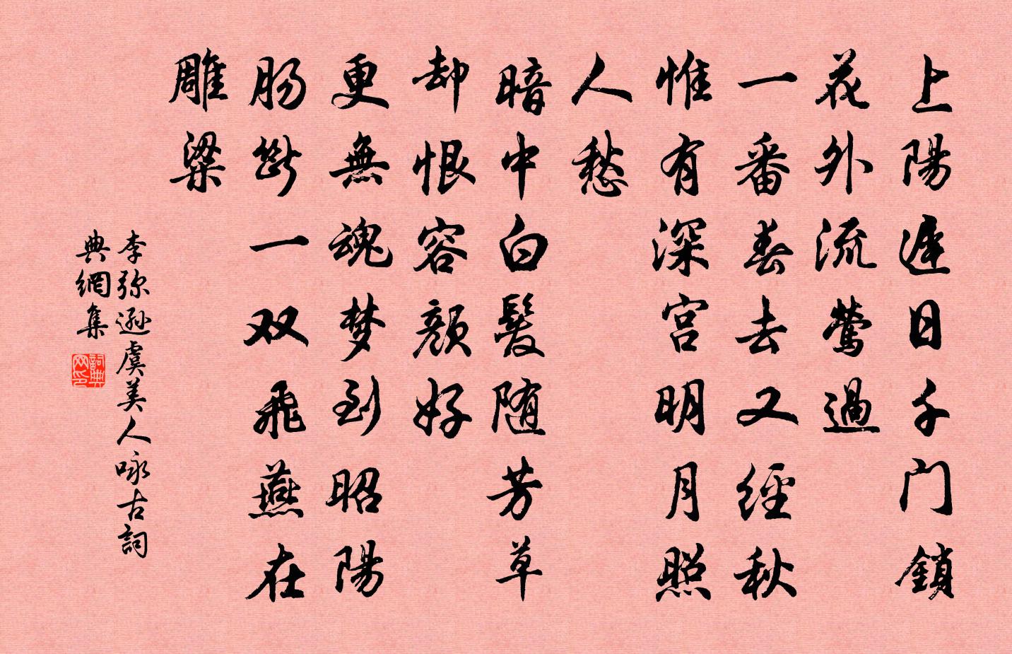 - 楊柳風柔,海棠月淡,獨自倚闌時。薩都剌《小闌乾·去年人在鳳凰池》