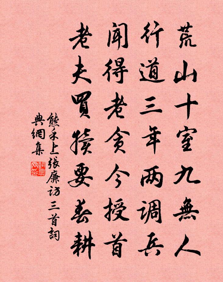 詩詞名句歷史字典書法欣賞書法字典國語詞典說文解字康熙字典古漢語字典標 題 作 者 詩 句 上張廉訪三首作者:熊禾 朝代:宋代上張廉訪三首原文荒山十室九無人,行道三年兩調兵。聞得老貪今授首,老夫買犢要春耕。詩詞問答問:上張廉訪三首的作者是誰?答:熊禾問:上張廉訪三首寫於哪個朝代?答:宋代熊禾上張廉訪三首書法欣賞上張廉訪三首書法作品詩詞推薦春日懷古釋重顯〔宋代〕門外春將半,岩冰暖有聲。玄沙曾未到,虛得偃溪名。山庭春日詩江總〔隋代〕洗沐花惟五日花。棲遲花在一丘花。古楂橫近澗。危石聳前洲。岸綠開河柳。池紅照海榴。野花寧待晦。山蟲詎識秋閨王同祖〔宋代〕零露瀼瀼夜氣浮,嫩寒差力五更頭。鄰雞啼破交加夢,冷浸梧桐月一鉤。翠微亭張履信〔宋代〕朝朝烏北出,放夜烏南歸。所謀在一食,所息在一枝。人生竟何得,與烏同此機。身世忽過慮,泉石良自怡。月上感夢元稹〔唐代〕行吟坐嘆知何極,影絕魂銷動隔年。今夜商山館中夢,分明同在後堂前。鶯鳴十章寄戚伯瑞彭龜年〔宋代〕莫克匪己,莫玩匪理。有懷於是,不知子之所止。文中子石介〔宋代〕獨將禮樂付程仇,房杜無才聞大猷。可惜唐家三百載,聲明文物愧宗周。減字木蘭花佚名〔宋代〕東君有待。留得一枝香雪在。晚日融融。只恐輕酥暖漸熔。歌催管送。芳酒一尊誰與共。寂寞牆東。瀟灑黃昏滿院浣溪沙(有感)蘇軾〔宋代〕傅粉郎君又粉奴。莫教施粉與施朱。自然冰玉照香酥。有客能為神女賦,憑君送與雪兒書。夢魂東去覓桑榆。送俊癯翁並憶少野釋行海〔宋代〕少野不來君又去,獨看花柳不成春。江湖豈是無兄弟,如此知心有幾人。一落索晁端禮〔宋代〕道著明朝分袂。早眉頭攢翠。不言不語只偎人,滿眼裡、汪汪地。向道不須如此。轉吞聲飲氣。一團兒肌骨不禁春端午蒲壽宬〔宋代〕鬢符腰艾去紛紛,荷葉荷花匝水濱。思遠樓前雖有曲,若邪溪畔豈無人。莫將楚恨悲兒女,聊把騷章托鬼神。濁酒絳都春(次韻趙西里游平山堂二詞)張榘〔宋代〕平山老柳。寄多少勝游,春愁詩瘦。萬疊翠屏,一抹江煙渾如舊。晴空欄檻今何有。寂寞文章身後。喚回奇事,青醉蓬萊(代壽昌州守叔祖)李曾伯〔宋代〕記石湖佳句,為海棠花,合來西蜀。不道東州,更香霏情淑。漢竹光中,召棠陰里,想清歡未足。少駐旌麾,姑留征西舊卒許渾〔唐代〕少年乘勇氣,百戰過烏孫。力盡邊城難,功加上將恩。曉風聽戍角,殘月倚營門。自說輕生處,金瘡有舊痕。記夢華岳〔宋代〕溪泠泠,鼓冬冬,虛堂淅瀝生寒風。寒風繞我夢魂去,飛揚直上蓬萊宮。蓬萊宮殿女如玉,霓裳羽扇環簾櫳。月娥感詠十解寄呈楊安撫白玉蟾〔宋代〕身如雲樣輕,心似月兮皎。何物堪贈居,一顆安期棗。夜聞塔鈴及泉聲陸游〔宋代〕山泉瀉幽竇,塔鈴搖天風;清音無時盡,靜夜尤璁瓏。嗟我走紅塵,市聲聒欲聾,多生耳根業,賴此一洗空。夢騎題妙明師靜軒鄭剛中〔宋代〕小徑禪房瑣綠苔,坐中聞葉亦幽哉。此居不是能瀟灑,但我初從鬧處來。送史溫虞部佐郡四明宋祁〔宋代〕外署清郎出佐州,嘲辭不畏上山頭。天中倦目迷雲闕,江上歸帆避石郵。佳設自隨賓早晏,還書寧畏渚沈浮。疁田名句推薦滄浪之水清兮,可以濯我纓;佚名《滄浪歌》 故君子力事日強,願欲日逾,設壯日盛。墨子《墨子·02章 修身》 孤客傷逝湍,徒旅苦奔峭。謝靈運《七里瀨》 凡學之道,嚴師為難。戴聖《禮記·學記》 始於文而卒於武,天地之道也。佚名《黃帝四經·經法·論約》 盡道豐年瑞,豐年事若何羅隱《雪》 牽牛織女遙相望,爾獨何辜限河梁。曹丕《燕歌行二首·其一》 孔雀東南飛,五里一徘徊。佚名《孔雀東南飛 / 古詩為焦仲卿妻作》 人方為刀俎,我為魚肉司馬遷《史記·項羽本紀》 春愁凝思結眉心,綠綺懶調紅錦薦。顧敻《玉樓春·拂水雙飛來去燕》
