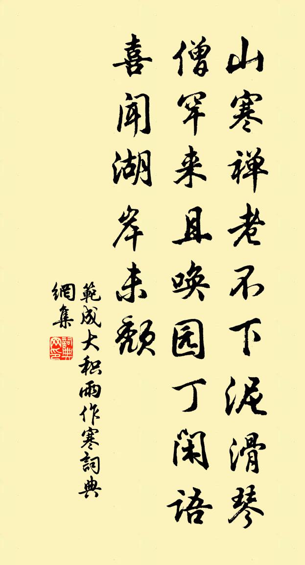 山寒禪老不下,泥滑琴僧罕來。且喚園丁閒語,喜聞湖岸未頹。
