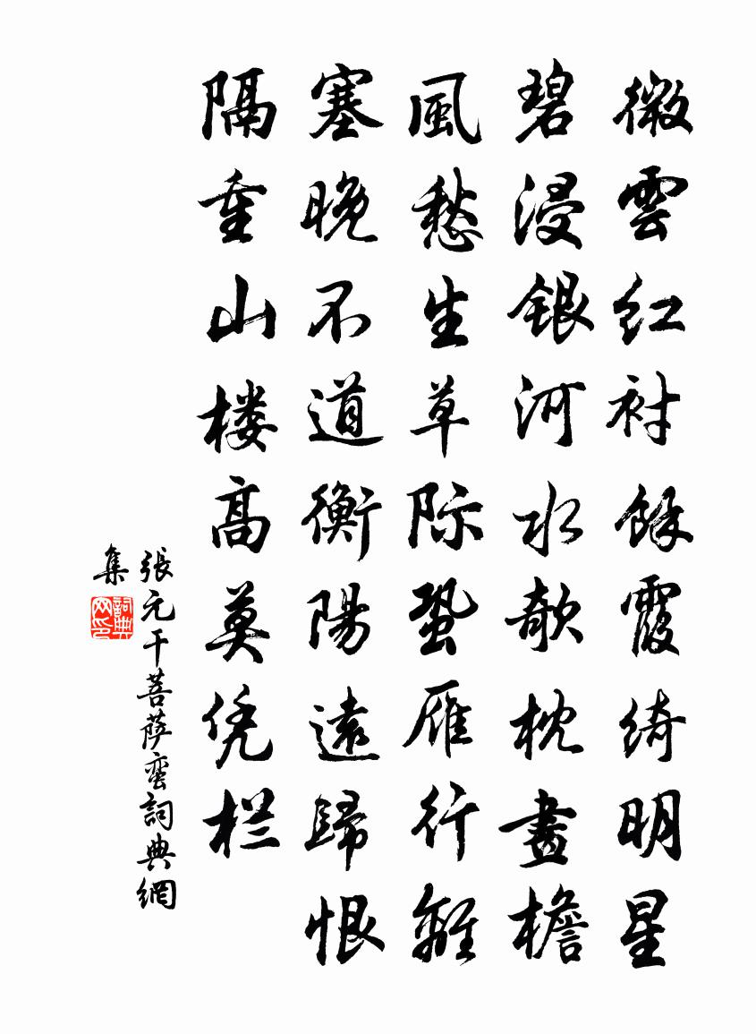 微雲紅襯餘霞綺。明星碧浸銀河水。欹枕畫檐風。愁生草際蛩。