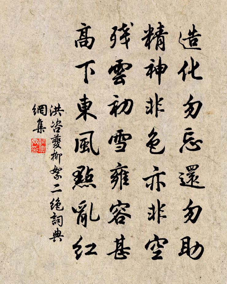 詩詞名句歷史字典書法欣賞書法字典國語詞典說文解字康熙字典古漢語字典標 題 作 者 詩 句 柳絮二絕作者:洪咨夔 朝代:宋代柳絮二絕原文造化勿忘還勿助,精神非色亦非空。殘雲初雪雍容甚,高下東風點亂紅。詩詞問答問:柳絮二絕的作者是誰?答:洪咨夔問:柳絮二絕寫於哪個朝代?答:宋代洪咨夔柳絮二絕書法欣賞柳絮二絕書法作品詩詞推薦晴日縱步二首蘇籀〔宋代〕雲際潺湲入下田,田塍級級逗平泉。羊腸犖确褰裳過,蝸殼跧藏插槿邊。荷蓧何人行嘆息,饋漿與客更留連。丹霞冬夜宴河中李相公中堂命箏歌送酒劉禹錫〔唐代〕朗朗鵾雞弦,華堂夜多思。簾外雪已深,座中人半醉。翠蛾發清響,曲盡有餘意。酌我莫憂狂,老來無逸氣。鏡羅鄴〔唐代〕昔歲相知別有情,幾回磨拭始將行。如今老去愁無限,抱向閒窗卻怕明。偈頌八十七首釋慧開〔宋代〕開爐半月,火種全無。冷灰豆爆,驚動江湖。贈江宰彥通曾豐〔宋代〕富沙耆舊江先生,方冊之中久聞名。今識其子長安城,中年狀貌老典刑。居官不翅冰玉清,未嘗一出清之聲。臨事汾陰十首真宗〔宋代〕報功厚載,祀事惟明。思文烈考,道濟群生。侑神定位,協德安平。聲潔並薦,享於克誠。春風羅鄴〔唐代〕每歲東來助發生,舞空悠颺遍寰瀛。暗添芳草池塘色,遠遞高樓簫管聲。簾透驪宮偏帶恨,花催上苑剩多情。如何相和歌辭胡無人行僧貫休〔唐代〕霍嫖姚,趙充國,天子將之平朔漠。肉胡之肉,燼胡帳幄,千里萬里,惟留胡之空殼。邊風蕭蕭,榆葉初落,殺氣贈人三首次韻道卿張耒〔宋代〕未必蝤蠐如素領,故應新月學蛾眉。引成密約因言笑,試得真情是別離。罇酒且傾寒琥珀,淚妝更看薄臙脂。北城送仝座主歸上黨釋正覺〔宋代〕夜明簾外月天霜,衲子還家機事忘。枯木吟雲鬚內照,死蛇含毒更堤防。聞琴起舞飲光習,放鏡迷頭深若狂。好是玉樓春·和吳見山韻吳文英〔宋代〕闌乾獨倚天涯客。心影暗凋風葉寂。千山秋入雨中青,一雁暮隨雲去急。霜花強弄春顏色。相吊年光澆大白。海煙送文用庵主歸舊隱釋重顯〔宋代〕太白峰前舊隱基,杉松寒翠滴無時。經年拋卻又歸去,再聽岩猿祇自知。梅易士達〔宋代〕月上吟窗疏影浮,暗香風動襲衣裘。溫存留索巡檐笑,遮莫高樓起笛愁。龍山補亡蘇軾〔宋代〕吾聞君子,蹈常履素。晦明風雨,不改其度。平生丘壑,散發箕裾。墜車天全,顛沛何懼。腰適忘帶,足適忘屨。送巨中教授解官毛滂〔宋代〕天公憐我欲元鄰,得近芝蘭久益芬。定免幼安還割席,擬從東野若為雲。歸鞭那有藍關雪,別夢應通魯水芹。強飯和曾守出後房麗人曹勛〔宋代〕方慚虛薄預時流,仍見娉婷恰上頭。檀口細能喔赤壁,羊醅喜為沃清愁。當軒妙有眉宇秀,列屋尚誰庭院幽。頗恨張無盡過黃州,徐君猷為守,有四侍人,姓為蘇軾〔宋代〕玉筍纖纖揭繡簾,一心偷看綠蘿尖。使君三尺球頭帽,須信從來只有檐。晚思高蟾〔唐代〕虞泉冬恨由來短,楊葉春期分外長。惆悵浮生不知處,明朝依舊出滄浪。南明道中釋行海〔宋代〕酒旗猶寫天台紅,小白花繁綠刺叢。蜂蝶不來春意靜,日斜桐角奏東風。和馮中戍爐邊偶作王禹偁〔宋代〕誰為東君掌青律,故將春日連人日。春日雨絲暖融融,人日雪花寒慄栗。雨雪寒暖苦不同,可比交情去就中。仲鹹名句推薦蕭蕭落木不勝秋,莫回首、斜陽下。納蘭性德《一絡索·過盡遙山如畫》 杖劍對尊酒,恥為遊子顏。陸龜蒙《別離》 雲想衣裳花想容,春風拂檻露華濃李白《清平調·其一》 北風吹雪四更初,嘉瑞天教及歲除。陸游《除夜雪》 良賈深藏若虛,君子盛德容貌若愚。司馬遷《史記·七十列傳·老子韓非列傳》 其持之有故,其言之成理。荀子《荀子·非十二子》 樂遊原上清秋節,鹹陽古道音塵絕。李白《憶秦娥·簫聲咽》 愚而好自用,賤而好自專。子思《中庸·第二十八章》 經師易求,人師難得。令狐德棻《周書·列傳·卷四十五》 梧桐葉上三更雨,葉葉聲聲是別離。周紫芝《鷓鴣天·一點殘紅欲盡時》