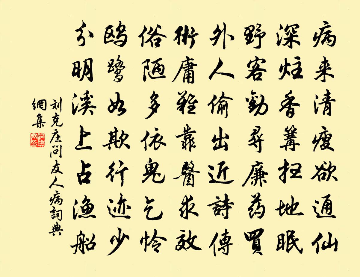 詩詞名句歷史字典書法欣賞書法字典國語詞典說文解字康熙字典古漢語字典標 題 作 者 詩 句 問友人病作者:劉克莊 朝代:宋代問友人病原文病來清瘦欲通仙,深炷香篝掃地眠。野客勸尋廉藥買,外人偷出近詩傳。術庸難靠醫求效,俗陋多依鬼乞憐。鷗鷺如欺行跡少,分明溪上占漁船。詩詞問答問:問友人病的作者是誰?答:劉克莊問:問友人病寫於哪個朝代?答:宋代問:劉克莊的名句有哪些?答:劉克莊名句大全劉克莊問友人病書法欣賞問友人病書法作品詩詞推薦上荊公生辰陳輔〔宋代〕十月江南已得霜,相君門客小山房。冬深柏子和香掃,準備生辰作好香。城壞復修又賦劉克莊〔宋代〕補罅扶傾手段新,舉頭千丈又嶙峋。主謀何止堪戶祝,妄議真當抵鬼薪。見說傳更增邏卒,已聞犯夜少奸民。小偷寄題孔氏顏樂亭蘇轍〔宋代〕顏巷久已空,顏井固不遷。荊榛翳蔓草,中有百尺泉。誰復飲此水,裹飯耕廢田,有賢孔氏孫,芟夷發清源。廢床朝中措(壽劉仲吉)熊節〔宋代〕麒麟早貴掛朝冠。自合侍金鑾。收拾經綸事業,從容遊戲人間。祗今侍彩,符分楚甸,名在蓬山。直待疏封大國,武夷山喻良能〔宋代〕沖佑觀前水紺色,升真洞北山筍攢。群峰不斷四時翠,萬壑長留九月寒。溪上桃花引漁子,雲間仙犬逐劉安。平生吳江王安石〔宋代〕莽莽昔登臨,秋風一散襟。地留孤嶼小,天入五湖深。柑橘無千里,魚蝦有萬金。痦雖輕范蠡,終欲此幽尋。臨濟贊釋崇岳〔宋代〕一棒一喝,傾湫倒岳。凌蔑吾宗,這白拈賊。次韻徐文將至國門見寄二首黃庭堅〔宋代〕槐催舉子作花黃,來食邯鄲道上粱。便欲掃床懸麈尾,正愁喘月似燈光。病中止酒楊萬里〔宋代〕平生萬事輕,惟以酒自娛。當其愛酒時,一日不可無。老來因屬疾,不飲五月余。客飲我不羨,而況逢麴車。見杯贈高眼陳相士姚勉〔宋代〕請君著眼相吾梅,自是群芳合遜魁。但有一般難相處,玉堂也似竹籬開。成名後呈同年黃滔〔唐代〕業詩攻賦薦鄉書,二紀如鴻歷九衢。待得至公搜草澤,如從平陸到蓬壺。雖慚錦鯉成穿額,忝獲驪龍不寐珠。蒙楚新樓詩二十首晏安寺李紳〔唐代〕寺深松桂無塵事,地接荒郊帶夕陽。啼鳥歇時山寂寂,野花殘處月蒼蒼。絳紗凝焰開金像,清梵銷聲閉竹房。丘壟湖上感春釋行海〔宋代〕西湖二月好笙歌,游女游郎半插花。忽對春風懷故國,不知新燕入誰家。寒食夜韓偓〔唐代〕惻惻輕寒剪剪風,杏花飄雪小桃紅。夜深斜搭鞦韆索,樓閣朦朧細雨中。橫秋閣王駜〔宋代〕地僻無車馬,新涼入醉鄉。柳煙顰夕渚,蓮露泣秋塘。懶聽能啼雁,閒披古錦囊。物華隨處好,何必在瀟湘。次韻奉送李季言四首張元乾〔宋代〕藩鎮各傳新號令,山河那復舊提封。歸時剩語騎鯨老,堅臥無如澗底松。登祝融寺蘭若盧肇〔唐代〕祝融絕頂萬餘層,策杖攀蘿步步登。行到月宮霞外寺,白雲相伴兩三僧。東吳女兒曲陸游〔宋代〕東吳女兒語如鶯,十三不肯學吹笙。鏡奩初喜樨蠶出,窗眼已看雙繭成。庭空日暖花自舞,簾卷巢乾燕新乳。阿弟夏日十二首張耒〔宋代〕細徑依原僻,蓬蒿四五家。山田來雉兔,溪雨熟桑麻。竹籠晨收果,茅庵夜守瓜。頗知農事樂,彼此問生涯。六州佚名〔宋代〕嚴太寢,容禮繹前經。仰蒼粹,欽厚順,式報生成。至信洽,上格神靈。太和凝氣象,霄宇澄清。圭幣列,鼓鍾鏗名句推薦和氏之璧,不飾以五采;隋侯之珠,不飾以銀黃。其質至美,物不足以飾之。韓非及後人《韓非子·解老》 寒夜客來茶當酒,竹爐湯沸火初紅。杜耒《寒夜》 春風疑不到天涯,二月山城未見花。歐陽修《戲答元珍》 五馬如飛龍,青絲結金絡。李白《陌上桑》 今日雲景好,水綠秋山明。李白《九日》 盡無言、閒品秦箏,淚滿參差雁呂渭老《薄倖·青樓春晚》 花明月暗籠輕霧,今宵好向郎邊去。李煜《菩薩蠻·花明月暗籠輕霧》 當時父母念,今日爾應知。白居易《燕詩示劉叟》 今夫地一撮土之多,及其廣厚載華岳而不重,振河海而不洩,萬物載焉。子思《中庸·第二十六章》 鳥飛反故鄉兮,狐死必首丘。屈原《九章》