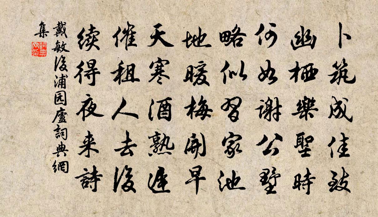 詩詞名句歷史字典書法欣賞書法字典國語詞典說文解字康熙字典古漢語字典標 題 作 者 詩 句 後浦園廬作者:戴敏 朝代:宋代後浦園廬原文卜築成佳致,幽棲樂聖時。何如謝公墅,略似習家池。地暖梅開早,天寒酒熟遲。催租人去後,續得夜來詩。詩詞問答問:後浦園廬的作者是誰?答:戴敏問:後浦園廬寫於哪個朝代?答:宋代戴敏後浦園廬書法欣賞後浦園廬書法作品詩詞推薦斑騅范成大〔宋代〕斑騅別後月纖纖,門外疏桐影畫簾。留下可憐將不去,西風吹上兩眉尖。挽蔡久軒吳勢卿〔宋代〕道學相承祖子孫,諸儒誰得似淵源。銅川而上誰家世,程氏之門止弟昆。後世定知尊所學,當時未盡用其言。四書次韻徽州胡推官旅中遇雪且約同登雨花台三首周必大〔宋代〕傳道詩仙折簡來,破卷雪屋為君開。要將好句誇張籍,故放歌謠吏部才。送江水曹還遠館詩謝朓〔南北朝〕高館臨荒途。清川帶長陌。上有流思人。關卡是望歸客。塘邊草雜紅。樹際花猶白。日暮有重城。何由盡離席。送侄一齋游武林柴元彪〔宋代〕舸鷁退飛杭不魚,滄海翻覆桑田墟。長安草木成焦枯,暗暗落日棲平蕪。淒涼往事增欷噓,子長一部太史書。寄在仁宗皇帝輓詞三首曾鞏〔宋代〕納諫終無牾,無人久更明。恩波通四海,壽域載群生。異俗衣裳會,諸儒雅頌聲。威靈空想像,盛德詎能名。韓玉汝使歸曾鞏〔宋代〕顧命逮殊鄰,輶軒遵此道。公府戒行期,禁庭頒重寶。積雪正東流,度河盛前導。士勇踐胡塵,馬驕嘶塞草。玉節送虔州知州金君卿〔宋代〕所蒞驅除弊一新,政成草木亦知仁。已書治最稱循吏,好躡家聲作諍臣。飛詔罷歸漳水日,去帆催向汴隄春。未央辭朝胡銓〔宋代〕不踏金堤新築沙,卻尋寂寞紫雲家。一春弦管花間鳥,半夜笙歌水底蛙。榮悴安時猶竹柏,行藏有待豈匏瓜。獨醒韓相生日金君卿〔宋代〕商飈迎素律,兌澤薦元精。象順奎鈞爛,天鍾義氣清。千齡將聖偶,冢輔為時生。粹蘊森群玉,沖襟貯四瀛。大方金縷曲顧貞觀〔清代〕季子平安否?便歸來,平生萬事,那堪回首!行路悠悠誰慰藉,母老家貧子幼。記不起,從前杯酒,魑魅搏人座見題尤使君郡圃十二詩凝思齋李庚〔宋代〕孫綽賦天台,平人以圖至。公今身見之,情親心更醉。坐想復行吟,商頌得十二。寄語范榮期,金聲重擲地。次韻蔣德言游太白玉幾兩山樓鑰〔宋代〕西山不到幾經春,玉山猶能一再臨。太白峰前成夢境,直從總角到於今。防風王廟釋永頤〔宋代〕萬國方尊禹,防風殞殿趨。應憐舞乾戚,獨不礙唐虞。祭豆侵田鼠,靈幡觸井烏。椒漿春奠罷,簫鼓押村巫。金沙井董嗣杲〔宋代〕沙漾金星涌活泉,虛堂龍染德馨懸。朱繩汲冷梅林外,翠甃圍涼桂洞前。石鼎煮茶非異事,井闌鐫字是何年。西南送曾子固倅越得燕字蘇軾〔宋代〕醉翁門下土,雜遝難為賢。曾子獨超軼,孤芳陋群妍。昔從南方來,與翁兩聯翩。翁今自憔悴,子去亦宜然。賈誼夏日山居好十首舒岳祥〔宋代〕夏日山居好,吟來亦自豪。焚香誦周易,痛飲讀離騷。莫諱無三甲,吾今已二毛。蕪編三日卷,空費一生勞。玻璃江一首戲效陸務觀作范成大〔宋代〕玻璃江頭春淥深,別時沄沄流到今。祗言日遠易排遣,不道相思翻苦心。烏頭可白我可去,菖花易青君易尋。人生中秋月蝕邦人鳴鉦救月不約而齊中原舊俗猶有家鉉翁〔宋代〕大化周流不暫停,從來息處見其生。冰輪萬古長如此,本體何曾有晦明。再賡佳什已致牽羊之請又辱不鄙垂教蓋不巫困李流謙〔宋代〕講摩師友我尤須,此道今人已絕無。頗欲相從問奇字,故應未暇注陰符。竹嫌影薄乘春種,酒怕樽空帶雪沽。杖屨名句推薦閣道步行月,美人愁煙空。李白《上之回》 謫仙何處,無人伴我白螺杯。黃庭堅《水調歌頭·遊覽》 紫萸一枝傳賜,夢誰到、漢家陵。姚雲文《紫萸香慢·近重陽》 千里之馬時一有,其利緩;駑馬日售,其利急。韓非及後人《韓非子·說林下》 居高聲自遠,非是藉秋風。虞世南《蟬》 蘭葉春葳蕤,桂華秋皎潔。張九齡《感遇十二首·其一》 天時人事日相催,冬至陽生春又來。杜甫《小至》 鴛鴦密語同傾蓋,且莫與、浣紗人說。張炎《疏影·詠荷葉》 玉樓金闕慵歸去,且插梅花醉洛陽朱敦儒《鷓鴣天·西都作》 春風只在園西畔。薺菜花繁胡蝶亂。嚴仁《玉樓春·春思》