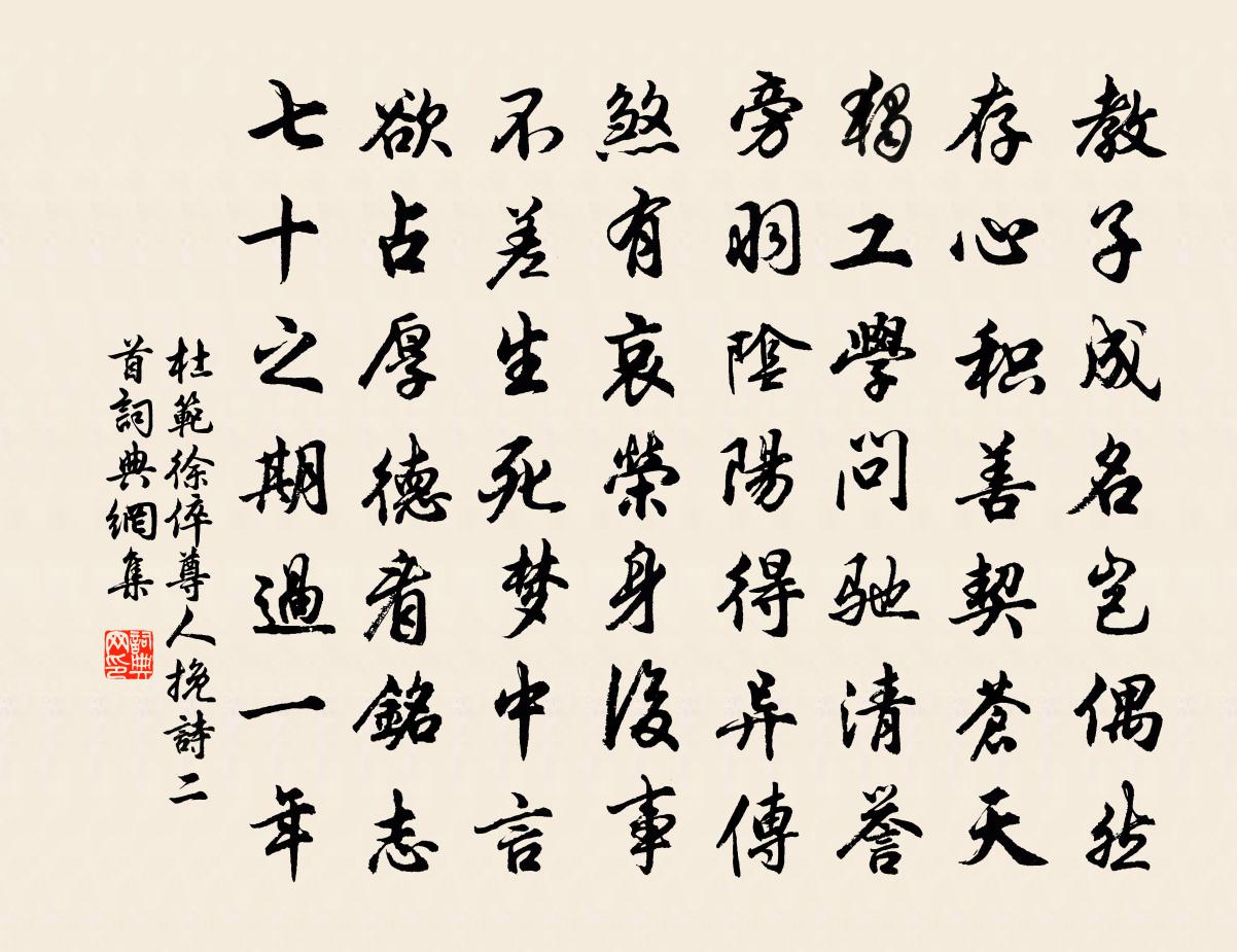 詩詞名句歷史字典書法欣賞書法字典國語詞典說文解字康熙字典古漢語字典標 題 作 者 詩 句 徐倅尊人輓詩二首作者:杜范 朝代:宋代徐倅尊人輓詩二首原文教子成名豈偶然,存心積善契蒼天。獨工學問馳清譽,旁羽陰陽得異傳。煞有哀榮身後事,不差生死夢中言。欲占厚德看銘志,七十之期過一年。詩詞問答問:徐倅尊人輓詩二首的作者是誰?答:杜范問:徐倅尊人輓詩二首寫於哪個朝代?答:宋代杜范徐倅尊人輓詩二首書法欣賞徐倅尊人輓詩二首書法作品詩詞推薦聞五月八日宸翰口號十首劉克莊〔宋代〕飲瓢未必臞顏氏,裹飯誰曾訪子來。天上人間唯玉帝,肯分雨露到枯荄。滿江紅 赤壁懷古戴復古〔宋代〕赤壁磯頭,一番過、一番懷古。想當時、周郎年少,氣吞區宇。萬騎臨江貔虎噪,千艘列炬魚龍怒。卷長波、一鼓孝宗皇帝輓詞五首陳傅良〔宋代〕深衷何自見。寬詔不勝書。當寧延方岳,逢人問里閭。歲為周委積,家被漢蠲除。巷哭彌天遠,長江淚不如。清明雨寒八首楊萬里〔宋代〕風欹眾柳自成姘,雨泣殘花不忍看。急喚麴生嘗杏子,及渠小苦未生酸。句張表臣〔宋代〕蛇蛟已盡定飛去,雷電欻驚重下來。赤堇篇楊維楨〔元代〕吳鉤父悖子,楚耶臣逆君。曷比赤堇精,新鑄雙龍文。作世無價寶,三卿無足論。倚天落旄頭,仰日裂飛雲。一怒望織女詩范雲〔南北朝〕盈盈一水邊。夜夜空自憐。不辭精衛苦。河流未可填。寸情百重結。一心萬處懸。願作雙青鳥。共舒明鏡前。宋頌九首湯湯石介〔宋代〕昔時蜀道,絕人來往。今蜀既平,王道蕩蕩。尉候一置,朝貢相望。巍巍皇祖,德聲遠暢。平原郡王南園詩二十一首鮮霞姜特立〔宋代〕蟠桃花發景爭新,流水漂香幾換春。洞口霞光長蔽日,須知中有武陵人。張君枉道顧予因書短篇以答來貺強至〔宋代〕煌煌肉食有高冠,附者如馳順坂丸。吾子與時誠異向,窮山為我肯相看。更煩溢幅投璣琲,自愧無門借羽翰。努力和安撫王誠之給事重九日登高詩韻虞儔〔宋代〕秋雁初飛幾點高,臥龍送目十分豪。且容司馬吹紗帽,莫向參軍問騎曹。飲吸百川從酩酊,詩驅萬象入甄陶。菊花曉晴吳沆〔宋代〕夜半雨忽作,朝來雲又晴。林花洗幽艷,池水湛虛明。草色侵衣濕,山光入座清。茅檐正幽寂,啼鳥兩三聲。贈仲素寺丞致仕歸隱潛山蘇軾〔宋代〕潛山隱君七十四,紺瞳綠髮方謝事。腹中靈腋變丹砂,江上幽居連福地。彭城為我駐三日,明月滿舟同一醉。丹書贈別崔純亮孟郊〔唐代〕食薺腸亦苦,強歌聲無歡。出門即有礙,誰謂天地寬。有礙非遐方,長安大道傍。小人智慮險,平地生太行。鏡破鄭子仁生日用其去臘見壽韻項安世〔宋代〕月日巧當真四六,風流全是妙詞章。金華洞府神仙骨,麗澤書堂翰墨香。隴麥秋時椿自好,林鶯老去鶴偏長。綠槐明妃曲四首儲光羲〔唐代〕西行花隴上泣胡天,南向雲中指渭川。毳幕夜來時宛轉,何由得似花邊。胡王知妾不勝悲,樂府皆傳漢國辭。朝來和黃彥華帥機六言十首劉克莊〔宋代〕吾嘗評論齊物,未知彭殤孰賢。蒙莊略曉些子,分別小年大年。二月廿九日收宗玉弟京口畫還家有日喜而賦詩徐瑞〔宋代〕半歲無畫界我胸,短蓬念汝過殘冬。官情但可京口酒,客夢應隨浮玉鍾。棄從向來緣底事,妍妝今日為誰容。畫來大慧宏智揖讓圖贊釋了惠〔宋代〕既不以爵,又不敘齒。何得過謙,讓之不已。若謂是臨濟家風,洞上宗旨,笑倒磨光黑交椅。紀事何林尉韻李昴英〔宋代〕清晨風日辟群陰,一紙三熏上帝臨。或者貪功頻滑手,毅然奮筆特誅心。冤辭賴有由言折,聖世難施漢法沉。此舉名句推薦蝴蝶不傳千里夢,子規叫斷三更月。辛棄疾《滿江紅·點火櫻桃》 雁行緣石徑,魚貫度飛梁。鮑照《代出自薊北門行》 至今窺牧馬,不敢過臨洮。西鄙人《哥舒歌》 懷君屬秋夜,散步詠涼天。韋應物《秋夜寄邱員外 / 秋夜寄丘二十二員外》 流水落花春去也,天上人間。李煜《浪淘沙令·簾外雨潺潺》 喃喃教言語,一一刷毛衣。白居易《燕詩示劉叟》 依舊桃花面,頻低柳葉眉。韋莊《女冠子·昨夜夜半》 乃幽武置大窖中,絕不飲食。天雨雪。班固《蘇武傳(節選)》 弱柳青槐拂地垂,佳氣紅塵暗天起。盧照鄰《長安古意》 棹動芙蓉落,船移白鷺飛。蕭綱《採蓮曲》