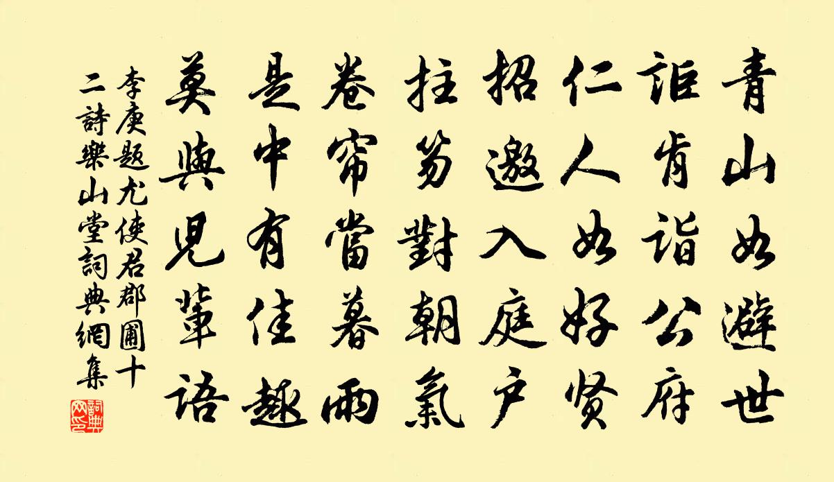 詩詞名句歷史字典書法欣賞書法字典國語詞典說文解字康熙字典古漢語字典標 題 作 者 詩 句 題尤使君郡圃十二詩樂山堂作者:李庚 朝代:宋代題尤使君郡圃十二詩樂山堂原文青山如避世,詎肯詣公府。仁人如好賢,招邀入庭戶。拄笏對朝氣,捲簾當暮雨。是中有佳趣,莫與兒輩語。詩詞問答問:題尤使君郡圃十二詩樂山堂的作者是誰?答:李庚問:題尤使君郡圃十二詩樂山堂寫於哪個朝代?答:宋代李庚題尤使君郡圃十二詩樂山堂書法欣賞題尤使君郡圃十二詩樂山堂書法作品詩詞推薦玉環山曾覿〔宋代〕天寶胡塵暗兩京,禍從妃子笑中生。玉環兩字真堪恨,好與青山別改名。晚步湖堤陸游〔宋代〕絁裘桐帽野人裝,又上湖堤步夕陽。貧甚不為明日計,興來猶作少年狂。殘樽倒酒無餘瀝,幽圃尋梅認暗香。時有歲暮即事寄子由先生張耒〔宋代〕歲暮淮陽客,貧閒兩有餘。朝昏面壁坐,風雪閉門居。老去深依佛,年衰更嗜書。未能忘素業,聊用慰窮途。下里頌古二十首釋道顏〔宋代〕因我得禮你,窮源須到底。九九八十一,閻羅王是鬼。頌古釋慧空〔宋代〕不是風兮不是幡,祖師端的廣南蠻。夜深趁得曹溪渡,失卻番禺兩岸山。送友人棄官游江左賈島〔唐代〕羨君休作尉,萬事且全身。寰海多虞日,江湖獨往人。姓名何處變,鷗鳥幾時親。別後吳中使,應須訪子真。沁園春(官滿作)雷應春〔宋代〕問訊故園,今如之何,還勝昔無。想舊耘蘭惠,依然蔥蒨,新栽楊柳,亦已扶疏。韭本千畦,芋根一畝,雨老煙荒次韻諸公清樾軒詩陳造〔宋代〕塵中望青山,防有移文阻。誦君清樾篇,頓忘三伏暑。想見松風底,樹羽仍設虡。山靈莫逆友,獻豈煩縞紵。招隱鳴峰岩黃岩孫〔宋代〕卓道當年愛此峰,直於頂上駐禪筇。岩深疑有仙人宅,地僻全無俗客蹤。罅石引泉圍古屋,斷煙拖露滴寒松。夜來寒拾贊釋道璨〔宋代〕蒼崖鎖寒色,題目分明極。無端書兩字,劃地失平仄。颺卻筆,放卻墨,一句瞭然超百億。昔陳北山趙南塘二老各有觀物十詠筆力高妙暮劉克莊〔宋代〕占斷十分清,飛來一點輕。死還為腐草,生怕傍長檠。扇撲隨風遠,囊盛徹夜明。藜燈與蓮炬,不似爾多情。渚宮觀梅寄康侯楊時〔宋代〕欲驅殘臘變春風,只有寒梅作選鋒。莫把疏英輕斗雪,好藏清艷月明中。京口陸龜蒙〔唐代〕江乾古渡傷離情,斷山零落春潮平。東風料峭客帆遠,落葉夕陽天際明。戰舸昔浮千騎去,釣舟今載一翁輕。可憐滿江紅趙希蓬〔宋代〕乾結青銅,根走石、參天古柏。最好是、蒼陰不怕,火雲如血。雪裡直疑神物護,雨餘任待霜皮濕。但只愁、澗底登城五首劉克莊〔宋代〕漫費人蒸土,常如物潰堤。傍疑為息壤,下恐有蟠泥。題凌歊台莊革〔宋代〕姑孰溪邊霜葉飛,凌歊台上暮雲歸。謫仙一去不復返,悵望青山空翠微。荔枝四首曾鞏〔宋代〕絳縠囊收白露團,未曾封植向長安。昭陽殿里才聞得,已道佳人不奈寒。少年李商隱〔唐代〕外戚平羌第一功,生年二十有重封。直登宣室螭頭上,橫過甘泉豹尾中。別館覺來雲雨夢,後門歸去蕙蘭叢。灞陵春間小詩書趙壁追錄之朱槔〔宋代〕自得春風信,開懷待此花。余寒固艱棘,今夕雪斜斜。沁園春 三教一理王玠〔元代〕道曰性金丹,儒性曰太極,性釋曰玄珠性。矧三教之道,本來同祖,心存至德,性悟真如。闔*辟機關,抽添運用名句推薦開荒南野際,守拙歸園田。陶淵明《歸園田居·其一》 雲無心以出岫,鳥倦飛而知還。陶淵明《歸去來兮辭·並序》 霜輕未殺萋萋草,日暖初乾漠漠沙。白居易《早冬》 馬作的盧飛快,弓如霹靂弦驚。辛棄疾《破陣子·為陳同甫賦壯詞以寄之》 戰陣之間,不厭詐偽。韓非及後人《韓非子·難一》 只要你見性志誠,念念回首處,即是靈山。吳承恩《西遊記·第二十四回》 楊柳散和風,青山澹吾慮。韋應物《東郊》 兩情若是久長時,又豈在朝朝暮暮。秦觀《鵲橋仙·纖雲弄巧》 桃根桃葉終相守,伴殷勤、雙宿鴛鴦。納蘭性德《一叢花·詠並蒂蓮》 綠葉陰濃,遍池亭水閣,偏趁涼多。元好問《驟雨打新荷》