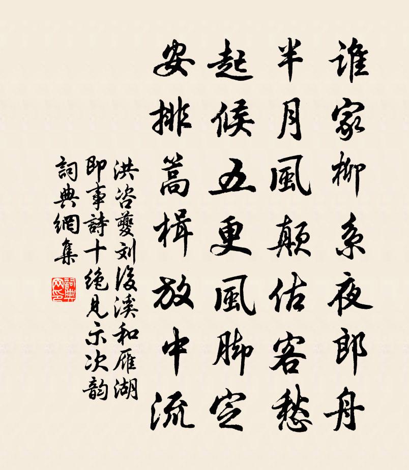詩詞名句歷史字典書法欣賞書法字典國語詞典說文解字康熙字典古漢語字典標 題 作 者 詩 句 劉後溪和雁湖即事詩十絕見示次韻作者:洪咨夔 朝代:宋代原文誰家柳系夜郎舟,半月風顛估客愁。起候五更風腳定,安排篙楫放中流。詩詞問答問:《劉後溪和雁湖即事詩十絕見示次韻》的作者是誰?答:洪咨夔問:該詩寫於哪個朝代?答:宋代書法欣賞劉後溪和雁湖即事詩十絕見示次韻書法作品詩詞推薦灼艾方岳〔宋代〕人生不滿百,憂患況中年。藜莧工為崇,參苓那得錢。不虞波及晉,聊復火攻燕。一笑遭秦厄,殘書累腹便。送王伯初學士赴北京機宜邵雍〔宋代〕丈夫志氣蓋棺定,自有雄圖系重輕。去路不能無感舊,到官爭忍便忘情。閒時語話貴精密,先事經營在太平。誰謂登錦城散花樓李白〔唐代〕日照錦城頭,朝光散花樓。金窗夾繡戶,珠箔懸銀鉤。飛梯綠雲中,極目散我憂。暮雨向三峽,春江繞雙流。今來猗蘭秋思三首方回〔宋代〕猗蘭奕葉曉疏晴,栩栩秋光小蝶輕。皂翅繡花三五點,庾郎無句畫難成。十二月二十六日趙蕃〔宋代〕水有縈紆何自來,竹能森爽為誰栽。山僧乞飯朝一出,幽子題詩日幾廻。故鶴未妨頻有客,騎驢正爾獨尋梅。得閒雲邊即事劉宰〔宋代〕山鳥紛紛不計名,曉來聒聒弄新晴。山人不識虞庭樂,疑是簫韶秦九成。題素庵壁間六首艾性夫〔宋代〕霜崖白石髓,火鼎黃金芽。生疏不入夢,飽飯煎江茶。喜遷鶯沈端節〔宋代〕冰池輕皺。喜寒律乍回,微陽初透。歲晚雲黃,日晴煙暖,晝刻暗添宮漏。山色岸容都變,春意欲傳官柳。最好處和陽秀才惠詩七絕杜范〔宋代〕半菽生涯志九霄,詩篇妙處壓劉曹。朵頤鐘鼎人都錯,自有靈龜價最高。頌古七首釋道謙〔宋代〕四個沒意智漢,做處總無畔岸。一狀領過階前,與伊據款結案。綺寮怨(和兒韻)趙功可〔宋代〕忽忽東風又老,冷雲吹晚陰。疏簾下、茶鼎孤煙,斷橋外,梅豆千林。江南庚郎憔悴,睡未醒、病酒愁怎禁。倚闌慈谿龍虎軒偶成呂祖儉〔宋代〕仙都石筍似天成,鳧水松龍是弟兄。走遍遊人與行客,未知誰可寄深情。和鮑守次韻林德祖十四首傅察〔宋代〕九萬鵬程舉翮輕,蚤年高譽滿江亭。曾分蘭省趨墀赤,行從荷囊拜瑣青。雅度最宜鏘玉佩,精忠不用綠沈屏。欲令感昔侯懷風〔清代〕黃河水流響潺潺,當日腥風戰血殷。大地盡拋金鎖甲,長星亂落玉門關。居延蔓草縈枯骨,太液芙蓉失舊顏。成敗寄會稽丞趙振道孔武仲〔宋代〕龜峰琬琰翠成堆,軒檻前當秀色開。此地登臨比圖畫,與君談笑繼樽罍。傳聞佳景無時乏,依舊清江不斷來。今日句張載〔宋代〕叵要居仁宅,先須入禮門。暑詠寄梅集賢楊億〔宋代〕點綴鮮雲紫宙寬,微風淅淅起霜紈。魏台清暑開冰井,漢殿延年啜露盤。天外一飛期汗漫,水邊千畝憶檀樂。流波夢仙圖唐寅〔明代〕池塘春漲碧溶溶,醉臥香塵淺草中。一夢熟時鷗作伴,錦衾何必抱輕紅。湖州歌九十八首 其九十二汪元量〔宋代〕四川昝帥尚粗豪,萬馬來燕貢一遭。奏授虎符三百面,內家更賜織金袍。望月懷友(一作寄人)李群玉〔唐代〕浮雲卷盡看朣朧,直出滄溟上碧空。盈手水光寒不濕,流天素彩靜無風。酒花蕩漾金尊里,棹影飄颻玉浪中。川路名句推薦青山朝別暮還見,嘶馬出門思舊鄉。李頎《送陳章甫》 故勢不便,非所以逞能也。韓非及後人《韓非子·說林下》 登泰山而小天下。孟子《孟子·盡心章句上·第二十四節》 不入虎穴,焉得虎子。程登吉《幼學瓊林·卷四·鳥獸》 大直若屈,大巧若拙,大辯若訥。老子《老子·德經·第四十五章》 疏籬下、試覓重陽,醉擘青露菊。吳文英《一寸金·秋感》 小娃撐小艇,偷采白蓮回。白居易《池上》 野客預知農事好,三冬瑞雪未全消。戴復古《除夜》 三載重陽菊,開時不在家。文森《九日》 瞻彼洛城郭,微子為哀傷。曹操《薤露行》