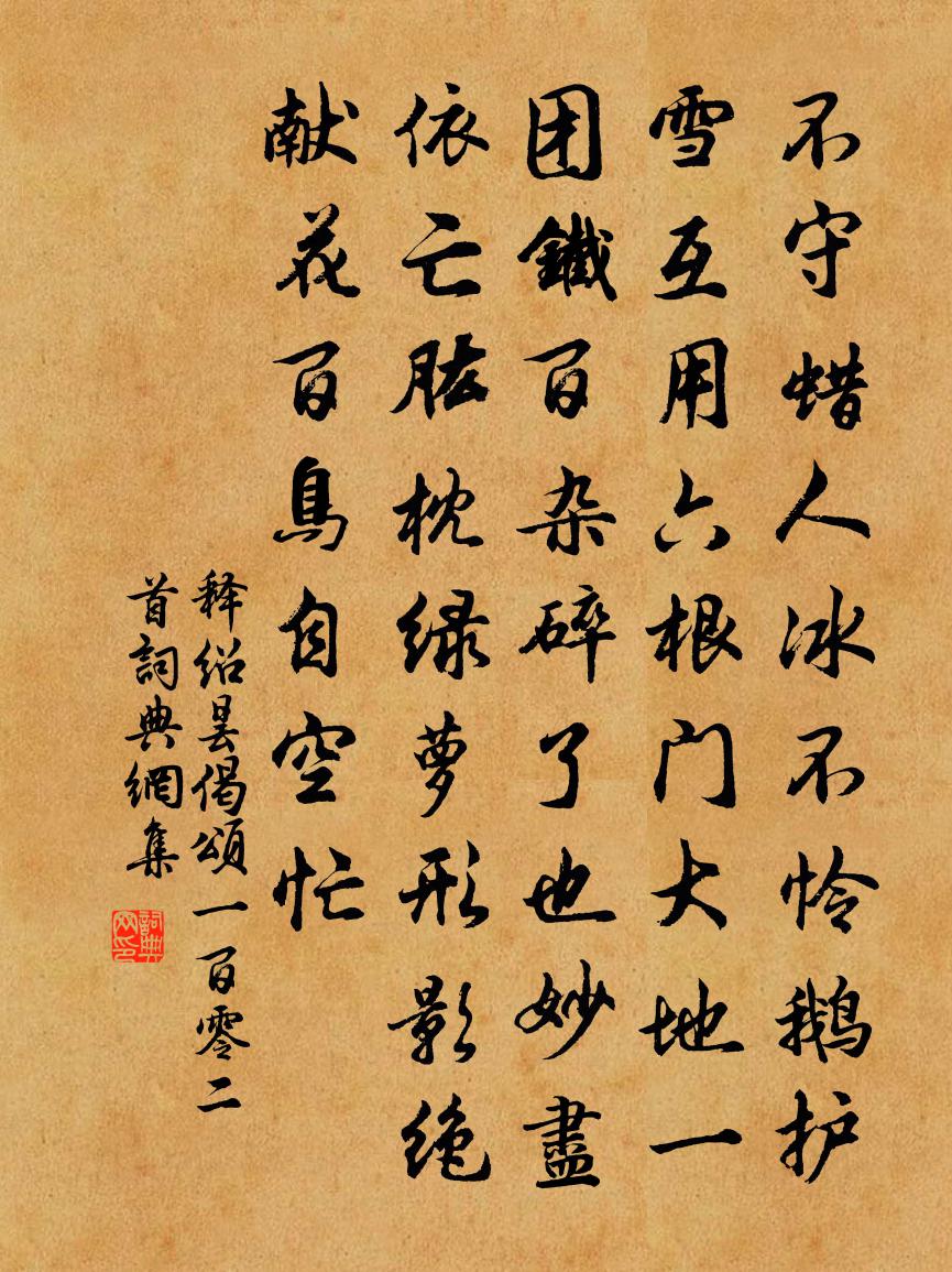 詩詞名句歷史字典書法欣賞書法字典國語詞典說文解字康熙字典古漢語字典標 題 作 者 詩 句 偈頌一百零二首作者:釋紹曇 朝代:宋代偈頌一百零二首原文不守蠟人冰,不憐鵝護雪。互用六根門,大地一團鐵。百雜碎了也,妙盡依亡。肱枕綠蘿形影絕,獻花百鳥自空忙。詩詞問答問:偈頌一百零二首的作者是誰?答:釋紹曇問:偈頌一百零二首寫於哪個朝代?答:宋代釋紹曇偈頌一百零二首書法欣賞偈頌一百零二首書法作品詩詞推薦贈天僧晁說之〔宋代〕驅馳疲朔馬,邂逅見吳僧。便覺秋容淨,彌憐客恨澄。青山尋舊賞,白社語新燈。他日扁舟去,儂家一笑能。聽薛陽陶吹蘆管張祜〔唐代〕紫清人下薛陽陶,末曲新笳調更高。無奈一聲天外絕,百年已死斷腸刀。望岳時賊據華夏唐彥謙〔唐代〕長路風埃隔楚氛,忽驚神岳映朝曛。削成絕壁五千仞,高揖泥金七十君。祝史秘辭今莫睹,從臣嘉頌久無聞。幽人上清喻良能〔宋代〕積雨新晴翠靄浮,好風掖我上清游。白頭捧檄真聊爾,那忍深文學杜周。戲贈趙天樂薛師石〔宋代〕問隱當時意已深,近來全廢是清吟。一春祗為風雷變,盡日閒觀天地心。聞道丹爐初候火,能教瓦礫化成金。果然自嘲用前韻陸游〔宋代〕殘年過六十,寂寞臥山中。病眼驚新暗,衰顏失舊紅。人譏作詩瘦,自憫著書窮。輸與封侯骨,雲台競策功。同安權縣林丞和餘二首趁韻答之劉克莊〔宋代〕雖與尊公甲子同,懸鶉久矣愧華蟲。程仇不□□□魏,王貢安能勝鮑龔。時有放歌吟屋破,且無□□□途窮。故山寄懷江西棲公齊己〔唐代〕龍沙為別日,廬阜得書年。不見來香社,相思繞白蓮。江僧歸海寺,楚路接吳煙。老病何堪說,扶羸寄此篇。癸丑七夕陸游〔宋代〕風露中庭十丈寬,天河仰視白漫漫。難尋仙客乘槎路,且伴吾兒乞巧盤。秋早時聞桐葉墜,夜涼已怯紵衣單。民無緣識宋太宗〔宋代〕妙道藏真世莫臧,勿言聖事似尋常。眼前不見非常境,別有三天照十方。句釋允堪〔宋代〕始生岩谷畔,早有月中香。失調名佚名〔宋代〕燈球兒小,鬧蛾兒顫。又何須頭面。和虞滄江梅花四絕句程公許〔宋代〕園林春到杳無蹤,恰似靈犀一點通。勝著新題問花信,從頭二十四番風。和董顯之留西湖韻袁說友〔宋代〕開門喜得故人音,訪我浮生一旅亭。老大區區驚歲月,功名落落負簪纓。有誰知己頭空白,舉世如君眼獨青。羨子次韻廷秀待制寄題李紀風月無邊樓周必大〔宋代〕尺壁之珍城價買,寸金之土連郭外。豈知風月不論錢,誰主誰賓眼為界。斯樓廣大由心胸,應有嘉客傾坐中。厭厭浣溪沙(有感)王質〔宋代〕細雨蕭蕭變作秋。晚風楊柳冷颼颼。無言有淚灑西樓。眼共雲山昏慘慘,心隨煙水去悠悠。一蓑一笠任孤舟。暮投葛墟馬上賀鑄〔宋代〕旬浹走千里,塵埃如有緣。慙無季子印,可換洛陽田。廣澤雁行去,荒山雨腳懸。長亭猶未見,疲馬不勝鞭。雜體詩 陳思王曹植贈友江淹〔南北朝〕君王布禮英賢布。不悋布千金璧。雙闕指馳道。朱布羅第宅。從容冰井台。清池映華薄。涼風盪芳氣。碧樹先秋落宴金壇邑官致語口號劉宰〔宋代〕百里兒童沸誦聲,湖山堂上集群英。德星欲應今宵瑞,霖雨先開昨夜晴。正是壺中銀漏永,不妨坐上玉山傾。明年寄嵩陽隱者李鹹用〔唐代〕昔年江上別,初入亂離中。我住匡山北,君之少室東。信來經險道,詩半憶皇風。何事猶高臥,岩邊夢未通。名句推薦歲夜高堂列明燭,美酒一杯聲一曲。李頎《聽安萬善吹觱篥歌》 千尺陰崖塵不到,惟有層冰積雪。辛棄疾《賀新郎·用前韻送杜叔高》 家貧思良妻,國亂思良相。司馬光《資治通鑑·周紀·周紀一》 露從今夜白,月是故鄉明。杜甫《月夜憶舍弟》 得忍且忍,得耐且耐,不忍不耐,小事成災。佚名《增廣賢文·上集》 可堪孤館閉春寒,杜鵑聲里斜陽暮。秦觀《踏莎行·郴州旅舍》 搖落深知宋玉悲,風流儒雅亦吾師。杜甫《詠懷古蹟五首·其二》 佇立傷神。無奈輕寒著摸人。朱淑真《減字木蘭花·春怨》 有桃花紅,李花白,菜花黃。秦觀《行香子·樹繞村莊》 餘霞散成綺,澄江靜如練。謝朓《晚登三山還望京邑》
