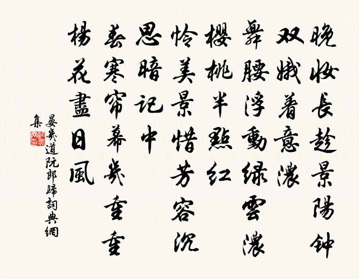 晚妝長趁景陽鍾,雙娥著意濃。舞腰浮動綠雲濃,櫻桃半點紅。