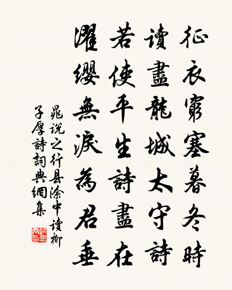 詩詞名句歷史字典書法欣賞書法字典國語詞典說文解字康熙字典古漢語字典標 題 作 者 詩 句 行縣塗中讀柳子厚詩作者:晁說之 朝代:宋代行縣塗中讀柳子厚詩原文征衣窮塞暮冬時,讀盡龍城太守詩。若使平生詩盡在,濯纓無淚為君垂。詩詞問答問:行縣塗中讀柳子厚詩的作者是誰?答:晁說之問:行縣塗中讀柳子厚詩寫於哪個朝代?答:宋代晁說之行縣塗中讀柳子厚詩書法欣賞行縣塗中讀柳子厚詩書法作品詩詞推薦喜遷鶯(上巳游涵碧)曹冠〔宋代〕艷陽時序。向祓禊芳辰,登臨仙府。碧水澄虛,修篁聳翠,夾徑蕙蘭香吐。春晚巧鶯聲碎,風卷飛紅無數。凝望處思歸八絕胡寅〔宋代〕傳家素業祗圖書,永日沉涵樂有餘。方信此心無所著,山林鐘鼎一蘧廬。巫山一段雲 山市晴嵐李齊賢〔元代〕遠岫螺千點,長溪玉一圍。日高山店未開扉。嵐翠落殘霏。隱隱樓台遠,蒙蒙草樹微。市橋曾記買魚歸。一望卻疑解嘲十絕呈浩西堂釋紹嵩〔宋代〕不知經世意如何,轉看人情敗意多。賴有好山供客眼,此生吾亦未蹉跎。長相思 一徐陵〔南北朝〕長相思。望歸難。傳聞奉詔戍皋蘭。龍城遠。鴈門寒。愁來瘦轉劇。衣帶自然寬。念君今不見。誰為抱腰看。崇仙觀吳鎰〔宋代〕人生塵土不可耐,天上高寒定自嘉。但約 * 擘麟脯,莫尋句漏問丹砂。故人亭黃彥平〔宋代〕寒里花開晚,霜餘葉落深。雲天迷遠望,山水費登臨。瑟鼓英皇怨,沙沉屈賈心。高名前後事,苦調短長吟。再和歐陽修〔宋代〕佳翫能令百事忘,豈惟閒伴倒余缸。珍奇來自海千里,皎潔明如璧一雙。日暖朝籠青石砌,春寒夜宿碧紗窗。蠻煙題四畫牟巘五〔宋代〕天氣融和凍已開,桃花浪暖亦佳哉。人生辦取東尉,底用一雙鸂鶒來。次韻答菊莊湯伯起武衍〔宋代〕數弓蔬地一方池,吾愛吾廬只自知。蘆碧補交楊柳缺,檉紅攙上藕花遲。翠陰圍合疑無日,涼意蕭騷剩有詩。君欲寧宗郊前朝獻景靈宮二十四首真宗〔宋代〕禮文有俶,祀事孔明。將以潔告,允惟齊精。自興而往,聿觀厥成。靈監下臨,天德其清。山居詩釋延壽〔宋代〕高才寵略敢凌雲,世上浮名夢裡身。蘇氏謾稱降六國,韓公休說捲三秦。當朝雖立千年事,古廟唯存一聚塵。畢竟小閣戲書文同〔宋代〕閒揭新刊集,時裝舊窨香。還如到茂灌,無物在床旁。次韻子瞻招隱亭蘇轍〔宋代〕隱居吾未暇,何暇勸夫人。試飲此亭酒,自慚纓上塵。林深開翠帟,岸斷峻嚴闉。送雪村酤釅,迎陽鳥哢新。竹風蜀茗詞施肩吾〔唐代〕越碗初盛蜀茗新,薄煙輕處攪來勻。山僧問我將何比,欲道瓊漿卻畏嗔。故右散騎常侍舒國公褚公輓詞蘇頲〔唐代〕陽翟疏豐構,臨平演慶源。學筵尊授幾,儒服寵乘軒。審諭留中密,開陳與上言。徂暉一不借,空有賜東園。師廷珍以詩見惠因用其韻晁公溯〔宋代〕詩禮初聞衛尉旁,起家期擅蜀文章。快吟芍藥當階句,剩香芙蓉別殿香。小重山(四之二)賀鑄〔宋代〕簾影新妝一破顏。玳筵回雪舞,小雲鬟。瓊枝擢秀望難攀。凝情處,千里望蓬山。歌斷酒闌珊。畫船簫鼓轉,綠楊六十二吟邵雍〔宋代〕行年六十二康強,況復身居永熟鄉。美景良胡非易得,淺斟低唱又何妨。無涯歲月難拘管,有限形骸莫毀傷。多少又用前韻二首林季仲〔宋代〕遺蹟榛蕪四十年,使君跋馬獨依然。要將舊觀還騷客,幻出新亭倚半天。井邑參差圖障里,煙霞明滅酒尊前。我今名句推薦士有妒友,則賢交不親。荀子《荀子·大略》 寒蟬淒切,對長亭晚,驟雨初歇。柳永《雨霖鈴·寒蟬淒切》 一朝哭都市,淚盡歸田畝。元結《農臣怨》 錦江春色來天地,玉壘浮雲變古今。杜甫《登樓》 紅葉滿寒溪,一路空山萬木齊。納蘭性德《南鄉子·秋暮村居》 念月榭攜手,露橋聞笛。周邦彥《蘭陵王·柳》 挫其銳,解其紛,和其光,同其塵。湛兮,似或存。老子《老子·道經·第四章》 人間四月芳菲盡,山寺桃花始盛開。白居易《大林寺桃花》 禮以行義,義以生利,利以平民,政之大節也。左丘明《左傳·成公·成公二年》 荒城臨古渡,落日滿秋山。王維《歸嵩山作》