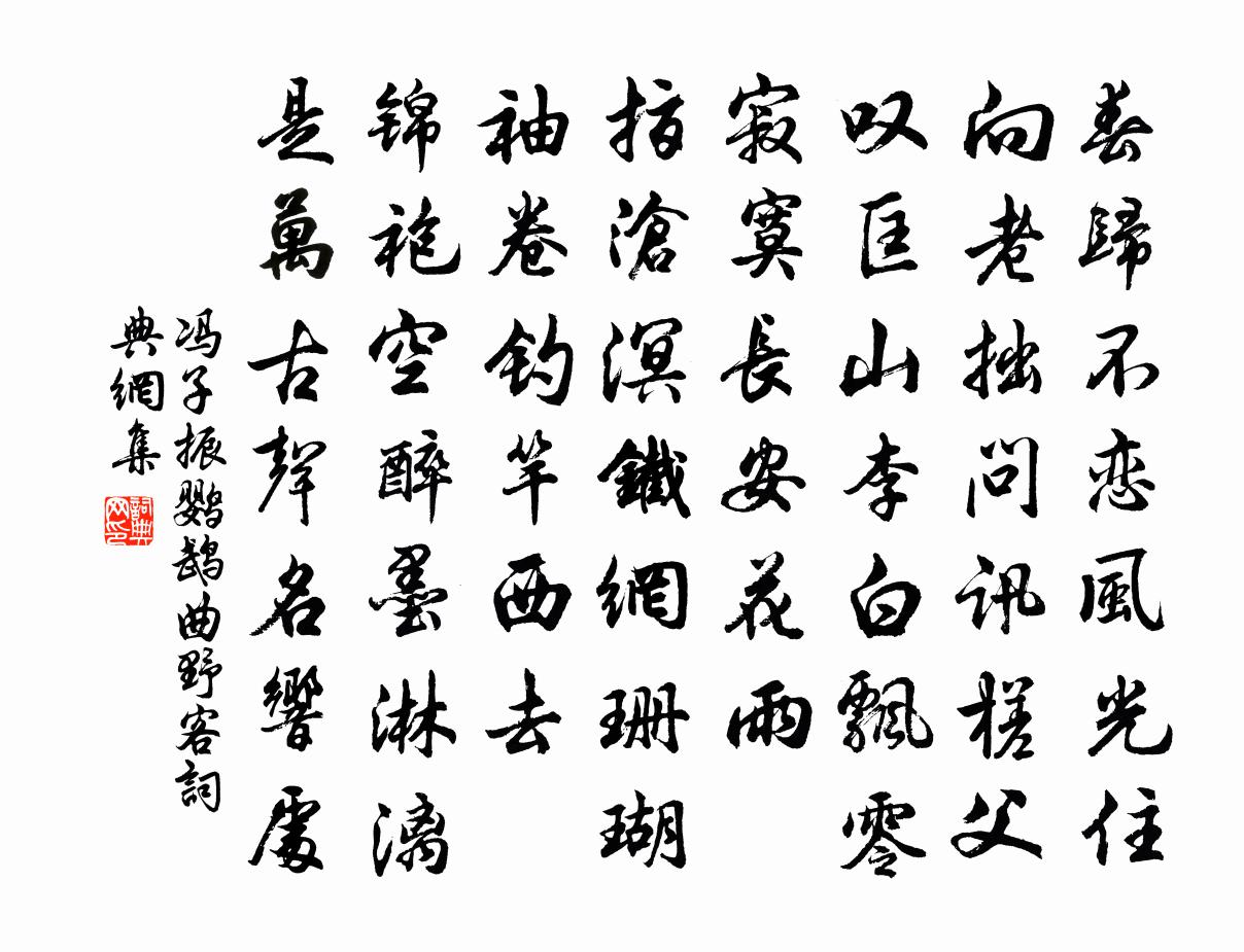 詩詞名句歷史字典書法欣賞書法字典國語詞典說文解字康熙字典古漢語字典標 題 作 者 詩 句 鸚鵡曲 野客作者:馮子振 朝代:元代鸚鵡曲 野客原文春歸不戀風光住。向老拙問訊槎父。嘆匡山李白飄零,寂寞長安花雨。指滄溟鐵網珊瑚,袖卷釣竿西去。錦袍空醉墨淋漓,是萬古聲名響處。詩詞問答問:鸚鵡曲 野客的作者是誰?答:馮子振問:鸚鵡曲 野客寫於哪個朝代?答:元代問:鸚鵡曲 野客是什麼體裁?答:詞馮子振鸚鵡曲 野客書法欣賞鸚鵡曲 野客書法作品詩詞推薦宋中遇劉書記有別高適〔唐代〕何代無秀士,高門生此才。森然睹毛髮,若見河山來。幾載困常調,一朝時運催。白身謁明主,待詔登雲台。相逢暑中閒詠六首方回〔宋代〕謂我無憂者,其誰會此心。乾坤今古事,歲月短長吟。井冷增瓜味,軒晴表樹陰。樽中適有酒,聊與客同斟。次韻陳叔易遠別離三首蘇籀〔宋代〕婦慧弗諳事,謂世無離索。洋洋舊依蒲,逐逐難翳藿。衝風遞弱羽,爛漫何鄉落。憂端埒南山,那堪魯酒薄。人力【雙調】沉醉東風 宮詞孫周卿〔元代〕雙拂黛停分翠羽,一窩雲半吐犀梳。寶靨香,羅襦素,海棠嬌睡起誰扶?腸斷春風倦繡圖,生怕見紗窗唾縷。花月泊黃茅潭董嗣杲〔宋代〕唳雪滄洲雁,噓雲碧浪鯨。茅深淮渡遠,日落海潮平。廟樹搖燈影,船風送鼓聲。勞思於此泊,無地趁春耕。剔銀燈關注〔宋代〕小院煙涼雨細。正好懨懨春睡。驀被金枝,連推繡枕,報導皇都書至。良人得意。集英殿、首攀仙桂。斗帳重襟驚次韻王性之梅花釋仲皎〔宋代〕春到寒林雪得知,雪中誰解認芳姿。溪山飛上一輪月,香滿風前獨立時。方水滴子万俟紹之〔宋代〕質由良冶就,心向主人傾。外倣片金制,中藏勺水清。兔毫芳露染,龍尾濕雲生。終令雙眸炯,曾窺妙女成。平城下李賀〔唐代〕饑寒平城下,夜夜守明月。別劍無玉花,海風斷鬢髮。塞長連白空,遙見漢旗紅。青帳吹短笛,煙霧濕畫龍。日晚與道士馮德之話別潘閬〔宋代〕一宿山房話別離,殷勤勸我酒盈卮。更教弟子橫琴送,彈徹悲風盡淚垂。從貫道求雙幅圖吳則禮〔宋代〕東郎平生筆五色,戲遣秀句為奇石。好絹自作凌亂光,萬里須論才咫尺。大兒小兒何足夸,右丞北苑有等差。孤舟偈頌一百五十首釋心月〔宋代〕寰中天子勑,塞外將軍令。佛祖出頭,也須乞命。今日合作麽生,將逐符行。題釣台何宗斗〔宋代〕貧賦漁蓑卻耐交,故人牽率政徒勞。十分拂袖歸來是,何似當時莫去高。郊野趙葵〔宋代〕白烏衡煙雲,山僧渡水來。竹籬茅舍外,忽見野梅開。鄰翁以紫石斛承粗山一塊為予書室這奉斛蓋端鄭剛中〔宋代〕見山不見理,真假析為二。看假作真山,細大豈殊致。鄰翁憐索居,奉我石一塊。嵌空會短小,枯澀少堅膩。承以上夾谷書隱先生六首何夢桂〔宋代〕堪輿渺與極,俯仰慨古初。皇風戰涿鹿,草野傷血塗。動華襲文明,不肯私均朱。誓命纘王業,侵伐紛霸圖。春秋鷓鴣天·建康上元作趙鼎〔宋代〕客路那知歲序移。忽驚春到小桃枝。天涯海角悲涼地,記得當年全盛時。花弄影,月流輝。水精宮殿五雲飛。分明再用韻賀計使高恥堂建台得雨趙汝騰〔宋代〕皇華都騎訪陳人,似灑仙瓢助守臣。亭午建台申大雨,作霖用汝澤先閩。物情是處皆忻吐,吏羽從今一洗新。陝事寄彭澤後人釋斯植〔宋代〕不為折腰事,田園足野情。筆粘春霧重,詩帶晚唐清。柳巷閒漁艇,山扉對水城。論心暫來往,無愧遠公名。詠梅五十首呈史尚書釋紹嵩〔宋代〕積翠千層一徑開,籃輿歇處見株梅。為君繞樹須千匝,漫使詩腸日九回。名句推薦形在江海之上,心存魏闕之下劉勰《文心雕龍·神思》 義膽包天,忠肝蓋地,四海無人識。施耐庵《念奴嬌·天南地北》 匈奴草黃馬正肥,金山西見煙塵飛,漢家大將西出師。岑參《走馬川行奉送出師西征 / 走馬川行奉送封大夫出師西征》 日中則移,月滿則虧。劉向《戰國策·秦三·蔡澤見逐於趙》 不在其位,不謀其政。孔子弟子《論語·泰伯篇》 雖萬被戮,豈有悔哉!班固《漢書·傳·司馬遷傳》 下馬飲君酒,問君何所之?王維《送別》 綠遍山原白滿川,子規聲里雨如煙。翁卷《鄉村四月》 楊花榆莢無才思,惟解漫天作雪飛。韓愈《晚春》 大江東去,浪淘盡,千古風流人物。蘇軾《念奴嬌·赤壁懷古》