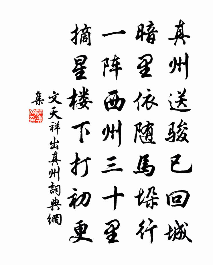 真州送駿已回城,暗裡依隨馬垛行。一陣西州三十里,摘星樓下打初更。