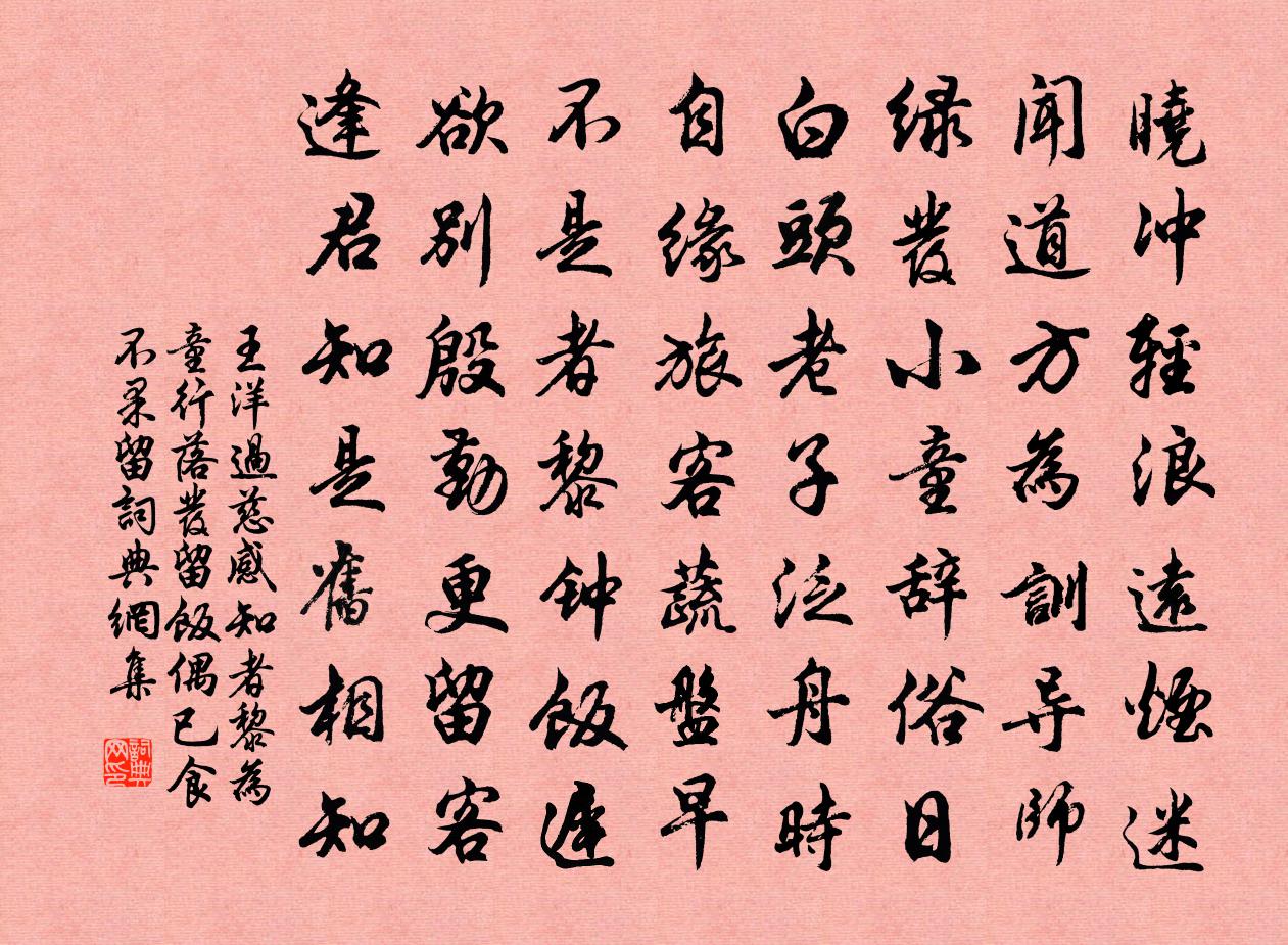 - 半溪流水綠,千樹落花紅。車萬育《聲律啟蒙·上卷·一 東》