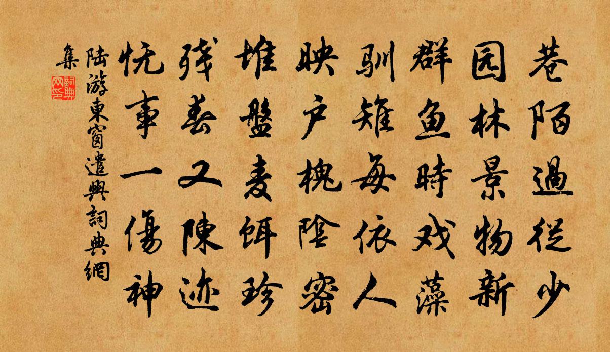 巷陌過從少,園林景物新。群魚時戲藻,馴雉每依人。