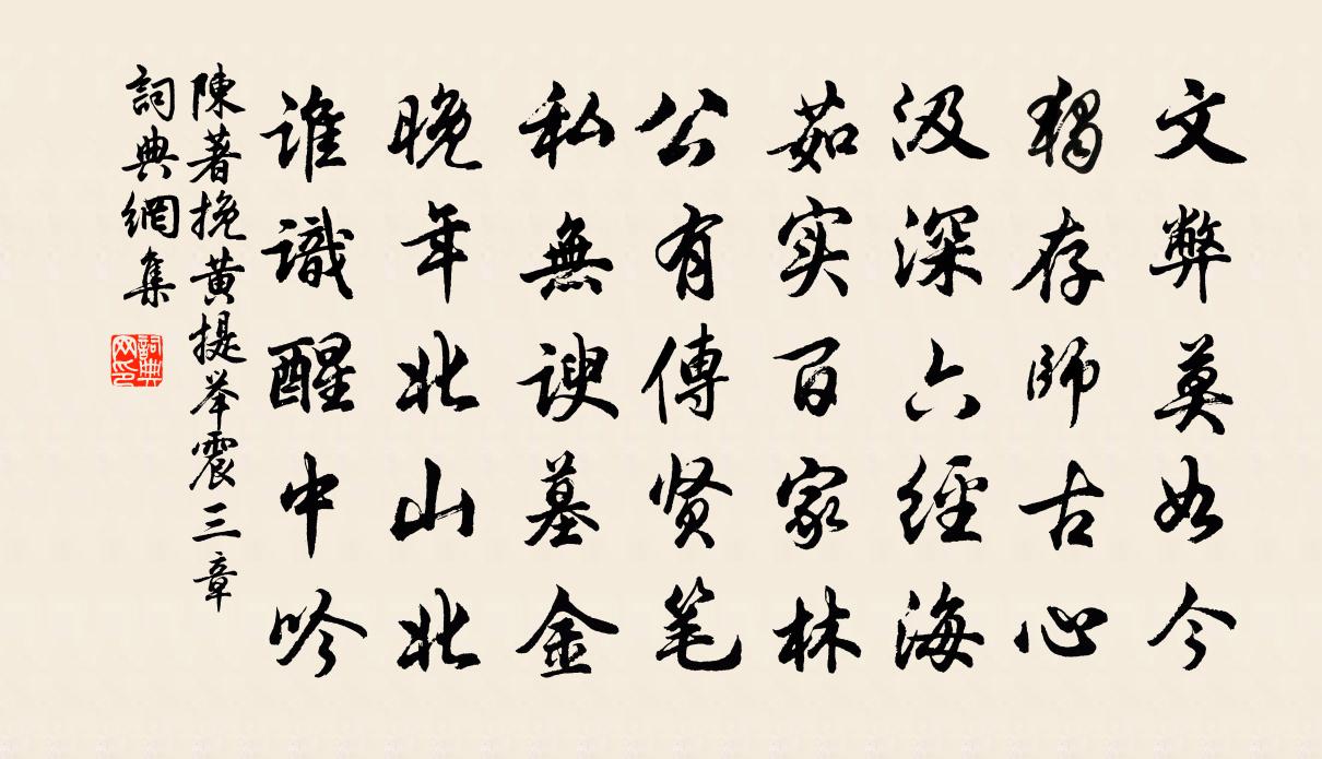 詩詞名句歷史字典書法欣賞書法字典國語詞典說文解字康熙字典古漢語字典標 題 作 者 詩 句 挽黃提舉震三章作者:陳著 朝代:宋代挽黃提舉震三章原文文弊莫如今,獨存師古心。汲深六經海,茹實百家林。公有傳賢筆,私無諛墓金。晚年北山北,誰識醒中吟。詩詞問答問:挽黃提舉震三章的作者是誰?答:陳著問:挽黃提舉震三章寫於哪個朝代?答:宋代陳著挽黃提舉震三章書法欣賞挽黃提舉震三章書法作品詩詞推薦偈頌一百六十首釋宗杲〔宋代〕黃龍此語蓋天地,從來縝密不通風。後昆隨例承其響,總道貓兒解捉蟲。游西湖分韻得棲字李壁〔宋代〕深居獨痴坐,愁聽鵯鴂啼。起尋塵外游,綠陰已連畦。撐舟泛湖去,萬頃青玻瓈。天風振雲杪,飛步凌丹梯。同游觀濤鄭獬〔宋代〕怒濤沃日為之陰,下有蛟龍不測深。若比人間惡風浪,長江風浪本無心。寄李十四員外布十二韻杜甫〔唐代〕名參漢望苑,職述景題輿。巫峽將之郡,荊門好附書。遠行無自苦,內熱比何如。正是炎天闊,那堪野館疏。黃牛臨濟贊釋師範〔宋代〕善戰不動旗鑰,善縛不加繩約。其毒猶恆山之蛇,被傷者決定無藥。簡瑄上人裘萬頃〔宋代〕千里歸來覓故林,朱弦雖在少知音。青風玉幾山前路,忍負平生一片心。魚遊春水張元乾〔宋代〕芳洲生苹芷。宿雨收晴浮暖翠。煙光如洗,幾片段預告飛點淚。清鏡空餘白髮添,新恨誰傳紅綾寄。溪漲岸痕,浪吞沙雜詩二十七首曹勛〔宋代〕佛頭山下雨隨風,倒海翻江一餉中。徙倚欄乾便晴霽,湖光渺渺夕陽紅。宿羲丘橋陳宓〔宋代〕月窗頻誤曉,風潤更迷晴。蚤欲載星上,翻成踏雨行。奇峰才一面,古佛尚餘情。我亦愛閒者,它年尋此盟。遊仙詞三十三首王鎡〔宋代〕靈液長流滿地香,洞中多是散仙房。金爐煮就金精汁,欲獻元君未敢嘗。相國寺啟向天節道場行香院觀戲者王安石〔宋代〕侏優戲場中,一貴復一賤。心知本自同,所以無欣怨。偈釋義懷〔宋代〕紅日照扶桑,寒雪對華岳。三更過鐵圍,拶折驪龍角。端午感興文天祥〔宋代〕當年忠血墮讒波,千古荊人祭汨羅。風雨天涯芳草夢,江山如此故都何。醉落魄/一斛珠侯置〔宋代〕梅花似雪。雪花卻似梅清絕。小窗低映梅梢月。常記良宵,吹酒共攀折。如今客里都休說。瀟瀟灑灑情懷別。夜闌次韻司封使君和程給事朱長文〔唐代〕涌波是上幾鞦韆,花接遙山柳接天。故里松楸沾雨露,神都池苑隔雲煙。耕桑交勸紅塵外,羅綺分游畫舫邊。暫歇春深三首蘇轍〔宋代〕小園松竹有清陰,懶病從茲日益深。醉客漢堂慚北海,野僧同社憶東林。逢人問道空長嘯,久客思歸尚越吟。三十經嚴子陵釣台作四首龐籍〔宋代〕翠岫臨寒瀨,先生老此中。釣耕輕萬乘,要領戒三公。入宿星躔動,歸來世網空。何人知此意,千古激澆風。送韓六玉汝宰錢塘梅堯臣〔宋代〕頃尋高士廬,正值浸湖雪。雪中千萬峰,參差縣前列。僧居或隱見,岸樹隨曲折。驚鳧如避人,遠向寒煙滅。潛希竹所睡起偶成書呈謝守之錢時〔宋代〕萬竹中通兩牖虛,紅塵炎暑不關渠。幽人日用底難辦,一榻午風清有餘。夜遊宮毛滂〔宋代〕峰,因德後歸,以此語鶴,便知仆居此不落寞也長記勞君送遠。柳煙重、桃花波暖。花外溪城望不見。古槐邊,故名句推薦龜游蓮葉上,鳥宿蘆花里。李白《姑孰十詠》 重到故鄉交舊少,淒涼。卻恐它鄉勝故鄉。陸游《南鄉子·歸夢寄吳檣》 黃花深巷,紅葉低窗,淒涼一片秋聲。蔣捷《聲聲慢·秋聲》 春眠不覺曉,處處聞啼鳥。孟浩然《春曉》 浪花有意千里雪,桃花無言一隊春。李煜《漁父·浪花有意千里雪》 高峰入雲,清流見底陶弘景《答謝中書書》 漢水東流,都洗盡、髭鬍膏血。辛棄疾《滿江紅·漢水東流》 汀洲無浪復無煙,楚客相思益渺然。劉長卿《自夏口至鸚鵡洲夕望岳陽寄源中丞》 人犯一苟字,便不能振;人犯一俗字,便不可醫。王永彬《圍爐夜話·第一二九則》 相逢意氣為君飲,系馬高樓垂柳邊。王維《少年行四首》