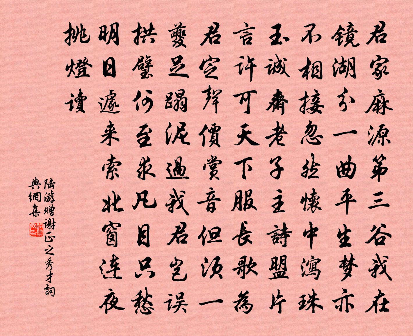 君家麻源第三谷,我在鏡湖分一曲;平生夢亦不相接,忽然懷中瀉珠玉。誠齋老子主詩盟,片言許可天下服。