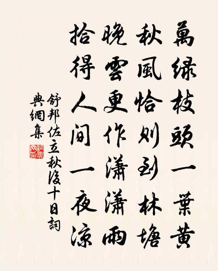 詩詞名句歷史字典書法欣賞書法字典國語詞典說文解字康熙字典古漢語字典標 題 作 者 詩 句 立秋後十日作者:舒邦佐 朝代:宋代立秋後十日原文萬綠枝頭一葉黃,秋風恰則到林塘。晚雲更作瀟瀟雨,拾得人間一夜涼。詩詞問答問:立秋後十日的作者是誰?答:舒邦佐問:立秋後十日寫於哪個朝代?答:宋代舒邦佐立秋後十日書法欣賞立秋後十日書法作品詩詞推薦長明燈羅隱〔唐代〕破暗長明世代深,煙和香氣兩沈沈。不知初點人何在,只見當年火至今。曉似紅蓮開沼面,夜如寒月鎮潭心。孤光次韻定國聞子由臥病績溪黃庭堅〔宋代〕炎洲冬無冰,十月雷虺虺。及春瘧癘行,用人祭非鬼。巫師司民命,藥石不入市。溪弩潛發機,土風甚不美。蘇子卜運算元(生朝次坐客韻呈四叔)韓淲〔宋代〕花底醉東風,好景宜同壽。海角天涯今幾春,邂逅新豐酒。內集記高陽,南渡閒回首。但願長年飽飯休,一笑風塵題南園梅摯〔宋代〕長洲茂苑占幽奇,岩榭珍台入翠微。園李露濃三色秀,徑桃煙暖一香飛。月臨夕樹烏頻繞,風揭珠簾燕未歸。弭蓋贈式上人方乾〔唐代〕縱居鼙角喧闐處,亦共雲溪邃僻同。萬慮全離方寸內,一生多在五言中。芰荷葉上難停雨,松檜枝間自有風。莫笑胡澹庵招宴余鳳〔宋代〕稱藩割地竟何如,抗疏孤臣只索居。萬死不回三寸舌,千金空募一封書。醉中益抱蒙塵恨,夢裡猶呼和議愚。長腳筠州二詠其二黃雀蘇轍〔宋代〕秋風下,黃雀飛。禾田熟,黃雀肥。群飛蔽空日色薄,逡巡百頃禾為稀,翾翻巧捷多且微。精丸妙繳舉輒違,乘時二樂陸游〔宋代〕游山恨不遠,讀書恨不博。天下多名山,何處無芒屩。束書飽蠹魚,於汝寧不怍?日月如過燒,老病將何若?眼猶懷匡山山長二首貫休〔唐代〕白石峰之半,先生好在么?捲簾當大瀑,常恨不如他。杉罅龍涎溢,潭坳石發多。吾皇搜草澤,爭奈謝安何。見說七夕池上泛舟四首張鎡〔宋代〕夜雨邊明旋出奇,漲平荷蓋失參差。更教紅莟肩齊水,要學湘妃曉浴時。六十蔡戡〔宋代〕六十不歸何日歸,人生七十古來稀。憂愁疾病常相半,十載光陰轉矚非。秋風趙希邁〔宋代〕縱使秋風滿道間,炎州且任客衣單。馬行峻岭如雲度,鷺立枯楂似畫看。問盡地名猶跋涉,忽收家信喜平安。渡頭病中雜興五言十首劉克莊〔宋代〕向來春帖子,殘膏罥蛛絲。無復秦郎思,聊吟党進詩。晚過張分司園董嗣杲〔宋代〕偶乘意度過東鄰,芳艷多情媚柳津。歡笑直邀雲際月,酣歌狂惜雨餘春。亭台花木銷官酒,城郭風煙老客身。回首題高尚書夜山圖二首趙孟淳〔宋代〕月底江山如晝好,樓中幾席與秋清。剡藤不到高人手,一段風流可得成。眼兒媚·萋萋芳草小樓劉基〔明代〕萋萋芳草小樓西,雲壓雁聲低。兩行疏柳,一絲殘照,萬點鴉棲。春山碧樹秋重綠,人在武陵溪。無情明月,有情奉和入潼關許敬宗〔唐代〕曦馭循黃道,星陳引翠旗。濟潼紆萬乘,臨河耀六師。前旌彌陸海,後騎發通伊。勢逾回地軸,威盛轉天機。是節洞庭題詠十一首仙壇觀王阮〔宋代〕羽蓋霓旌入疑霄,偃松長向古壇朝。我來欲訂金丹訣,試著枯槎上斗杓。送江叔源除太府丞柯山需次李洪〔宋代〕威鳳經濟翔千仞,覽輝以來儀。天驥渥窪種,籋雲不受羈。江侯南國珍,劒佩光陸離。三道對清問,萬言敷箴規。送李君上洞天鄧肅〔宋代〕北風於喁萬竅號,落雪紛紛燖鵠毛。好向高堂護帷幕,新醪入臉殷春桃。居士何為囂不顧,叩戶長歌辭我去。行行名句推薦遊絲冉冉花枝靜,青壁迢迢白鳥過。王守仁《春晴》 人無剛骨,安身不牢。施耐庵《水滸傳·第二十四回》 兄弟不睦,則子侄不愛顏之推《顏氏家訓·兄弟篇》 蠶無夏織桑充寨,田廢春耕犢勞軍。杜荀鶴《題所居村舍》 智足以拒諫,言足以飾非司馬遷《史記·汲鄭列傳》 君子執仁立志,先行後言,千里之外,皆為兄弟,苟是之不為,則雖汝親,庸孰能親汝乎?戴聖《大戴禮記·曾子制言上第五十四》 唱罷秋墳愁未歇,春叢認取雙棲蝶。納蘭性德《蝶戀花·辛苦最憐天上月》 瞻彼洛城郭,微子為哀傷。曹操《薤露行》 天與秋光,轉轉情傷,探金英知近重陽。李清照《行香子·天與秋光》 依舊桃花面,頻低柳葉眉。韋莊《女冠子·昨夜夜半》