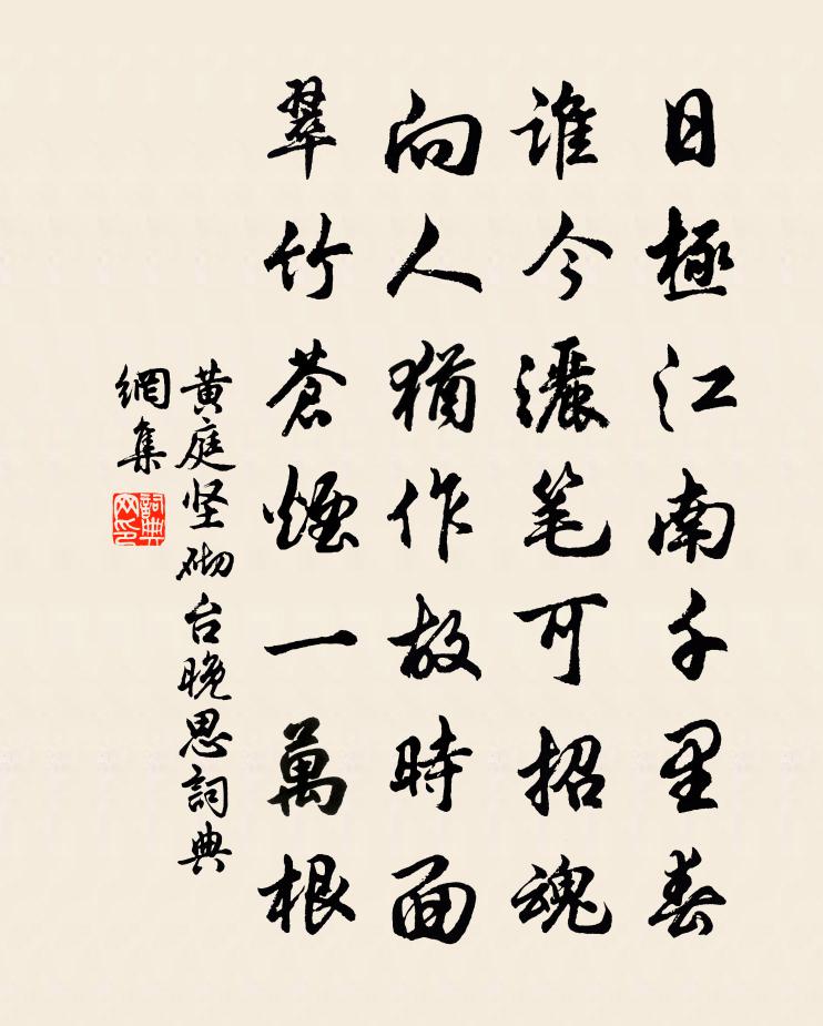 詩詞名句歷史字典書法欣賞書法字典國語詞典說文解字康熙字典古漢語字典標 題 作 者 詩 句 砌台晚思作者:黃庭堅 朝代:宋代砌台晚思原文日極江南千里春,誰今灑筆可招魂。向人猶作故時面,翠竹蒼煙一萬根。詩詞問答問:砌台晚思的作者是誰?答:黃庭堅問:砌台晚思寫於哪個朝代?答:宋代問:黃庭堅的名句有哪些?答:黃庭堅名句大全黃庭堅砌台晚思書法欣賞砌台晚思書法作品詩詞推薦同族侄評事黯游昌禪師山池二首李白〔唐代〕遠公愛康樂,為我開禪關。蕭然松石下,何異清涼山。花將色不染,水與心俱閒。一坐度小劫,觀空天地間。客來鵲橋仙張野〔元代〕無窮前古,無窮後世。分得中間百歲。人生七十古來稀,況 * 、不如人意。榮枯夢幻,功名兒戲。爭甚一時閒氣木蘭花慢 用長春真人韻王丹桂〔元代〕憶當時穎脫,道情濃,世緣疏。愛古洞深溪,蒼松翠柏,萬景齊敷。簞瓢粗為遣日,樂貧閒、況味勝蓴蘆。千古昏湖陵與劉生別陳師道〔宋代〕觸寒歷險來特特,愧無以當欣有得。向來憂患不相舍,知子用心堅鐵石。人畏有心事無難,此語雖鄙理則然。君今再登垂虹亭三首楊萬里〔宋代〕宿酲作惱未惺松,一對湖光酒病空。身到吳中無好處,三年兩度上垂虹。題傅侍郎寒碧十五韻百花徑陳宓〔宋代〕誰言四時殊,春色鎮長有。秀萼皆可餐,采采泛卮酒。殷紅一月時,發揮仍有抑。耕甫歸書約信二字為別二首杜范〔宋代〕實之謂信,言巽行果。言有不實,自喪厥我。誰其掩之,不善已播。人而無信,不知其可。觀山郊閱武李復〔宋代〕疊錦聯貂帽,飛光散羽旗。虎文雙箙重,金粟小秋垂。望鶻翻雲沒,呼鷹駐馬遲。更聞傳令去,先促羽林兒。依韻和鄭中立秘丞將替寫懷強至〔宋代〕宰邑優遊不足為,傳家事業復能持。政兼子產那專惠,學近康成最愛詩。百里耕桑增日課,三年閭井見風移。襟懷夜飛鵲/夜飛鵲慢張艾〔宋代〕霓裳按歌地,涼影參差。還是佩解江湄。滄波正洗襪塵恨,流霞空沁銖衣。盈盈半輸笑,向朱闌凝佇,欲訴心期。偈頌七十二首釋祖欽〔宋代〕寸長尺短,三平二滿。覿面相呈,語言道斷。三友堂釋智愚〔宋代〕清客蒼官會此君,歲寒不減舊精神。有時品字論交態,各有丰標遠襲人。用東坡回文韻李洪〔宋代〕春晚落花餘碧草,日長舞蝶妒紅蔫。新荷卷翠簪池面,弱柳垂絲織暝煙。興慶池禊冥董士廉〔宋代〕歲和事簡正韶春,興慶池邊樂眾賓。尋勝此時追曲水,賞芳良會屬平津。映花語笑鞦韆女,隔岸絲簧祓禊人。深愧沁園春(壽黃虛庵·三月廿九)趙福元〔宋代〕珠斗闌乾,銀河清淺,夢籋帝關。見六丁擁道,一聲傳蹕,翠幢舞鳳,彩扇交鸞。壽祝天齊,神夸岳降,報到明朝游棲霞庵灼平甫至因寄王安石〔宋代〕渺渺林間路,蕭蕭物外僧。高陰涼易入,閒貌老難增。官事真傷錦,君恩更飲冰。求田此山下,終欲忤陳登。答李道士陳杰〔宋代〕老子廢吟恐妨道,道人學詩如學仟。探藏不惜藏諸密,試換黃庭內景篇。雜詩陳瓘〔宋代〕床頭史記千番紙,世上興亡一窖塵。惟有炳然周孔道,至今餘澤浸生民。樂遊原李商隱〔唐代〕萬樹鳴蟬隔岸虹,樂遊原上有西風。羲和自趁虞泉宿,不放斜陽更向東。雜題陸游〔宋代〕羊裘老人只念歸,安用星辰動紫微。洛陽城中市兒眼,情知不識釣魚磯。名句推薦自憐人憐,自棄人棄。心無滯礙,害不侵矣。來俊臣《羅織經·保身卷第七》 慨當初,倚飛何重,後來何酷。文徵明《滿江紅·拂拭殘碑》 山桃紅花滿上頭,蜀江春水拍山流。劉禹錫《竹枝詞·山桃紅花滿上頭》 哀哀父母,生我勞瘁。佚名《蓼莪》 飛錫離鄉久,寧親喜臘初。錢起《送外甥懷素上人歸鄉侍奉》 漢月垂鄉淚,胡沙費馬蹄。岑參《磧西頭送李判官入京》 思君如流水,何有窮已時。徐幹《室思》 教也者,長善而救其失者也。戴聖《禮記·學記》 武帝宮中人去盡,年年春色為誰來。岑參《登古鄴城》 秋風蕭瑟天氣涼,草木搖落露為霜,群燕辭歸鵠南翔。曹丕《燕歌行二首·其一》
