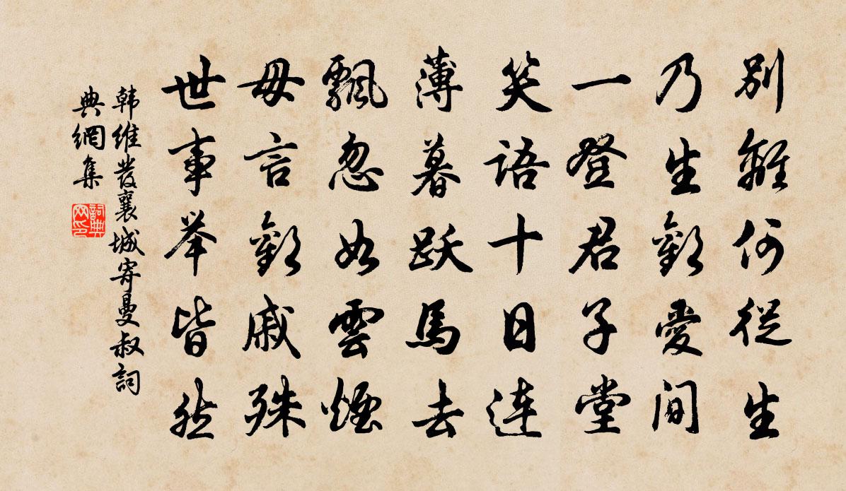 詩詞名句歷史字典書法欣賞書法字典國語詞典說文解字康熙字典古漢語字典標 題 作 者 詩 句 發襄城寄曼叔作者:韓維 朝代:宋代發襄城寄曼叔原文別離何從生,乃生歡愛間。一登君子堂,笑語十日連。薄暮躍馬去,飄忽如雲煙。毋言歡戚殊,世事舉皆然。詩詞問答問:發襄城寄曼叔的作者是誰?答:韓維問:發襄城寄曼叔寫於哪個朝代?答:宋代韓維發襄城寄曼叔書法欣賞發襄城寄曼叔書法作品詩詞推薦二月八日北城閒步曾鞏〔宋代〕上膏初動麥苗青,飽食城頭信意行。便起高亭臨北渚,欲乘長日勤春耕。阮郎歸王炎〔宋代〕落花時節近清明。南園芳草青。東風料峭雨難晴。那堪中宿酲。回首處,自銷凝。誰知人瘦生。倚闌無語不禁情。邵公濟求泰定山房十詩桃溪蘇籀〔宋代〕懷仙津步翳,凡聖隔兩塵。長統植園果,老幼分甘珍。四時般若釋法泰〔宋代〕日暖風和天地春,野華方草一翻新。靈山佳致依然在,誰是當年微笑人。二十五日晚西窗坐睡夢美人出紈扇索題為題一舒岳祥〔宋代〕皎皎瓊華了不疑,綠窗團扇索題詩。風流自是天生句,燕子梨花恰並時。謝浩然以夢告且賦詩見贈次韻復之二首李石〔宋代〕步繞西湖九里松,歸來詩句有新工。舊遊開眼誰同夢,又欲攜君過浙東。題王母廟劉滄〔唐代〕寂寥珠翠想遺聲,門掩煙微水殿清。拂曙紫霞生古壁,何年絳節下層城。鶴歸遼海春光晚,花落閒階夕雨晴。武帝鵁鶄陸龜蒙〔唐代〕詞賦曾夸鸀鳿流,果為名誤別滄洲。雖蒙靜置疏籠晚,不似閒棲折葦秋。自昔稻粱高鳥畏,至今珪組野人仇。防徽題忠憫公送婿邢得昭歸婺女詩後徐木潤〔宋代〕小人護局可畏,君子得與常遲。老秦歿已一歲,胡李方始量移。瑞芝堂曾豐〔宋代〕太空生兩儀,群有函一氣。飛走動植中,往往有常類。凡與常類殊,疑類復疑異。縉雲開國公,來攝飛挽事。乘閒吊孟浩然張蠙〔唐代〕每每樵家說,孤墳亦夜吟。若重生此世,應更苦前心。名與襄陽遠,詩同漢水深。親栽鹿門樹,猶蓋石床陰。華蓋山鄧犀如〔宋代〕日沈露下不勝寒,絕頂江南第一山。腳底雲平疑可步,身邊月近似容攀。諸天合在虛無際,清磬應聞縹緲間。秋拚賀李昌時禁苑新命唐彥謙〔唐代〕玉簡金文直上清,禁垣丹地閉嚴扃。黃扉議政參元化,紫殿稱觴拂壽星。萬戶千門迷步武,非煙非霧隔儀形。塵中寒澗劉子翬〔宋代〕林間幽鳥吸枯槎,落盡寒潮一澗沙。獨林橋西遊子宿,酒旗斜日兩三家。育王寺薛嵎〔宋代〕寺中眾山里,白雲深更深。不知行樂意,何似坐禪心。護塔龍常在,倚松僧獨吟。渡江前賜字,珍重到於今。泰定齋詩吳可〔宋代〕寂然數椽下,獨耀一宇內。脫落山水因,妙出仁智外。君看鑒中事,作止本無礙。年來識坐忘,唯余照心在。僧了仙攜馬太守唱和求詩項安世〔宋代〕世態家雞厭,人情外物牽。僧來求我句,人去覓僧禪。語綺翻成業,談空未免筌。不鬚生許事,留眼看青天。別岳州項安世〔宋代〕五更鼉鼓忽逢逢,舟子聞晴上北江。推枕一兵辭畫戟,開門三騎到篷窗。鹿鳴厚意陳箱篚,伐木深情綴酒腔。小雅靈隱冷泉韓元吉〔宋代〕山涵水影兩空明,水到山前百尺清。洞裡臞仙應一笑,抱琴時為寫寒聲。送黃通之鄖鄉歐陽修〔宋代〕君子貴從俗,小 * 養賢。無慚折腰吏,勉食落頭鮮。困有亨之理,窮當志益堅。惟宜少近禍,親發況皤然。名句推薦寧知寸心裡,蓄紫復含紅!沈約《詠新荷應詔》 夜來小雨新霽,雙燕舞風斜。万俟詠《訴衷情·送春》 霜降碧天靜,秋事促西風。葉夢得《水調歌頭·九月望日與客習射西園余偶病不能射》 弈之為數,小數也;不專心致志,則不得也。孟子《孟子·告子章句上·第九節》 無功不賞,無罪不罰。荀子《荀子·王制》 國無三年之食者,國非其國也墨子《墨子·05章 七患》 乘我大宛馬,撫我繁弱弓。張華《壯士篇》 目不能兩視而明,耳不能兩聽而聰。荀子《荀子·勸學》 明月皎皎照我床,星漢西流夜未央。曹丕《燕歌行二首·其一》 綠樹陰濃夏日長,樓台倒影入池塘。高駢《山亭夏日》