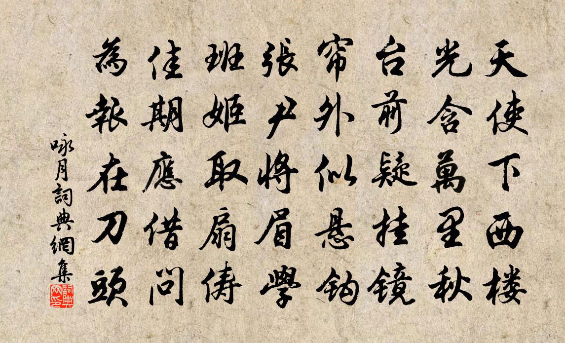 天使下西樓,光含萬里秋。台前疑掛鏡,簾外似懸鉤。
