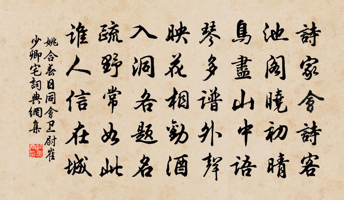 詩詞名句歷史字典書法欣賞書法字典國語詞典說文解字康熙字典古漢語字典標 題 作 者 詩 句 春日同會衛尉崔少卿宅作者:姚合 朝代:唐代春日同會衛尉崔少卿宅原文詩家會詩客,池閣曉初晴。鳥盡山中語,琴多譜外聲。映花相勸酒,入洞各題名。疏野常如此,誰人信在城。詩詞問答問:春日同會衛尉崔少卿宅的作者是誰?答:姚合問:春日同會衛尉崔少卿宅寫於哪個朝代?答:唐代問:春日同會衛尉崔少卿宅是什麼體裁?答:五律姚合春日同會衛尉崔少卿宅書法欣賞春日同會衛尉崔少卿宅書法作品注釋全唐詩:卷500-30詩詞推薦與舍弟華藏院忞君亭詠竹王安石〔宋代〕一逕森然四座涼,殘陰餘韻去何長。人憐直節生來瘦,自許高材老更剛。會與蒿藜同雨露,終隨松柏到冰霜。煩君添字浣溪沙/山花子佚名〔宋代〕誰染深紅酥綴來。意濃含笑美顏開。誤認浣溪人飲罷,上香腮。辨杏疑桃稱好句,名園色異占多才。折得一枝斜插依韻和李密學會流杯亭梅堯臣〔宋代〕園林固足勝,景著必人賢。將泛杯中物,遠分湖水泉。來從百花底,轉向眾賓前。易醉緣多病,陪公愧少年。安國置酒敬簡堂分韻得柳暗六春字張栻〔宋代〕桴鼓息荒村,襏襫盛南畝。永日省文書,呼客共樽酒。主人出塵姿,宛是靈和柳。行歸帝所游,此地豈淹久。鎖宿余半月得讀書喜而有賦程公許〔宋代〕薰風鎖重棘,補被去何勇。私我幾日間,此意千金重。范掌書丘葵〔宋代〕出佐繡衣使,八州人共歡。一句司光筆,六計問周官。雁鶩手持進,豺狼膽自寒。豈惟重台省,風采動朝端。寄施芸隱崔復初〔宋代〕驚見門前柳又陰,江湖何日可山林。未能成事空豪氣,恐易傷時休苦吟。魚信不來流水遠,雁聲低去暮雲深。而今鷓鴣天(詠荼蘼五首)趙長卿〔宋代〕弱質纖姿儷素妝。水沈山麝郁幽香。直疑姑射來天上,要惱人間傅粉郎。簡釀酒,枕為囊。更餘風味勝糖霜。肯如詠竹月張玉孃〔宋代〕幽幽萬籟竹千竿,涼夜宜從自裹看。翠節參差訴玉兔,金波晃洋浴青鶯。半檐蒼月催詩思,一徑寒輝醒醉魂。吹徹齊天樂周密〔宋代〕宮檐融暖晨妝懶。輕霞未勻酥臉。倚竹嬌顰,臨流瘦影,依約尊前重見。盈盈笑靨。映珠絡玲瓏,翠綃蔥茜。夢入楊班湫神恩加廣應公以其誥祭之晁說之〔宋代〕平生笑殺詛楚文,今朝鄜畤祭湫神。嗟爾湫神何為者,上公袞冕皇恩新。日出輝輝收霰雪,仿佛拜命若可親。湫神感遇之廿七陳子昂〔唐代〕朝發宜都渚。浩然思故鄉。故鄉不可見。路隔巫山陽。巫山彩雲沒。高丘正微茫。佇立望已久。涕落沾衣裳。豈茲金縷曲 代送同僚 以上四印齊本牆東詩餘二十陸文圭〔元代〕乍到蓉城路。聽兒童歌謠德政,感恩如父。好人西京循吏傳,誰道今人非古。留遺愛、甘棠佳樹。節操冰霜清凜凜感興何夢桂〔宋代〕剩得田園歸去來,江南兩度見黃梅。軒窗有侶余松竹,牆壁無人半蘚苔。獨抱丹心徒自苦,相逢白首不須哀。人間人不易知鄭昉〔唐代〕如面誠非一,深心豈易知。入秦書十上,投楚歲三移。和玉翻為泣,齊竽或濫吹。周行雖有寘,殷鑑在前規。寅亮詠雪駱賓王〔唐代〕龍雲玉葉上,鶴雪瑞花新。影亂銅烏吹,光銷玉馬津。含輝明素篆,隱跡表祥輪。幽蘭不可儷,徒自繞陽春。春晴懷故園海棠楊萬里〔宋代〕故園今日海棠開,夢入江西錦繡堆。萬物皆春人獨老,一年過社燕方回。似青似白天濃淡,欲墮還飛絮往來。無那和劉誼翁留題惠安二首舒坦〔宋代〕十里松竹翠插天,暗溪嫩草半芊綿。笙歌自滿蕭郎宅,琴鶴空隨賀老船。未分舊遊雲寂寞,遙知歸夢蝶聯翩。故山雨行宿高岡入家戲成口號曹彥約〔宋代〕過了一坡更一坡,中間田道水成渦。雨來更聚擔肩重,泥滑不休行步多。奈老杉松猶偃蹇,趨時桃李暫蹉跎。炊煙叔祖閣學生朝以丹砂鑄酒杯為壽張鎡〔宋代〕真人玉練超塵質,尚假金鹽煮堅石。要知草伏砂最難,護氣延年本仙術。神爐秘炭呼祝融,日月出沒奔朱龍。至今名句推薦乘人之車者載人之患,衣人之衣者懷人之憂,食人之食者死人之事。司馬遷《史記·七十列傳·淮陰侯列傳》 桃花三十六陂,鮫宮睡起,嬌雷乍轉。吳文英《瑞龍吟·德清清明競渡》 此心隨去馬,迢遞過千峰。方乾《送從兄郜 / 韋郜 / 途中別孫璐》 想邊鴻孤唳,砌蛩私語。王沂孫《掃花游·秋聲》 君子不動而敬,不言而信。子思《中庸·第三十三章》 燈前目力雖非昔,猶課蠅頭二萬言。陸游《讀書》 皮之不存,毛將安傅?左丘明《左傳·僖公·僖公十四年》 禍之所由生也,生自纖纖也。荀子《荀子·大略》 雨中山果落,燈下草蟲鳴。王維《秋夜獨坐 / 冬夜書懷》 星月皎潔,明河在天,四無人聲,聲在樹間。歐陽修《秋聲賦》