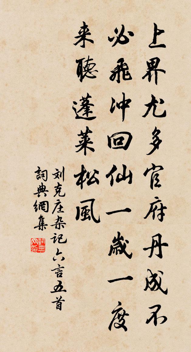 上界尤多官府,丹成不必飛沖。回仙一歲一度,來聽蓬萊松風。