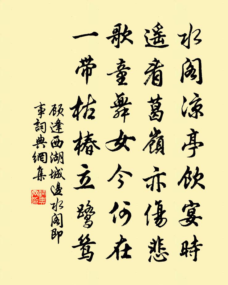 詩詞名句歷史字典書法欣賞書法字典國語詞典說文解字康熙字典古漢語字典標 題 作 者 詩 句 西湖城邊水閣即事作者:顧逢 朝代:宋代西湖城邊水閣即事原文水閣涼亭飲宴時,遙看葛嶺亦傷悲。歌童舞女今何在,一帶枯椿立鷺鷥。詩詞問答問:西湖城邊水閣即事的作者是誰?答:顧逢問:西湖城邊水閣即事寫於哪個朝代?答:宋代顧逢西湖城邊水閣即事書法欣賞西湖城邊水閣即事書法作品詩詞推薦秋雨霽倏聞宗聖案伎應這飲酒詩呈宜甫司馬光〔宋代〕寒風細雨未晴天,密似輕塵薄似煙。一室獨吟圖史亂,四鄰高會綺羅鮮。雁飛斜柱弦隨指,蟹蘆新螯酒滿船。自笑客夜偶成釋紹嵩〔宋代〕萬里長為客,窮愁豈自寬。年衰發種種,幽集夜漫漫。風卷湖煙靜,雲收溪月寒。天涯少知遇,唯有醉江乾。寒食前一日發黃堰明日抵定夸連日逆風吹沙不趙蕃〔宋代〕故人留我過寒食,童重寧同所歷家。苦信長年貪道里,翻成五日滯風沙。擬從塔上占鈴語,又見雲間起砲車。立遍送李邕州項安世〔宋代〕一官全似飛鴻翼,不在天南即天北。朝辭白馬阿得脂,暮長蠻夷老夫國。不知廣源洞裡儂智高,何似仇池頂上楊難玉漏遲·詠懷元好問〔金代〕淅江歸路杳,西南卻羨、投林高鳥。升斗微官,世累苦相縈繞。不似麒麟殿里,又不與、巢由同調。時自笑,虛名寄彭子靜劉子翬〔宋代〕凍岫立高白,曉寒生太虛。閉門翻巾幐,偶見良友書。書中有長句,別懷陳鬱紆。吐鳳詞既絕,續貂理難如。起望寄王提舉何夢桂〔宋代〕地到偏方苦雪霜,蒼生寒谷望春陽。一麾使節來天上,萬口行碑在路傍。里役莊成民弛擔,關征法簡旅行糧。只今檢院即事任希夷〔宋代〕禁路風清飛蚤鴉,官卑難望紫宸衙。了無公事鉤簾坐,一本冬青落細花。三月十七日食櫻桃蠶豆知麥熟日至矣示家人為舒岳祥〔宋代〕清明已自斷百果,櫻豆從頭次第嘗。青山四面欲春晚,白髮千太照溪長。偶然坐石雲離次,久不窺園竹亂行。甔石送程道輝之廣濟項安世〔宋代〕昂昂天馬駒,志豈 * 櫪。虓虓岩下虎,平生肯求食。可憐百鍊鋼,繞指化為席。丈夫有不遇,此事今猶昔。程侯樂全先生生日,以鐵拄杖為壽,二首蘇軾〔宋代〕二年相伴影隨身,踏遍江湖草木春。擿石舊痕猶在眼,閉門高節慾生鱗。畏途自衛真無敵,捷徑爭先卻累人。遠寄賢者之孝二百四十首韋陸林同〔宋代〕不惜以身諫,惟愁失母慈。景融常自楚,嗣立每求笞。題道靜院院在中條山故王顏中丞所置虢州刺史…寫真存焉李商隱〔唐代〕紫府丹成化鶴群,青鬆手植變龍文。壺中別有仙家日,嶺上猶多隱士雲。獨坐遺芳成故事,褰帷舊貌似元君。自憐和何學士見詠新得鶴魏野〔宋代〕喜得華亭鶴,看承過所宜。防飢先種稻,憂病預鑽龜。易愜眠雲意,難酬臥錦詩。不緣過郡謝,步步在相隨。鄧帥寄梅並山堂酒曾幾〔宋代〕甓社湖邊路,詩筒得報回。舊時雲液酒,新歲雨肥梅。不是園官送,真成驛使來。鬢毛都白盡,更著此花催。再次前韻六首張嵲〔宋代〕亂蕊晚迎晴日暗,疏枝迥映暮山長。蕭然一榻安禪夜,細雨輕風為發香。清明黃庭堅〔宋代〕佳節清明桃李笑,野田荒壠只生愁。雷驚天地龍蛇螫,雨足郊原草木柔。人乞祭余驕妾婦,士甘焚死不公侯。賢愚送李德遠寺丞奉祠歸臨川陸游〔宋代〕送騎擁東城,煙帆如鳥輕。道行端有命,身隱更須名?旰食煩明主,胡沙暗舊京。臨分一襟淚,不獨為交情。題三女岡白蓮花趙崇森〔宋代〕舊址來從晉,史更幾廢興。一蓮開陸地,三女臥岡陵。題詠夸先輩,流傳得主僧。林深鍾梵寂,長夜一明燈。次韻酬張補闕因寒食見寄之什鄭谷〔唐代〕柳近清明翠縷長,多情右袞不相忘。開緘雖睹新篇麗,破鼻須聞冷酒香。時態懶隨人上下,花心甘被蝶分張。朝稀名句推薦我行殊未已,何日復歸來。宋之問《題大庾嶺北驛》 凡大事皆起於小事,小事不論,大事又將不可救吳兢《貞觀政要·卷一·論政體》 黃河怒浪連天來,大響谹谹如殷雷。溫庭筠《拂舞詞 / 公無渡河》 公生明,偏生暗,端愨生通,詐偽生塞,誠信生神,誇誕生惑。荀子《荀子·不苟》 習俗移志,安久移質。荀子《荀子·儒效》 潮平兩岸闊,風正一帆懸。王灣《次北固山下》 焉知後之視今,不如今之視昔也?王通《中說·卷七·述史篇》 紅樓隔雨相望冷,珠箔飄燈獨自歸。李商隱《春雨》 白馬誰家子,黃龍邊塞兒。李白《獨不見》 正是天山雪下時,送君走馬歸京師。岑參《天山雪歌送蕭治歸京》
