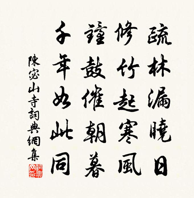 詩詞名句歷史字典書法欣賞書法字典國語詞典說文解字康熙字典古漢語字典標 題 作 者 詩 句 山寺作者:陳宓 朝代:宋代山寺原文疏林漏曉日,修竹起寒風。鐘鼓催朝暮,千年如此同。詩詞問答問:山寺的作者是誰?答:陳宓問:山寺寫於哪個朝代?答:宋代陳宓山寺書法欣賞山寺書法作品詩詞推薦梅花潘牥〔宋代〕偷得湖齋半日閒,有梅此地即孤山。瘦邊似我腰全沈,白處憐渠鬢亦潘。惟有竹君同所好,豈容蝶使戲其間。調羹玉女搖仙佩·佳人柳永〔宋代〕飛瓊伴侶,偶別珠宮,未返神仙行綴。取次梳妝,尋常言語,有得幾多姝麗。擬把名花比。恐旁人笑我,談何容易贈韋八白居易〔唐代〕辭君歲久見君初,白髮驚嗟兩有餘。容鬢別來今至此,心情料取合何如?曾同曲水花亭醉,亦共華陽竹院居。豈料嘉祐親享朋堂二首佚名〔宋代〕明明合宮,莫尊享帝。禮樂熙成,精興神契。桂尊初蘭,羽駕條逝。遺我嘉祥,於喃萬世。宿大通和尚塔,敬贈如上人,兼呈常、孫二山人崔曙〔唐代〕支公已寂滅,影塔山上古。更有真僧來,道場救諸苦。一承微妙法,寓宿清淨土。身心能自觀,色相了無取。森森巫山一段雲 洞庭秋月李齊賢〔元代〕衡岳寬臨北,君山小近南。中開北百里湖潭。吳楚入包含。銀漢秋相接,金波夜正涵。舉杯長嘯待鸞驂。且對影成偶成曹彥約〔宋代〕桃紅柳綠簇春華,燕語鶯啼盡日嘉。誰信聲聲沂水詠,又知處處杏支家。漁家傲石孝友〔宋代〕夜半潮聲來枕上。擊殘夢破驚魂盪。見說錢塘雄氣象。披衣望。碧波堆里排銀浪。月影徘徊天滉漾。金戈鐵馬森相鷓鴣天晁補之〔宋代〕繡幕低低拂地垂。春風何事入羅幃。胡麻好種無人種,正是歸時君未歸。臨晚景,憶當時。愁心一動亂如絲。夕陽贈醫僧善正蘇轍〔宋代〕老怯江邊瘴癘鄉,城東時喜到公房。歷言五藏如經眼,欲去三彭自有方。身厭遠遊安靜默,術因多病更深長。時時四月望再游西湖十首陳造〔宋代〕歌呼浩渺翠霏間,只苦詩才老坐慳。安得觀音母陁手,為人千紙寫湖山。早春陪崔中丞同泛浣花谿宴岑參〔唐代〕旌節臨谿口,寒郊陡覺暄。紅亭移酒席,畫舸逗江村。雲帶歌聲颺,風飄舞袖翻。花間催秉燭,川上欲黃昏。寶山寺寒食次韻和閬翁戴表元〔宋代〕緣陰啼鳥春將老,古寺垂楊日未西。客子欲歸風滿袖,桃花無語水流溪。有人蔬筍忘饑渴,何處松楸雜笑啼。淮擬雪趙希桐〔宋代〕不是春風柳,因何絮客衫。一雲同萬里,半夜失千岩。征馬寒蹤印,飢鴟凍吻緘。江心一片白,知有莫歸帆。送西湖書院趙山長方回〔宋代〕東南大郡莫如杭,其西有湖夸錢唐。兩賢刺史一隱士,春秋祠祀專烝嘗。芙蓉楊柳鷗鷺傍,四時不絕炷瓣香。後來鹿城晚眺林景熙〔宋代〕古城仙鹿遠,百感赴斜曛。海氣千年聚,山形九斗分。神鴉飢吸蘚,宰木蠹藏雲。何處鳴鉦發,春屯又易軍。為余君肅日嚴母夫人壽王邁〔宋代〕曾向瑤池穩泛槎,眼看西母佩飛霞。定分天地沖和氣,來匹化侯富貴家。熊膽課兒心苦淡,魚軒錫命世榮華。樽前劉建州母夫人難氏挽章張元乾〔宋代〕慈顏推壽相,懿範在吾鄉。不待黃堂養,空遺紫誥藏。板輿悲騎省,板輿悲騎省,鶴客吊龍驤。風卷銘旌去,松岡十蟲吟舒岳祥〔宋代〕蟲有賣油公,什伍處陰濕。長腳如蠨蛸,愛莫能助細走不及。兒童反接之,邀其吐微汗。所挾雖不多,坐此遭攟拾謝陳季常惠一揞巾蘇軾〔宋代〕夫子胸中萬斛寬,此巾何事小團團。半升僅漉淵明酒,二寸才容子夏冠。好帶黃金雙得勝,可憐白薴一生酸。臂弓名句推薦我軍青坂在東門,天寒飲馬太白窟。杜甫《悲青坂》 天涯地角有窮時,只有相思無盡處。晏殊《玉樓春·春恨》 夫嚴家無悍虜,而慈母有敗子。韓非及後人《韓非子·顯學》 捐軀赴國難,視死忽如歸!曹植《白馬篇》 萬物同宇而異體,無宜而有用為人,數也。荀子《荀子·富國》 平皋行雁下,曲渚雙鳧出。崔元翰《奉和聖制重陽旦日百寮曲江宴示懷》 東面望者不見西牆,南鄉視者不睹北方呂不韋《呂氏春秋·覽·有始覽》 寒日蕭蕭上瑣窗,梧桐應恨夜來霜。李清照《鷓鴣天·寒日蕭蕭上瑣窗》 白毛浮綠水,紅掌撥清波駱賓王《詠鵝》 人皆可以為堯舜。孟子《孟子·告子章句下·第二節》