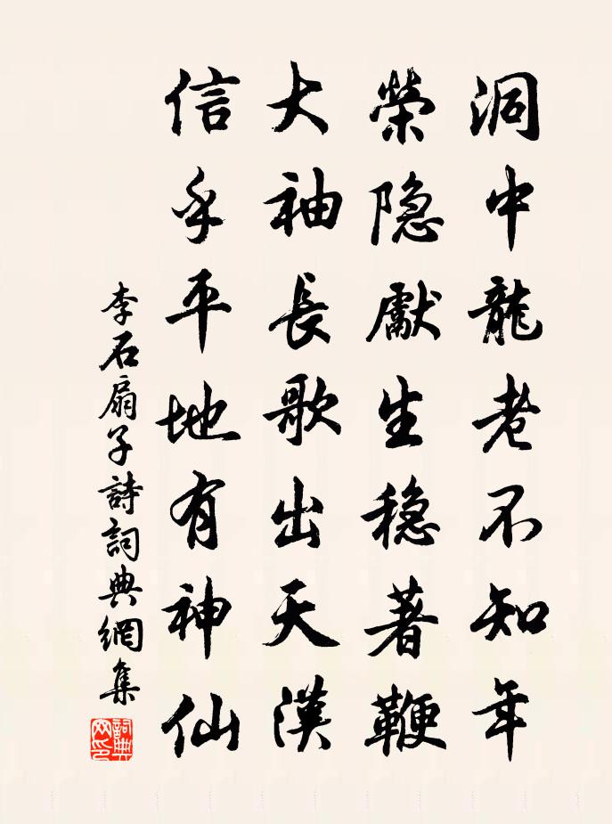 詩詞名句歷史字典書法欣賞書法字典國語詞典說文解字康熙字典古漢語字典標 題 作 者 詩 句 扇子詩作者:李石 朝代:宋代扇子詩原文洞中龍老不知年,榮隱先生穩著鞭。大袖長歌出天漢,信乎平地有神仙。詩詞問答問:扇子詩的作者是誰?答:李石問:扇子詩寫於哪個朝代?答:宋代李石扇子詩書法欣賞扇子詩書法作品詩詞推薦謁侍郎李先生程公許〔宋代〕春風曾得曳長裾,再見應知勝百書。從此修門天萬里,可能誦賦憶相如。歸燕杜甫〔唐代〕不獨避霜雪,其如儔侶稀。四時無失序,八月自知歸。春色豈相訪,眾雛還識機。故巢儻未毀,會傍主人飛。觀公孫大娘弟子舞劍器行並序杜甫〔唐代〕昔有佳人公孫氏,一舞劍器動四方。觀者如山色沮喪,天地為之久低昂。爧如羿射九日落,嬌如群帝驂龍翔。來如友人曾無疑示予真索贊周必大〔宋代〕懶逐溪風偶度雲,聊同江月戲分身。誰知鄭馹多佳客,也著駘佗一惡人。贈同志釋文珦〔宋代〕我本面無生儔,面涉有乖素麵願。百年面直寄耳,倏忽如過電。猶記學語時,老色遽滿面。富貴非所希,吾道在貧物外雜題陸游〔宋代〕粉堞臨江渚,朱橋枕市樓。長吟策小蹇,又度一年秋。木蘭花(林鐘商)張先〔宋代〕西湖楊柳風流絕。滿樓青春看贈別。牆頭簌簌暗飛花,山外陰陰初落月。秦姬穠麗雲梳發。持酒唱歌留晚發。驪駒賀新涼(送游景仁赴夔漕)吳泳〔宋代〕額扣龍墀苦。對南宮、春風侍女,掉頭不顧。烽火連營家萬里,漠漠黃沙吹霧。莽關塞、白狼玄兔。如此江山俱破和中書侍郎院壁畫雲李收〔唐代〕粉壁畫雲成,如能上太清。影從霄漢發,光照掖垣明。映筱多幽趣,臨軒得野情。獨思作霖雨,流潤及生靈。次韻毛君山房即事十首蘇轍〔宋代〕案牘稀疏意自開,夜闌幽夢曉方回。青苔紅葉騷人事,時見詩簡去又來。東晉仙人借舊山,定應天意許公閒。郡人謝月林寄詩次韻蘇泂〔宋代〕重入都門又許時,舊巢新燕欲何之。清風忽送苕溪便,滿紙雲煙七字詩。讀唐中興頌許抗〔宋代〕周雅久不復,楚騷方獨鳴。淫哇弄氣態,□我沏湘清。二公好奇古,大節□時□。□崖勒唐頌,字字瓊□英。□雲頌古二十首釋了一〔宋代〕春有百花夏有熱,秋有涼風冬有雪。若無閒事掛心頭,便是人間好時節。鵲橋仙歐陽修〔宋代〕月波清霽,煙容明淡,靈漢舊期還至。鵲迎橋路接天津,映夾岸、星榆點綴。雲屏未卷,仙雞催曉,腸斷去年情味崇政殿後春晴即事王安石〔宋代〕悠悠獨夢水西軒,百舌枯頭語更繁。山鳥不應知地禁,亦逢春暖即啾喧。歸括蒼和楊嗣之吏部煙雨樓韻四首姜特立〔宋代〕幾重綠樹暗羅紈,多少空濛遠近山。物色聯翩吟不斷,使君佳句玉連環。句釋惠崇〔宋代〕月高山舍迥,霜落石門深。愛山釋紹曇〔宋代〕酷將嗜好片閒心,散作千岩萬壑春。拚得一生看不足,險崖句里要翻身。句釋惠崇〔宋代〕鎖城山月上,吹角海鷗驚。薄薄酒於石〔宋代〕薄薄酒,可盡歡。粗粗布,可禦寒。醜婦不與人爭妍。西園公卿百萬錢,何如江湖散人秋風一釣船。萬騎出塞銘燕名句推薦自古驕兵多致敗,從來輕敵少成功。羅貫中《三國演義·第六十九回》 春雨斷橋人不度,小舟撐出柳陰來。徐俯《春遊湖》 君子引而不發,躍如也。孟子《孟子·盡心章句上·第四十一節》 用舍由時,行藏在我,袖手何妨閒處看。蘇軾《沁園春·孤館燈青》 金玉其外,敗絮其中劉基《賣柑者言》 君子不動而敬,不言而信。子思《中庸·第三十三章》 恨無千日酒,空斷九迴腸。劉彤《臨江仙·千里長安名利客》 瀉水置平地,各自東西南北流。鮑照《擬行路難十八首》 暝色入高樓,有人樓上愁。李白《菩薩蠻·平林漠漠煙如織》 無邊落木蕭蕭下,不盡長江滾滾來。杜甫《登高》