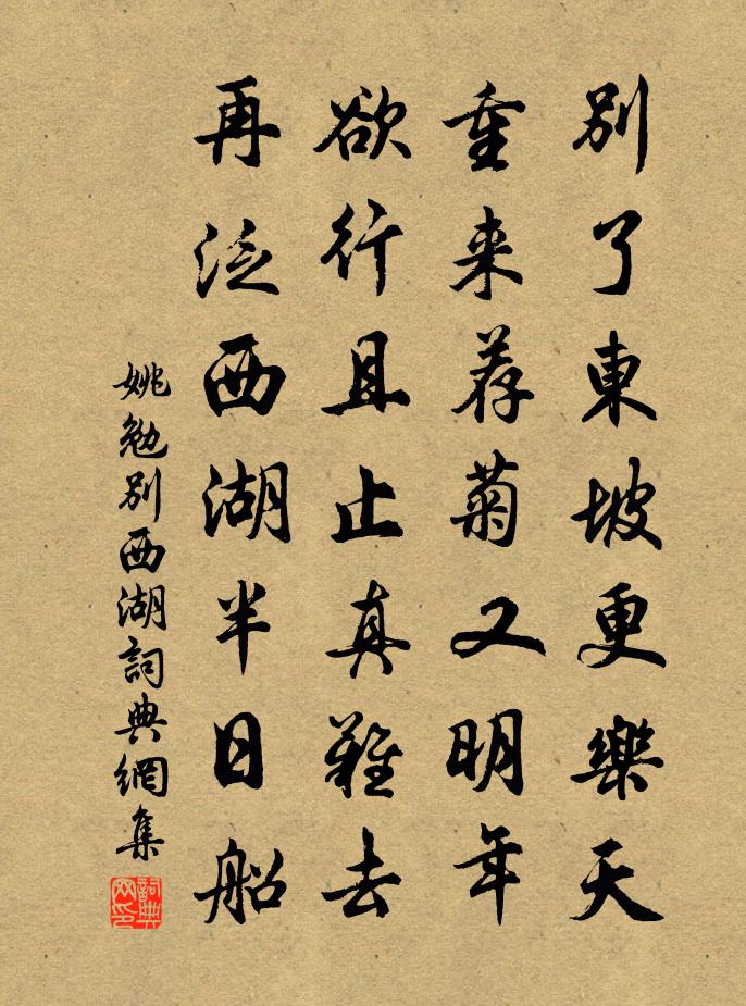 詩詞名句歷史字典書法欣賞書法字典國語詞典說文解字康熙字典古漢語字典標 題 作 者 詩 句 別西湖作者:姚勉 朝代:宋代別西湖原文別了東坡更樂天,重來薦菊又明年。欲行且止真難去,再泛西湖半日船。詩詞問答問:別西湖的作者是誰?答:姚勉問:別西湖寫於哪個朝代?答:宋代姚勉別西湖書法欣賞別西湖書法作品詩詞推薦村居書喜陸游〔宋代〕紅橋梅市曉山橫,白塔樊江春水生。花氣襲人知驟暖,鵲聲穿樹喜新晴。坊場酒賤貧猶醉,原野泥深老亦耕。最喜得節二首姜特立〔宋代〕風雲際會少人同,玉殿宣麻出禁中。聖主念親催賜鉞,老臣們淚痛遺弓。上升花 嗚鶴餘音卷五吳真人〔元代〕緊鎖心猿,悟光陰塵世,百年喘速。下手頓修,元本真靈,此日要住行屋。居家坑塹先須跳,將身己,使令孤宿。五和劉克莊〔宋代〕霧掃山如潑黛濃,一開口笑古難逢。斬新種柳輞川水,火急移蓮玉井峰。甚愛名花當輦致,遠求佳果莫函封。人生句張河〔宋代〕七人諫省從遺直,九子仙峰暫卜居。送閣學袁尚書帥蜀分得雲字韻沈繼祖〔宋代〕秋郊時出祖,秋盡不余分。西湖貯秋色,護日浮輕雲。煌煌元戎乘,行旃駐河濆。璧水官僚多,飛蓋凝祥氛。坐間黃龍清和尚真贊黃庭堅〔宋代〕黃河徹底凍,白髮通心白。雖有顧陸手,百巧畫不得。蘆葦江八詠西浦潮痕羅仲舒〔宋代〕潮漲復朝退,盈縮痕常存。渡口孤舟橫,濟川應有人。趙帥復賦詩來用韻酬之陳傅良〔宋代〕天光交光地欲無,中間老子獨軒渠。一蓑漁隱真堪畫,萬玉龍驤不可屠。已卜菑畲何幸甚,卻憐藍縷更愁如。莫將旅次文水縣喜遇李少府施肩吾〔唐代〕為君三日廢行程,一縣官人是酒朋。共憶襄陽同醉處,尚書坐上納銀觥。南園試小樂白居易〔唐代〕小園斑駁花初發,新樂錚摐教欲成。紅萼紫房皆手植,蒼頭碧玉盡家生。高調管色吹銀字,慢拽歌詞唱渭城。不飲九月末大風一夕遂安置火爐有感二首張耒〔宋代〕謫官兩向黃州火,知是明年何處冬。須信炎涼相代至,亦知榮辱到頭空。怨咨莫起天公念,燕坐何妨佛理通。更有游山寺周南〔宋代〕山寺清明蛺蝶飛,中庭古佛供琉璃。僧房也有追游市,瓦狗泥車誑小兒。題齋壁陸游〔宋代〕出郭無十里,結廬才數間。每將窮博健,不遣樂妨閒。賣藥雲邊市,尋僧雨外山。何妨搖楫去,卻作跨驢還。新鶯歌釋瑩徹〔宋代〕新鶯傍檐曉更悲,孤音清吟囀柔枝。口邊血出語未盡,豈是怨恨人不知。不食枯桑椹,不銜苦李花,偶然弄樞機,題柱二首陳師道〔宋代〕桃李摧殘風雨春,天孫河鼓隔天津。主恩不與妍華盡,何限人間失意人。至和中得倅新定今領福唐再經此郡感舊書懷因張伯玉〔宋代〕十年前倅北州來,平日風情尚壯哉。玉水聲中寒濯筆,石楠鄉里夜銜杯。可憐白首成何事,猶得紅旌向北回。太守句趙概〔宋代〕滁水西偏郡,豐山北際樓。臨平道中道潛〔宋代〕風蒲獵獵弄清柔,欲立蜻蜓不自由。五月臨平山下路,藕花無數滿汀州。偈四首釋雲賁〔宋代〕五百生中受屈,祗緣不識個落字。百千眾中較量,祗緣不識個昧字。都來兩字淆訛,陷卻多少平直。名句推薦行人悵望蘇台柳,曾與吳王掃落花。姜夔《姑蘇懷古》 百草千花寒食路,香車系在誰家樹。馮延巳《鵲踏枝·幾日行云何處去》 夜來疏雨鳴金井,一葉舞空紅淺。王月山《齊天樂·夜來疏雨鳴金井》 偶因一著錯,便為人上人。曹雪芹《紅樓夢·第二回》 法不阿貴,繩不撓曲。韓非及後人《韓非子·有度》 全一人者德之輕,拯天下者功之重房玄齡《晉書·帝紀·第三章》 賭近盜,淫近殺。馮夢龍《警世通言·卷三十五》 玉輪碾平芳草,半面惱紅妝。陳子龍《訴衷情·春遊》 奈南牆冷落,竹煙槐雨。吳文英《惜秋華·七夕前一日送人歸鹽官》 曾與美人橋上別,恨無訊息到今朝。劉禹錫《楊柳枝 / 柳枝詞》