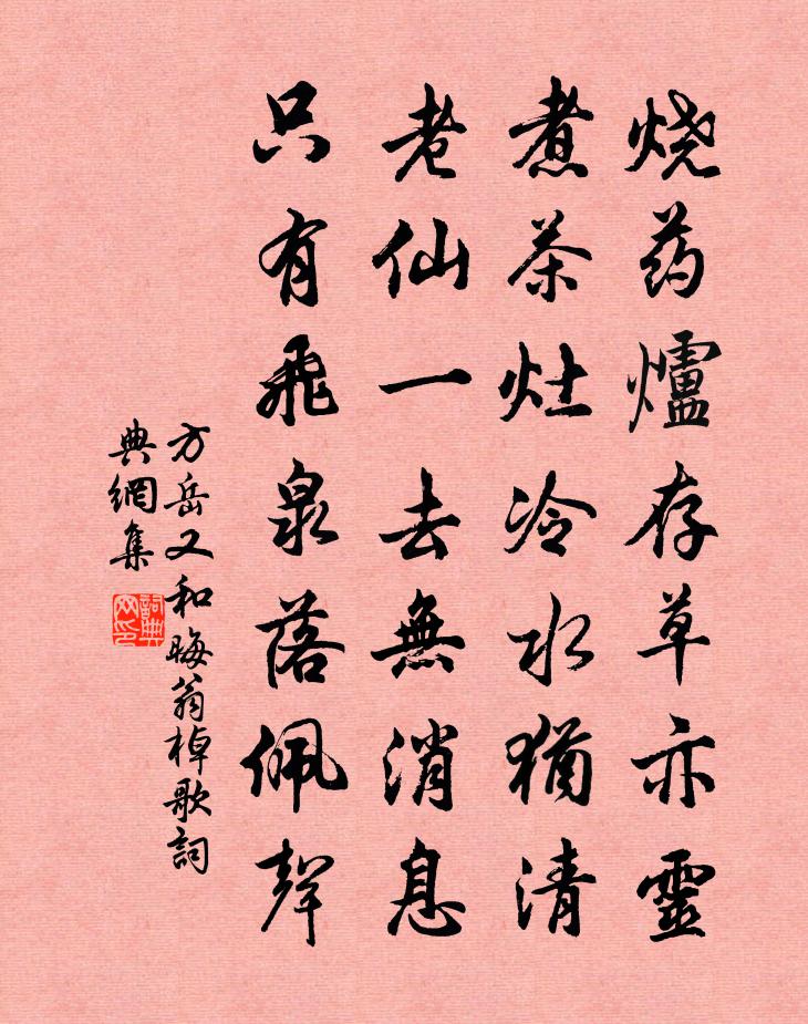 詩詞名句歷史字典書法欣賞書法字典國語詞典說文解字康熙字典古漢語字典標 題 作 者 詩 句 又和晦翁棹歌作者:方岳 朝代:宋代又和晦翁棹歌原文燒藥爐存草亦靈,煮茶灶冷水猶清。老仙一去無訊息,只有飛泉落佩聲。詩詞問答問:又和晦翁棹歌的作者是誰?答:方岳問:又和晦翁棹歌寫於哪個朝代?答:宋代方岳又和晦翁棹歌書法欣賞又和晦翁棹歌書法作品詩詞推薦南柯子曹雪芹〔清代〕空掛纖纖縷,徒垂絡絡絲。也難綰系也難羈,一任東西南北各分離。落去君休惜,飛來我自知。鶯愁蝶倦晚芳時,端平三年春帖子詞皇帝閣洪咨夔〔宋代〕麥苗培秀臘前雪,稻種浸芽春後晴。野老田夫觀治象,便從新歲賀昇平。鷓鴣天·林斷山明竹隱牆蘇軾〔宋代〕林斷山明竹隱牆。亂蟬衰草小池塘。翻空白鳥時時見,照水紅蕖細細香。村舍外,古城旁。杖藜徐步轉斜陽。殷勤正肅吳公輓辭三首王安石〔宋代〕從容邊塞議,慷慨廟堂爭。曲突非無驗,方穿有不行。搢紳終倚賴,贈襚極哀榮。豈慕公孫貴,平生學董生。偈頌一百零一首釋慧性〔宋代〕點撿將來,罪過不少。只憑拄杖,一切靠倒。楊待制輓詞韓元吉〔宋代〕妙齡著足道家山,壯歲升華玉筍班,千里麾符才假手,幾年香火竟投閒。詩書坐命名家聲大,簪紱誰令壽歷慳。太次韻和李光丞見惠長絛之什楊億〔宋代〕貂裘已敝洛陽塵,空有隱家漉酒巾。雙闕金章奉朝請,小齋紗帽齊天真。久持梵行稱居士,猶掌王言作侍臣。惠我送子云五首韓元吉〔宋代〕四海雙兄弟,南來幾別離。未成春草夢,先動白雲思。涕淚三年隔,風塵數月期。生涯奔走里,卜築定何時。道中聞百舌釋紹嵩〔宋代〕一徑尋村渡碧溪,山花紅紫樹高低。如今天下無鳴鳳,說與春鳥自在啼。蓼莪佚名〔先秦〕蓼蓼者莪,匪莪伊蒿。哀哀父母,生我劬勞。蓼蓼者莪,匪莪伊蔚。哀哀父母,生我勞瘁。瓶之罄矣,維罍之恥。秋花宋伯仁〔宋代〕鳳兒花雜雁來紅,更有雞冠弄紫茸。可笑倚闌人醉後,只將青眼看芙蓉。病中詩十五首。初病風白居易〔唐代〕六十八衰翁,乘衰百疾攻。朽株難免蠹,空穴易來風。肘痹宜生柳,頭旋劇轉蓬。恬然不動處,虛白在胸中。雪中梅竹圖家鉉翁〔宋代〕梅兄乃我義理朋,竹友從我林壑游。青青不受塵土涴,皓皓肯與紅紫侔。別來天涯今幾載,老大相逢俱白頭。玉龍雜詩吳大有〔宋代〕山中多雨水,秋晚正妨農。病菜和根煮,新粳帶濕舂。擁沙埋廢井,墮石折枯松。寂寂猿啼晝,白雲藏數峰。劍客篇楊維楨〔元代〕昨夜征西去,西兵盡倒戈。丈夫學劍術,何用效荊軻。和吳微明疏影橫斜水清淺七詠韻李呂〔宋代〕斜入茅檐如有恨,高情每賴吟題遣。要知調鼎會有時,且占寒溪照清淺。宜春道中贈邢公昭二首趙蕃〔宋代〕清江台上讀君詩,頗欲相從慰所思。何意昌山夜止宿,忽成風雨對床期。寓興十首張至龍〔宋代〕高風吹秋霜,庭前百草死。誰知草有根,昨夜東風起。送嚴上舍並寄諸公十首寄趙景安府判陳造〔宋代〕趙子趨吳幕,予偕詠舞雩。迄今推轂力,不墮拾塵誣。鬢腳今全白,車輪欲半朱。何階答知己,冰蘗耐窮塗。深靜堂葉抑〔宋代〕亂山蒼蒼溪曲盤,煙林漠漠風生寒。地幽景絕豈易到,中隱蕭寺環峰巒。山僧淳樸寺亦古,築室為堂蔽風雨。深靜名句推薦不覺碧山暮,秋雲暗幾重。李白《聽蜀僧濬彈琴 / 聽蜀僧浚彈琴》 孤客傷逝湍,徒旅苦奔峭。謝靈運《七里瀨》 王者不言有無,諸侯不說多少,食祿之 家,不與百姓爭利。李大師、李延壽《南史·列傳·卷三十三》 春水碧於天,畫船聽雨眠。韋莊《菩薩蠻·人人盡說江南好》 村喜禾花實,峰看嶺岫重。趙汝愚《雨後送李將軍還祠偕同寅飲一杯亭》 影孤憐夜永,永夜憐孤影蘇軾《菩薩蠻·回文秋閨怨》 柴門寂寂黍飯馨,山家煙火春雨晴。貫休《春晚書山家屋壁二首》 雁聲不到東籬畔,滿城但、風雨淒涼吳文英《惜黃花慢·菊》 寄語洛城風日道,明年春色倍還人。杜審言《春日京中有懷》 杏花無處避春愁,也傍野煙發韓元吉《好事近·汴京賜宴聞教坊樂有感》