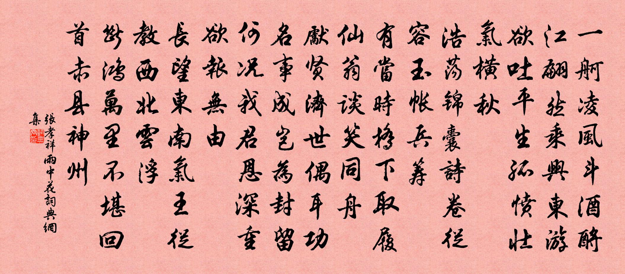 一舸凌風,斗酒酹江,翩然乘興東遊。欲吐平生孤憤,壯氣橫秋。