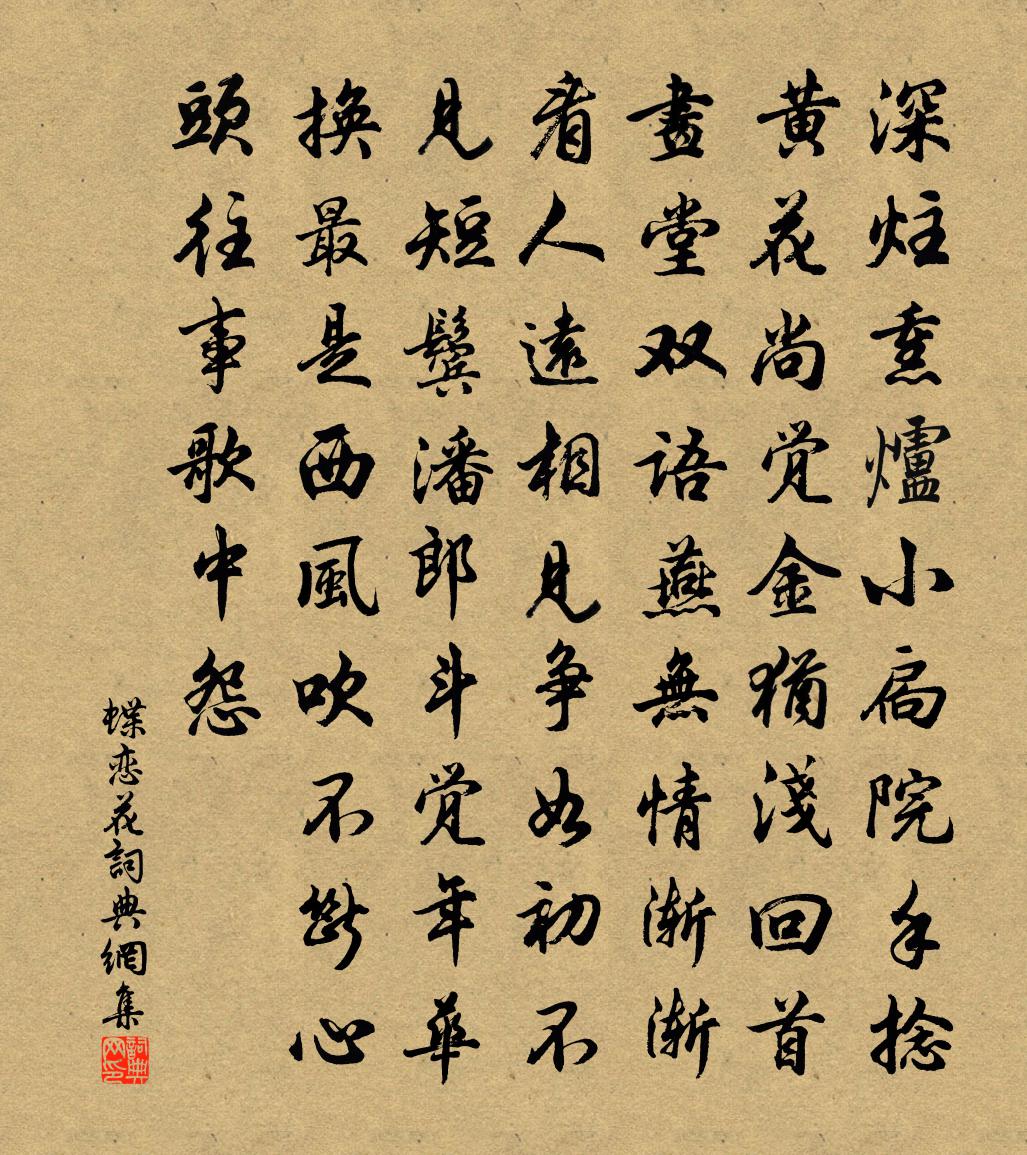 深炷熏爐小扃院。手捻黃花,尚覺金猶淺。回首畫堂雙語燕。無情漸漸看人遠。