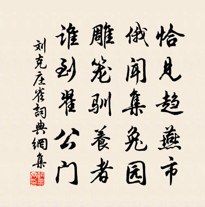 詩詞名句歷史字典書法欣賞書法字典國語詞典說文解字康熙字典古漢語字典標 題 作 者 詩 句 雀作者:劉克莊 朝代:宋代雀原文恰見趨燕市,俄聞集兔園。雕籠馴養者,誰到翟公門。詩詞問答問:雀的作者是誰?答:劉克莊問:雀寫於哪個朝代?答:宋代問:劉克莊的名句有哪些?答:劉克莊名句大全劉克莊雀書法欣賞雀書法作品詩詞推薦用前韻別寄耿時舉二首仲並〔宋代〕方兄於我一無堪,閉戶休休口不談。憶昔茅檐差傍北,望公花塢恰平南。高歌頻舉巨觥一,佳唱如聞小雅三。投分善哉行二首曹植〔魏晉〕來日大難,口燥唇乾。今日相樂,皆當喜歡。經歷名山,芝草翩翩。仙人王喬,奉藥一丸。自惜袖短,內手知寒。題曹娥廟趙嘏〔唐代〕青娥埋沒此江濱,江樹颼溜慘暮雲。文字在碑碑已墮,波濤辜負色絲文。梅花繆鑒〔宋代〕鐵石槎牙玉粒姿,詩中圖書中詩。半稜山色初晴後,一截豀煙吹欲暝時。流水帶雲棲瘦影,小窗和月上橫枝。老來江上二首張耒〔宋代〕相別亦何事,相逢盡偶然。愁腸貫彩筆,離夢繞朱弦。荔子鄧肅〔宋代〕荔子有佳品,乃在府城東。我來方秀髮,黃雲幾萬重。遙知香味色,已具碎花中。憑欄一念足,不食意自充。人世逍遙詠宋太宗〔宋代〕志節還難得,剛柔說是非。秋霜明至道,春日麗光輝。桂影芳紅樹,馨香入紫微。無窮天地理,語默自依依。鵲橋仙張掄〔宋代〕遠公蓮社,流傳圖書,千古聲名猶在。後人多少繼遺蹤,到我便、失驚打怪。西方未到,官方先到,冤我白衣吃菜少年心(添字)黃庭堅〔宋代〕心裡人人,暫不見、霎時難過。天生你要憔悴我。把心頭從前鬼,著手摩挲。抖擻了、百病銷磨。見說那廝脾鱉熱牡丹亭記題詞湯顯祖〔明代〕 天下女子有情,寧有如杜麗娘者乎!夢其人即病,病即彌連,至手畫形容傳於世而後死。死三年矣,復能溟莫徐君季純常德教授廨中名一室日如舟取東坡為趙蕃〔宋代〕莫嫌學舍小如舟,容得平南酒拍浮。試問夢為蝴蝶去,何如萬里沒輕鷗。鹽車重楊維楨〔元代〕鹽車重,鹽車重,官驥牽不動。官鉈私秤秤不平,秤秤束縛添畸令。鹽車重,重奈何,旑令帶多私轉多。大商鬻不禪人並化主寫真求贊釋正覺〔宋代〕深深沉沉,心不見心。理亡出沒,妙超古今。錦機絲度密無縫,玉澗玉流寒有音。友約寒山拾得子,拍手一笑舒胸潁亭元好問〔金代〕潁上風煙天地回,潁亭孤賞亦悠哉。春風碧水雙鷗靜,落日青山萬馬來。勝概消沉幾今昔?中年登覽足悲哀。遠遊鶴歐陽修〔宋代〕攀籠毛羽日低摧,野水長松眼暫開。萬里松風天外意,日斜閒啄岸邊苔。衷川獨泛盧照鄰〔唐代〕倚掉春江上,橫舟石岸前。山螟行人斷,迢迢獨泛仙。滿江紅(辛丑赴信豐,舟行贛石中)趙師俠〔宋代〕煙浪連天,寒尚峭、空濛細雨。春去也、紅銷芳徑,綠肥江樹。山色雲籠迷遠近,灘聲水滿望艱阻。掛片帆、掠岸六年秋重題白蓮白居易〔唐代〕素房含露玉冠鮮,紺葉搖風鈿扇圓。本是吳州供進藕,今為伊水寄生蓮。移根到此三千里,結子經今六七年。不獨和黃宰木犀洪咨夔〔宋代〕春風花事數河陽,又見玲瓏糝綴黃。萬斛香添秋醖藉,十分涼借月容光。熏奩拾取留長挹,湯鼎煎來得細嘗。須信句吳沆〔宋代〕山高不改自然色,水遠能流無盡聲。名句推薦黃河捧土尚可塞,北風雨雪恨難裁。李白《北風行》 誰分去來鄉國事,悽然,曾是承平兩少年。陳洵《南鄉子·己巳三月自郡城歸鄉過區菶吾西園話舊》 冰合大河流,茫茫一片愁。納蘭性德《菩薩蠻·白日驚飈冬已半》 出其東門,有女如雲。佚名《出其東門》 上有好者,下必有甚焉者矣。孟子《孟子·滕文公章句上·第二節》 一曲當筵落淚,重掩羅巾。晏殊《山亭柳·贈歌者》 哀莫大於心死。莊子《莊子·外篇·田子方》 愁凝處,渺渺殘照紅斂吳文英《宴清都·秋感》 吳洲春草蘭杜芳,感物思歸懷故鄉。宋之問《寒食江州滿塘驛》 行得春風,指望夏雨馮夢龍《警世通言·卷二十五》