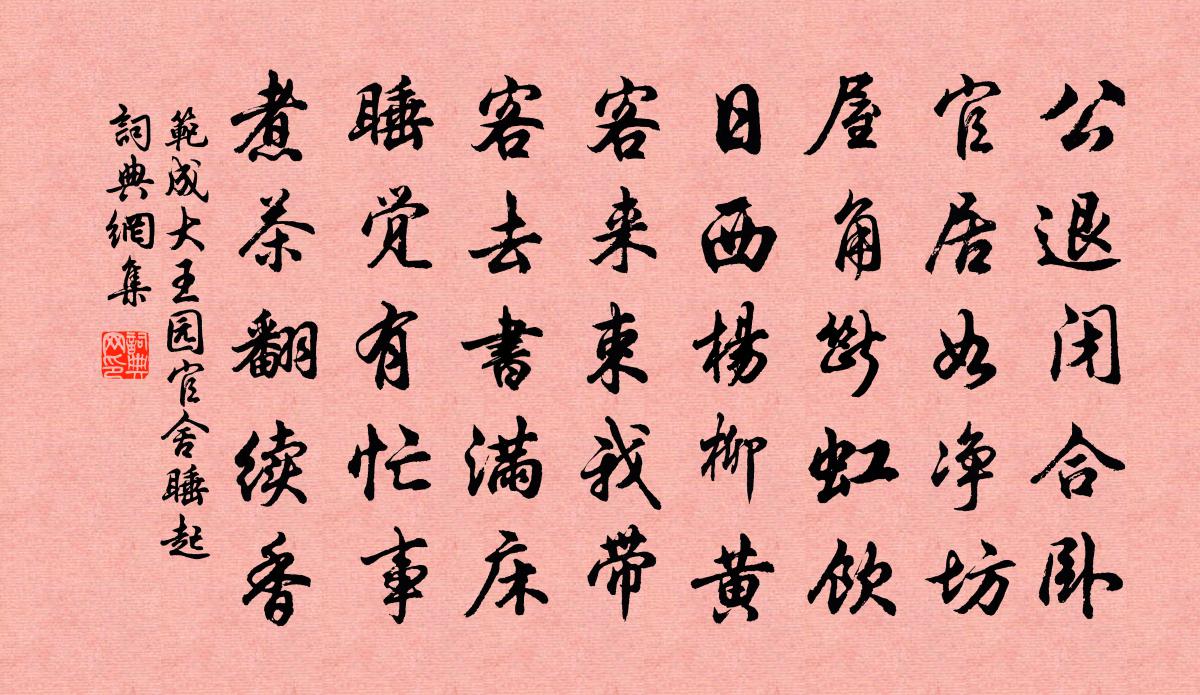 公退閉合臥,官居如淨坊。屋角斷虹飲,日西楊柳黃。
