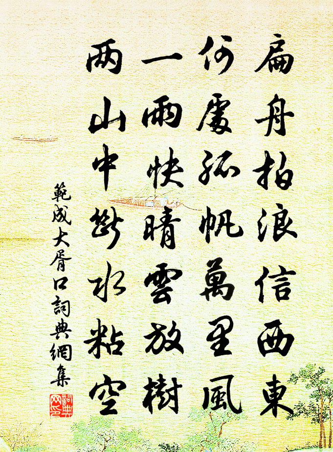 扁舟拍浪信西東,何處孤帆萬里風。一雨快晴雲放樹,兩山中斷水粘空。