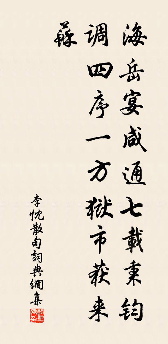 詩詞名句歷史字典書法欣賞書法字典國語詞典說文解字康熙字典古漢語字典標 題 作 者 詩 句 句作者:李忱 朝代:唐代句原文海岳宴鹹通。七載秉鈞調四序,一方獄市獲來蘇。詩詞問答問:句的作者是誰?答:李忱問:句寫於哪個朝代?答:唐代李忱句書法欣賞句書法作品注釋全唐詩:卷4_30詩詞推薦閒居白居易〔唐代〕深閉竹間扉,靜掃松下地。獨嘯晚風前,何人知此意。看山盡日坐,枕帙移時睡。誰能從我游,使君心無事。感流亡王禹偁〔宋代〕謫居歲雲暮,晨起廚無煙。賴有可愛日,懸在南榮邊。高舂已數丈,和暖如春天。門臨商於路,有客憇檐前。老翁失調名佚名〔宋代〕芳草綠如茵,與藍袍、草爭翠色。吳學士席上作王令〔宋代〕塵沙欺客日冥冥,喜對賢豪耳目清。爛漫共夸文字飲,歡娛誰憶管弦聲。風牽翠幕燈相照,月掛朱簾酒屢傾。後夜送丁廓秀才歸汝陰二首王安石〔宋代〕西州行路日蕭條,執手傷懷不自聊。故子故鄉終念返,豈能無意冶城潮。水堂醉臥問杜三十一白居易〔唐代〕聞君洛下住多年,何處春流最可憐?為問魏王堤岸下,何如同德寺門前?無妨水色堪閒玩,不得泉聲伴醉眠。那似懷伊亭張嵲〔宋代〕迴環擁岡巒,澶漫分林塢。縱目以怡情,信美疑吾土。曉枕陸游〔宋代〕殘漏冬冬急,明星磊磊高。一從安枕臥,無復攬衣勞。熨斗生晨火,熏籠覆縕袍。一杯山藥酒,紅日滿亭皋。雪封寺二首李昴英〔宋代〕征輿六月度梅關,大地清涼樹影班。行客不須梅止渴,流泉到耳冷潺潺。春貼子皇帝閣六首真德秀〔宋代〕嘉定無疆歷,才開弟五春。金穰端有兆,太歲恰居申。滿庭芳臧魯子〔宋代〕露洗銀潢,風來玉宇,正當□□□□。□□□閣,爭看擁冰輪。共指銀河影里,依稀見、執斧仙人。還知麽,天教夜賦陸游〔宋代〕月暈知將雨,風聲報近秋。暗廊行熠燿,深樹嘯鵂鶹。老幸傳家事,狂猶為國憂。相齊雖已矣,且復飯吾牛。獨飲劉叉〔唐代〕盡欲調太羹,自古無好手。所以山中人,兀兀但飲酒。聖果寺處默〔唐代〕路自中峰上,盤迴出薜蘿。到江吳地盡,隔岸越山多。古木叢青靄,遙天浸白波。下方城郭近,鐘磬雜笙歌。北窗即事陸游〔宋代〕衡茅隨力葺幽居,掃地焚香樂有餘。分食時能下檐鵲,作洲常悔誑池魚。游歸又失相尋客,睡起重開未了書。袖手初夏出遊陸游〔宋代〕泥黦棕鞋雨墊巾,閒遊又送一年春。長歌聊對聖賢酒,羸病極知朝暮人。廢堞荒郊閒弔古,朱櫻青杏正嘗新。桃源醉中雜言張耒〔宋代〕老人攀花復藉草,春力著人如醉倒。未容作計試留春,東風已與人俱老。東君惜春不惜花,千紅萬紫委泥沙。已教清平樂(題《草窗詞》)李萊老〔宋代〕日寒風細。庭館浮花氣。白髮潘郎吟欲醉。綠暗蕪千里。西園南浦東城。一春多少閒情。日暮采苹歌遠,夢回喚得五雲寺徐僑〔宋代〕黃雲不似五雲深,隱隱迴環坐此林。巒阜幾重遮入路,隴岡百里護來峰。單僧憐汝喧魚板,漫叟便余玩鶴琴。茶罷冬初雜興孫嵩〔宋代〕牧童與樵叟,共載牛背歸。我無薪蒸計,南山松櫟稀。寒風昨日至,須用葺我扉。故園或可廢,亦以完我衣。人生名句推薦憑高眺遠,見長空萬里,雲無留跡。蘇軾《念奴嬌·中秋》 鳥啼官路靜,花發毀垣空。張繼《清明日自西午橋至瓜岩村有懷》 馬嘶經戰地,雕認打圍山。王鎡《塞上曲》 南國辛居士,言歸舊竹林孟浩然《都下送辛大之鄂》 正己而不求於人則無怨。上不怨天,下不尤人。子思《中庸·第十四章》 斜日更穿簾幕,微涼漸入梧桐。晏殊《破陣子·燕子欲歸時節》 眾鳥高飛盡,孤雲獨去閒。李白《獨坐敬亭山》 而今燈漫掛。不是暗塵明月,那時元夜。蔣捷《女冠子·元夕》 老來疾病都是壯時招得;衰時罪孽都是盛時作得。洪應明《菜根譚·概論》 夫孝,天之經也,地之義也,民之行也。孔子及其弟子《孝經·三才》