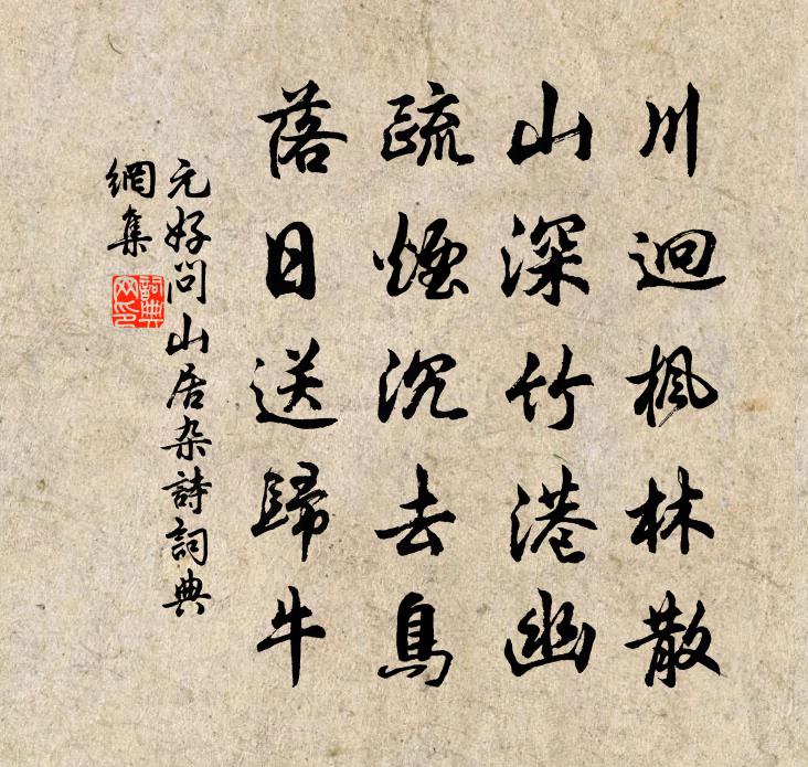 川迥楓林散,山深竹港幽。疏煙沉去鳥,落日送歸牛。
