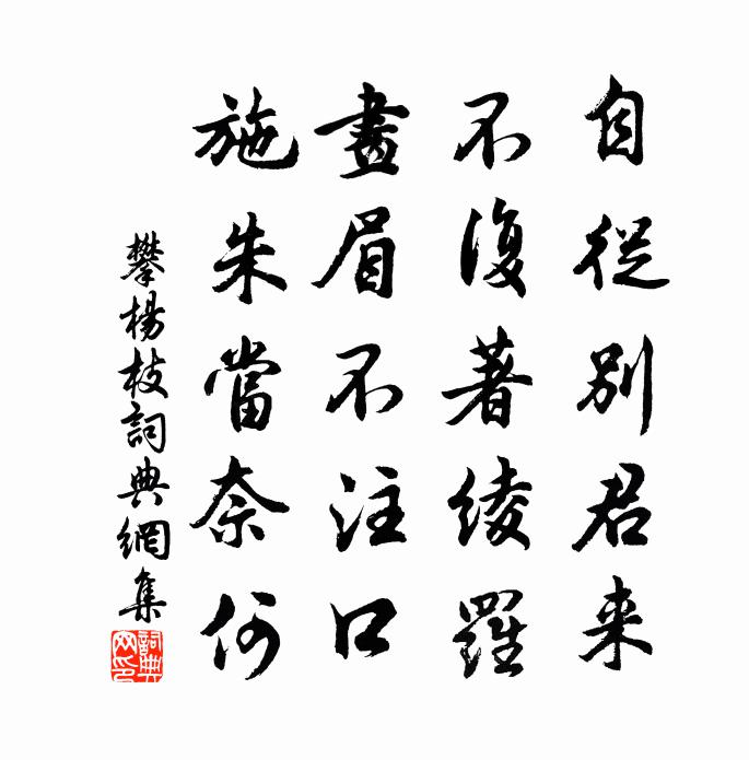 詩詞名句歷史字典書法欣賞書法字典國語詞典說文解字康熙字典古漢語字典標 題 作 者 詩 句 攀楊枝作者:佚名 朝代:南北朝攀楊枝原文自從別君來,不復著綾羅。畫眉不注口,施朱當奈何?詩詞問答問:攀楊枝的作者是誰?答:佚名問:攀楊枝寫於哪個朝代?答:南北朝問:佚名的名句有哪些?答:佚名名句大全佚名攀楊枝書法欣賞攀楊枝書法作品詩詞推薦送鄭秘書南歸魚潛〔宋代〕垂老乃如此,憑高俱惘然。空能正幾字,好去作千年。童子歌鴝鵒,幽人拜杜鵑。江花獨爛熳,春去得誰憐。九日呈真直院葉紹翁〔宋代〕秋負吹客客思家,破帽從渠自在斜。腸斷故山歸未得,借人籬落種黃花。春日雜詩六首張耒〔宋代〕堂南老榆柳,清陰漸交映。飄飄風花乾,渥渥雨葉盛。鳥鳴日方遲,客去門逾靜。自無濟世略,耿耿欲誰省。答趙守見貽這韻曹彥約〔宋代〕已報親題下紫泥,尚留佳識築新堤。一心國事忉忉在,萬口民歌剪剪齊。惜去轍須田父臥,催歸詔有內臣齎。舍人送章孝偁歸荊南史堯弼〔宋代〕峨岷西南橫,盤石含靈光。胃蓄不得發,澒沿唆卷藏。泄為萬夫豪,聯翩郁相望。緬懷嘉佑初,赫赫都官郎。著龜祥興登極第三十二文天祥〔宋代〕浮龍倚長津,參錯走洲渚。蒼梧雲正愁,初日翳復吐。偈頌三十四首釋如淨〔宋代〕一葉落,空索索。天下秋,乾剝剝。霹靂一聲,滂沱大霔,笑看烏藤倒上樹。送鄭司倉人蜀盧照鄰〔唐代〕商人丹水北,遊客錦城東。別意還無已,寓憂自不窮。優雲朝結陣,江月夜臨空。關塞疲征馬,霜氛落早鴻。潘年和知己秋日傷懷鄭谷〔唐代〕流水歌聲共不回,去年天氣舊亭台。梁塵寂寞燕歸去,黃蜀葵花一朵開。小有山中即事何夢桂〔宋代〕閒隨鶴影步山蹊,摘草歸來養竹雞。水帶平沙流澗淺,雲將落照壓山低。覆階亂葉憑風掃,護徑業筠借鷺棲。萬物竹塢司馬光〔宋代〕二何跡相繼,竹塢日陰森。欲識養民意,先觀愛物心。低垂樽俎冷,密映管弦深。勿怪湖光少,年來碧影侵。送羅制參李流謙〔宋代〕平生願識韓,一見屣履迎。自揣何所持,徒有汗背驚。下士公盛德,事賢我真情。西南大幕府,控制七十城。自公錢府園池釋行海〔宋代〕玉蕊金花水面浮,翠禽閒暇鷺鷥愁。夕陽睡起涼亭上,坐看魚兒作隊游。春日行蘭溪道中六言范浚〔宋代〕遠草連雲碧積,繁花照日紅酣。信馬貪看春意,不如錯過村南。沁園春李曾伯〔宋代〕軒冕儻來,功名杯水,行藏依樓。把方略評梅,工夫課柳,精神伴鶴,談笑盟鷗。草檄尋樵,移文問釣,任江上東代同舍上郎中許應龍〔宋代〕能賦人人說潁川,誰知妙訣已親傳。詞場屢草乾將句,擲地金聲震九天。季申樞密設醴具素以待諸客表這有詩次其韻李彌遜〔宋代〕擊鮮舉白不厭深,高燒銀燭花成陰。不如伊蒲雜梨栗,數翁共話千古心。夜闌相對如夢寐,靜聽牆壁生潮音。我方顧道士亡,弟子奉束帛乞銘於襲美,因賦戲贈陸龜蒙〔唐代〕童初真府召為郎,君與抽毫刻便房。亦謂神仙同許郭,不妨才力似班揚。比於黃絹詞尤妙,酬以霜縑價未當。唯我中夜聞雁趙蕃〔宋代〕夜闌群物久已息,胡獨決起飛仍號。江湖雖寬矰繳在,幸勿中機漁獵曹。菊花天 嗽王哲〔元代〕此藥神功別有情。專醫肺里謳吟。治正水中金。教公免了,分外聲音。傷重寒風並熱冷,五般無復重侵。節色減財名句推薦關山四面絕,故鄉幾千里。劉昶《斷句》 曉迎秋露一枝新,不占園中最上春。杜牧《紫薇花》 如知其非義,斯速已矣,何待來年。孟子《孟子·滕文公章句下·第八節》 壯歲旌旗擁萬夫,錦襜突騎渡江初。辛棄疾《鷓鴣天·有客慨然談功名因追念少年時事戲作》 窮兵極武,仁者不為。令狐德棻《周書·列傳·卷二十七》 月過十五光明少,人到中年萬事休。佚名《增廣賢文·上集》 今夜送歸燈火冷,河塘,墮淚羊公卻姓楊。蘇軾《南鄉子·和楊元素時移守密州》 莫道君行早,更有早行人。佚名《增廣賢文·上集》 綠楊煙外曉寒輕,紅杏枝頭春意鬧。宋祁《玉樓春·春景》 賊是小人,智過君子。佚名《增廣賢文·上集》