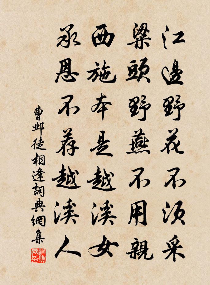 詩詞名句歷史字典書法欣賞書法字典國語詞典說文解字康熙字典古漢語字典標 題 作 者 詩 句 徒相逢作者:曹鄴 朝代:唐代徒相逢原文江邊野花不須采,粱頭野燕不用親。西施本是越溪女,承恩不薦越溪人。詩詞問答問:徒相逢的作者是誰?答:曹鄴問:徒相逢寫於哪個朝代?答:唐代問:徒相逢是什麼體裁?答:七絕曹鄴徒相逢書法欣賞徒相逢書法作品注釋全唐詩詩詞推薦東湖夜坐松間陳杰〔宋代〕夜深仍露坐,湖貢小迷藏。松月半身影,藕花三面香。雖忘入城府,終擬卜林塘。何日清逋賊,妖星漸不芒。句黃景說〔宋代〕政爾玉壺相俎豆。括蒼陳與叟攜所撰春秋義例見過書於卷後吳芾〔宋代〕獨抱麟經三十年,發揮褒貶勒成編。休嗟當世知音少,自有遺書後代傳。南柯子曹雪芹〔清代〕空掛纖纖縷,徒垂絡絡絲。也難綰系也難羈,一任東西南北各分離。落去君休惜,飛來我自知。鶯愁蝶倦晚芳時,次韻曾吉父食酥二首王洋〔宋代〕色分姑射冰肌外,味在金仟露掌中。乞與佳人潤妝臉,兩家春色一般風。高宗建炎初祀昊天上帝佚名〔宋代〕惟聖普臨,順皇之德。典禮有紗,享祀不忒。籩豆靜嘉,降登肸飭。神具醉止,景貺鹹集。訪隱者林昉〔宋代〕曉入南山路,松風最好聽。候扉黃犬睡,尋食老鴉靈。童子炊方熟,先生醉未醒。借來一榻坐,看盡相牛經。寄抱拙胡仲弓〔宋代〕割席坐春風,清談滋味濃。齊門聽鼓瑟,長樂憶聞鍾。道等千多重,詩輕萬戶封。梅花今在望,載酒幾時重。和陶淵明二十首陳造〔宋代〕憒憒綺紈兒,客或大其宅。長公抱胸奇,所向有削跡。窮達吁可驚,賢否乃什百。請君勿此計,計之當浮白。次韻徐衡仲餉淮白魚張鎡〔宋代〕漫浪功名付直鉤,誰能鏖戰學焚舟。隨人不但羹魚美,解道江{謠言換蟲}似鹿頭。以李約交遊晚歲重為韻作五絕句別韓二十七晁說之〔宋代〕敝廬無良辰,荒田多荒歲。貧賤重離別,君乎休富貴。招黃太博飲李流謙〔宋代〕從來官職慣如冰,便是青衫行腳僧。去歲離家今日是,故人招隱几時能。早衰須鬢逢人問,太拙形模引世憎。均在和裴舍人觀田尚書出獵楊巨源〔唐代〕新地司空比玉清,雄藩觀獵見皇情。雲禽已覺高無益,霜兔應知狡不成。飛鞚擁塵寒草盡,彎弓開月朔風生。今朝奉挽靈泉明府東叔學士度正〔宋代〕西州文物起雷霆,四海一家仰聚星。五鳳翱翔橫碧落,雙鳧朝謁墮青冥。疑歸天上修仙史,恥向人間駕說鈴。長嘆【雙調】大德歌 四關漢卿〔元代〕謝家村,賞芳春,疑怪他桃花冷笑人。著誰傳芳信,強題詩也斷魂。花陰下等待無人問,則聽得黃犬吠柴門。秋雨蘇轍〔宋代〕禾田已熟畏愁霖,積潦欲乾泥尚深。一雨一涼秋向晚,似安似病老相侵。人間有盡皆歸物,世外無生賴有心。要覔游老君洞劉子薦〔宋代〕怪怪奇奇畫不如,最難得者近城郛。他仙皆遜老君有,此洞可知天下無。徐甲青牛驂左侍,六丁白鶴導前驅。老仙再游東林寺作五首貫休〔唐代〕台殿參差聳瑞煙,桂花飄雪水潺潺。莫疑遠去無訊息,七萬餘年始半年。桓玄舊輦殘雲濕,耶舍孤墳落照遲。有個紫極宮用呂宗卿韻方岳〔宋代〕雲濕棋枰不堪著,滿壑松寒鳥聲樂。向來石鼎老彌明,松下無人啟玄鑰。偈頌十五首釋寶印〔宋代〕遍地殘紅春去也,拍天漲綠興悠哉。道人覓甚安心法。達磨當時帶不來。名句推薦破帽遮顏過鬧市,漏船載酒泛中流。魯迅《自嘲》 半畝方塘一鑒開,天光雲影共徘徊。朱熹《活水亭觀書有感二首·其一》 且夫義者,政也。無從下之政上,必從上之政下。墨子《墨子·26章 天志(上)》 莫辭酒味薄,黍地無人耕。杜甫《羌村三首·其三》 燕子飛時,綠水人家繞。枝上柳綿吹又少。蘇軾《蝶戀花·春景》 中秋佳月最端圓。老痴頑。見多番。陳著《江城子·中秋早雨晚晴》 且趁閒身未老,盡放我、些子疏狂。蘇軾《滿庭芳·蝸角虛名》 夜來小雨新霽,雙燕舞風斜。万俟詠《訴衷情·送春》 日暮鄉關何處是?煙波江上使人愁。崔顥《黃鶴樓 / 登黃鶴樓》 望中酒旆閃閃,一簇煙村,數行霜樹。柳永《夜半樂·凍雲黯淡天氣》