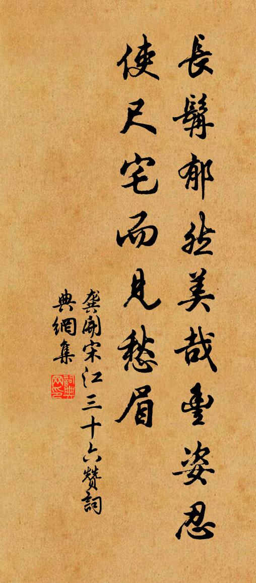 詩詞名句歷史字典書法欣賞書法字典國語詞典說文解字康熙字典古漢語字典標 題 作 者 詩 句 宋江三十六贊作者:龔開 朝代:宋代宋江三十六贊原文長髯郁然,美哉丰姿。忍使尺宅,而見愁眉。詩詞問答問:宋江三十六贊的作者是誰?答:龔開問:宋江三十六贊寫於哪個朝代?答:宋代龔開宋江三十六贊書法欣賞宋江三十六贊書法作品詩詞推薦簡見可覓畫三首趙蕃〔宋代〕我居何有惟修竹,一日真成不可無。別後平安久無報,為予十日寫成圖。木蘭花慢 為李廷弼再舉孫雛之慶張野〔元代〕正一陽道長,見佳氣,擁青驄。是桐樹生孫,桂枝結子,喜慶重重。東床幾多痴福,算平生、乃祖積陰功。敢望成使往天平軍馬約與陳子昂新鄉為期,及還而不相遇宋之問〔唐代〕入衛期之子,吁嗟不少留。情人去何處,淇水日悠悠。恆碣青雲斷,衡漳白露秋。知君心許國,不是愛封侯。上王丞相十界心圖頌釋遵式〔宋代〕無象無名杳莫尋,強將名象測幽深。憑斯會解還相背,舍此他求轉自沉。鷲嶺殷勤親付囑,龍門愷悌好知音。仍聞八月七日被命上會稽沿途所歷拙於省記為韻語魏了翁〔宋代〕千秋舊址益鴻禧,敕額祠宮盛一時。遺蹟猶存賀公宅,豐碑新敞越王祠。隋王鼓吹曲 鈞天曲謝朓〔南北朝〕高宴顥天台。置酒迎風觀。笙鏞禮百神。鍾石動雲漢。瑤堂琴瑟驚。綺席舞衣散。威鳳來參差。玄鶴起凌亂。已慶新雨水朱元璋〔明代〕片雲風駕雨飛來,頃刻憑看遍九垓。楹外近聆新水響,遙穹一碧見天開。贈西山老人陸游〔宋代〕生世不把筆,殘年惟灌園。賃舂來並舍,賣畫到前村。勤苦供租稅,清貧遺子孫。從來棲遁志,剩欲與翁言。和陝州參軍李通微首夏書懷呈同寮張裳段群二先輩姚鵠〔唐代〕公門何事更相牽,邵伯優賢任養閒。滿院落花從覆地,半檐初日未開關。尋仙鄭谷煙霞里,避暑柯亭樹石間。獨為贈僧戒休鮑溶〔唐代〕風行露宿不知貧,明月為心又是身。欲問月中無我法,無人無我問何人。二郎神王哲〔元代〕觀塵境盡。總把浮名修整。此假合形骸皆不悟,猶然待、巧妝馳騁。百歲韶華能有幾,到七十、難逃逝景。*裡面因事示眾釋重顯〔宋代〕寄從遠方來,遺我徑寸璧。中有四箇字,字字無人識。清涵鯨海寬。冷射蟾輪窄。今朝呈似看,請道末後句。次韻答章傳道見贈蘇軾〔宋代〕並生天地宇,同閱古今宙。視下則有高,無前孰為後。達人千鈞弩,一弛難再彀。下士沐猴冠,已系猶跳驟。欲將偈六十九首釋道寧〔宋代〕從前日月,依舊山川。瀉碧堆青,輝騰今古。曾無間斷,豈有虧盈。幾般雲色出峰頂,一樣泉聲落檻前。夏日留題張山人林亭杜荀鶴〔唐代〕此中偏稱夏中游,時有風來暑氣收。澗底松搖千尺雨,庭中竹撼一窗秋。求猿句寄山深寺,乞鶴書傳海畔洲。閒與清平調·其三李白〔唐代〕名花傾國兩相歡,常得君王帶笑看。解釋春風無限恨,沉香亭北倚闌乾。長安客感雍陶〔唐代〕日過千萬家,一家非所依。不及行塵影,猶隨馬蹄歸。春草碧 南金契兄始託交時,與仆俱未弱冠,邵亨貞〔元代〕世故牽掣,迨今未遂。兵後避地溪濱,復得旦暮握手,慨前跡之昀陳,預後期之可擬,不能已於言也。敬借前韻,偶作二首晁說之〔宋代〕病目書淫歇,江乾絕往來。不才寧嫁樹,有意尚移山。玉府書名久,南山種豆閒。只應終夜氣,不共鬢毛斑。和答葉無咎孫應時〔宋代〕百年一夢欲誰何,底事容心強揣摩。便續淵明歸去引,不題工部醉時歌。故山已恐鶴相怨,陋巷何妨雀可羅。多謝名句推薦夜覺曉非,今悔昨失顏之推《顏氏家訓·序致篇》 工欲善其事,必先利其器。佚名《論語七則》 平明日出東南地,滿磧寒光生鐵衣。李益《度破訥沙二首·其二 / 塞北行次度破訥沙》 翠貼蓮蓬小,金銷藕葉稀。李清照《南歌子·天上星河轉》 夜發清溪向三峽,思君不見下渝州。李白《峨眉山月歌》 求賢如饑渴。受諫而不厭陳壽《三國志·吳書·張嚴程闞薛傳》 酒逢知己飲,詩向會人吟。佚名《增廣賢文·上集》 桐葉落,蓼花殘。雁聲天外寒。張淑芳《更漏子·秋》 不可以一時之譽,斷其為君子;不可以一時之謗,斷其為小人。馮夢龍《警世通言·卷四》 芳洲拾翠暮忘歸,秀野踏青來不定。張先《木蘭花·乙卯吳興寒食》