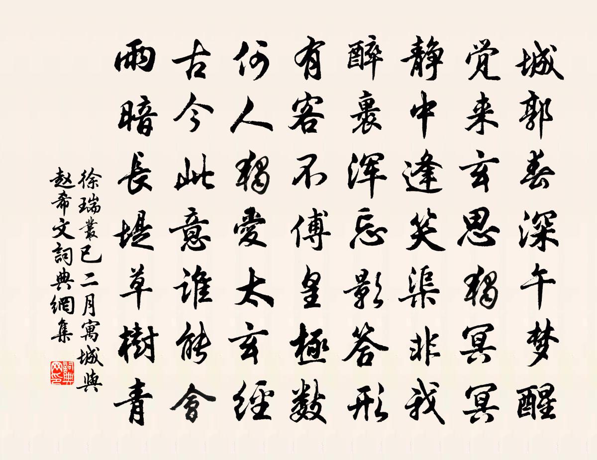 詩詞名句歷史字典書法欣賞書法字典國語詞典說文解字康熙字典古漢語字典標 題 作 者 詩 句 叢已二月寓城與趙希文作者:徐瑞 朝代:宋代叢已二月寓城與趙希文原文城郭春深午夢醒,覺來玄思獨冥冥。靜中逢笑渠非我,醉裹渾忘影答形。有客不傅皇極數,何人獨愛太玄經。古今此意誰能會,雨暗長堤草樹青。詩詞問答問:叢已二月寓城與趙希文的作者是誰?答:徐瑞問:叢已二月寓城與趙希文寫於哪個朝代?答:宋代徐瑞叢已二月寓城與趙希文書法欣賞叢已二月寓城與趙希文書法作品詩詞推薦戊子元日凡陽道中二首方回〔宋代〕軋軋箯輿獵曉霜,孤征無復共椒觴。浮生物物身為累,垂老年年節是常。稍聽村田喧鼓笛,遙憐兒女欠衣裳。於潛過柘溪得西字劉黻〔宋代〕晴雨春無定,東風忽轉西。地肥桑眼大,天暖麥須齊。食頓尋幽所,舟行畏惡溪。野禽如避客,飛上半山啼。台城路張炎〔宋代〕處樓之正中,蒼翠橫陳,是斯樓之勝境也。翠屏缺處添奇觀,修眉遠浮孤碧。天影微茫,煙痕黯淡,不與千峰同色漁家傲(和董舍人令升三首)王之道〔宋代〕系國安危還故老。鶴書赴隴行當到。多謝不遺敦雅好。應信道。年高德劭如公少。尊酒論文聊一笑。肯將苦語夸危又三絕徐鉉〔唐代〕銀燭金爐禁漏移,月輪初照萬上枝。造舟已似文事事,卜世應同八百期。送臘梅與曾谹父曹勛〔宋代〕紫煙破萼綴蜂房,薇露濃薰冉冉香。寄與赤城賢太守,要知和氣入風光。游虎潭陸若濟〔宋代〕崖懸怯吾顧,潭空沁我心。匪斯涉游趣,敬慎識官箴。江城子尹志平〔元代〕法光普照道門昌。出天長。入龍陽。寶殿圓成,朝暮*心香。霞友雲朋休外覓,心地穩,是天堂。燕南河北好悲傷重陽文天祥〔宋代〕萬里飄零兩鬢蓬,故鄉秋色老梧桐。雁棲新月江湖滿,燕別斜陽巷陌空。落葉何心定流水,黃花無主更西風。乾坤洞溪絕句三首韓元吉〔宋代〕杏花無數連村落,也有人家掛酒旗。春色撩人只供醉,卻怕風吹易醒時。句諶祜〔宋代〕飛雨隔愁橫笛後,殘鐙照夢落花前。山中桂雍裕之〔唐代〕八樹拂丹霄,四時青不凋。秋風何處起,先裊最長條。雪孟郊〔唐代〕忽然太行雪,昨夜飛入來。崚嶒墮庭中,嚴白何皚皚。奴婢曉開戶,四肢凍徘徊。咽言詞不成,告訴情狀摧。官給題仙岩梅雨潭陳傅良〔宋代〕袞袞群山俱入海,堂堂背水若重闉。怒號懸瀑從天下,傑立蒼崖夾道陳。晉宋至今堪屈指,東南如此登無人。結廬菊夢曹雪芹〔明代〕籬畔秋酣一覺清,和雲伴月不分明。登仙非慕莊生蝶,憶舊還尋陶令盟。睡去依依隨雁斷,驚回故故惱蛩鳴。醒時奉和立春遊苑迎春應制閻朝隱〔唐代〕管籥周移寰極里,乘輿望幸斗城闉。草根未結青絲縷,蘿蔦猶垂綠帔巾。鵲入巢中言改歲,燕銜書上道宜新。願得【正宮】端正好 金錢問卜劉庭信〔元代〕香塵暗翠幃屏,花露冷鮫綃帳,悶懨懨畫閣蘭堂。愁雲怨雨風流況,都蹙在眉尖上。 【滾繡球】俏風流窈窕娘蓬萊客 贈門人馬鈺〔元代〕修仙急。超然一志非常客。非常客。值魔遭難,盪關沖隔。精微妙處心頭測。轉增開悟難迷溺。難迷溺。鶉居*食奉和聖制答張說南出雀鼠谷崔翹〔唐代〕硤路繞河汾,晴光拂曙氛。笳吟中嶺樹,仗入半峰雲。頓覺山原盡,平看邑里分。早行芳草迥,晚憩好風熏。嘉頌雪汀見二鷗三鵲對立鞏豐〔宋代〕二鷗三鵲羽毛鮮,立在方沙更可憐。全似爛柯棋勢里,白棋初讓黑棋先。名句推薦青山遮不住,畢竟東流去辛棄疾《菩薩蠻·書江西造口壁》 一夕輕雷落萬絲,霽光浮瓦碧參差。秦觀《春日》 強中更有強中手,莫向人前滿自誇。馮夢龍《警世通言·卷三》 五更鐘動笙歌散,十里月明燈火稀。賀鑄《思越人·紫府東風放夜時》 惆悵孤帆連夜發,送行淡月微雲。蘇軾《臨江仙·送錢穆父》 務本節用財無極。荀子《荀子·成相》 明月別枝驚鵲,清風半夜鳴蟬。辛棄疾《西江月·夜行黃沙道中》 遲日園林悲昔游,今春花鳥作邊愁。杜審言《渡湘江》 三人行,則損一人;一人行,則得其友。姬昌《周易·損卦》 文章憎命達,魑魅喜人過。杜甫《天末懷李白》