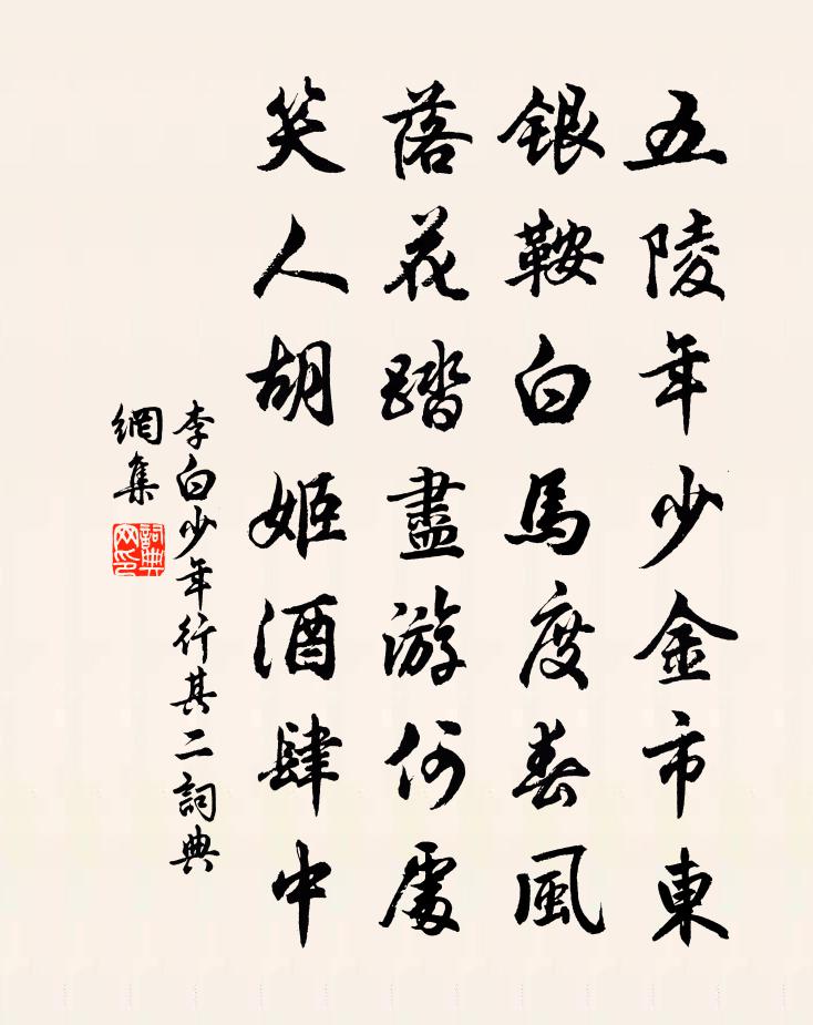 五陵年少金市東,銀鞍白馬度春風。落花踏盡游何處,笑人胡姬酒肆中。